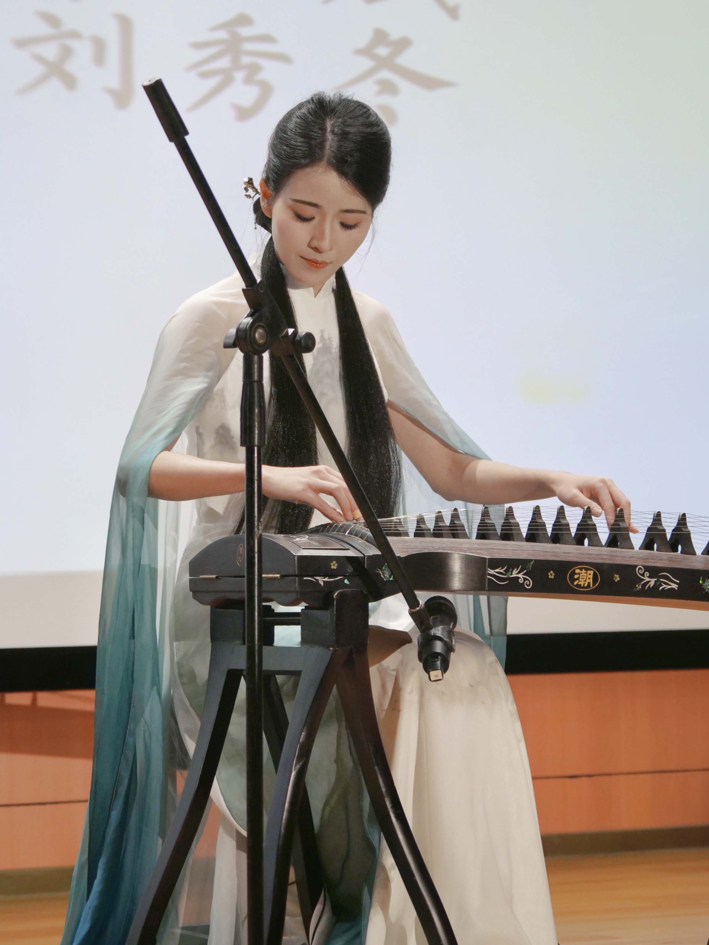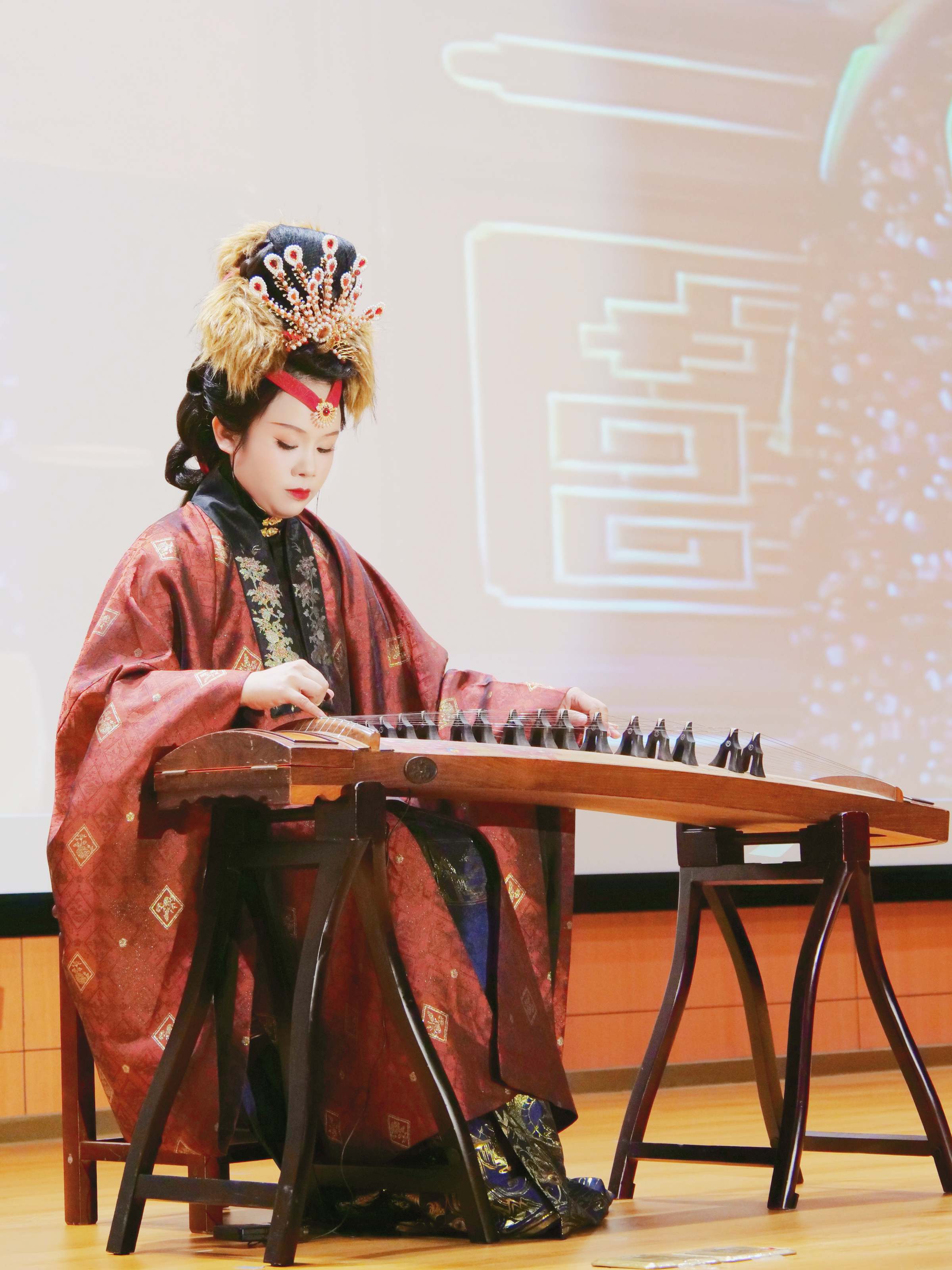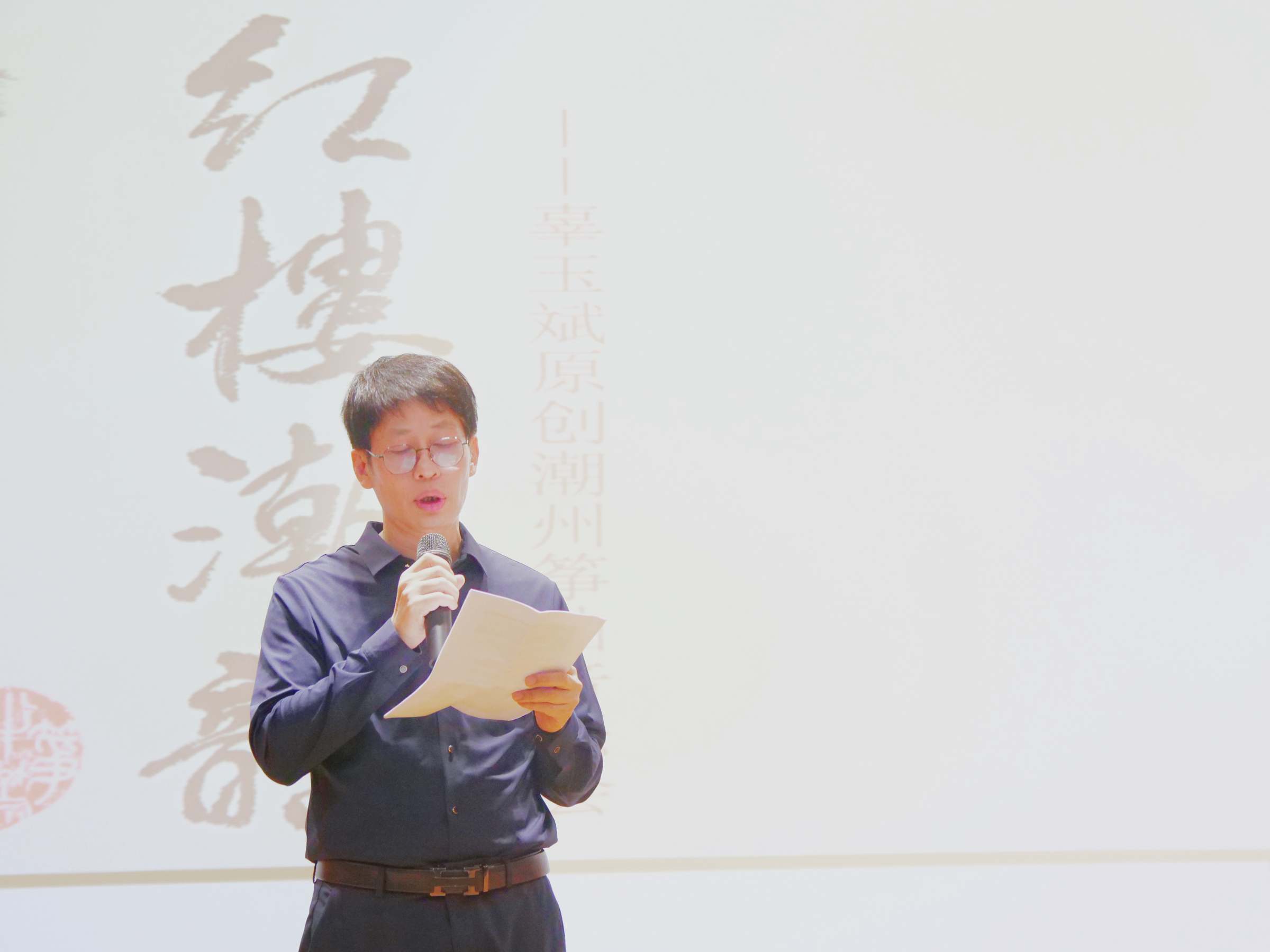 现场,辜玉斌为观众做了潮州筝基础知识普及。《红楼潮韵》是辜玉斌以红楼十二钗为创作素材,原创谱写的十二首潮州筝曲。他表示,“《红楼潮韵》的创作动机和初衷,是以另一艺术表现形式,从另外一个维度诠释《红楼梦》,引发更多的人来阅读经典,学习中国文化,提升文化自信。而这次专门将全本《红楼潮韵》首演放在了母校,‘以红楼入榴园’,也是为了回馈母校培育之情,让更多大学生通过古筝演奏走进《红楼梦》,通过潮州筝了解潮州音乐,从而更好传承弘扬中华优秀传统文化。”