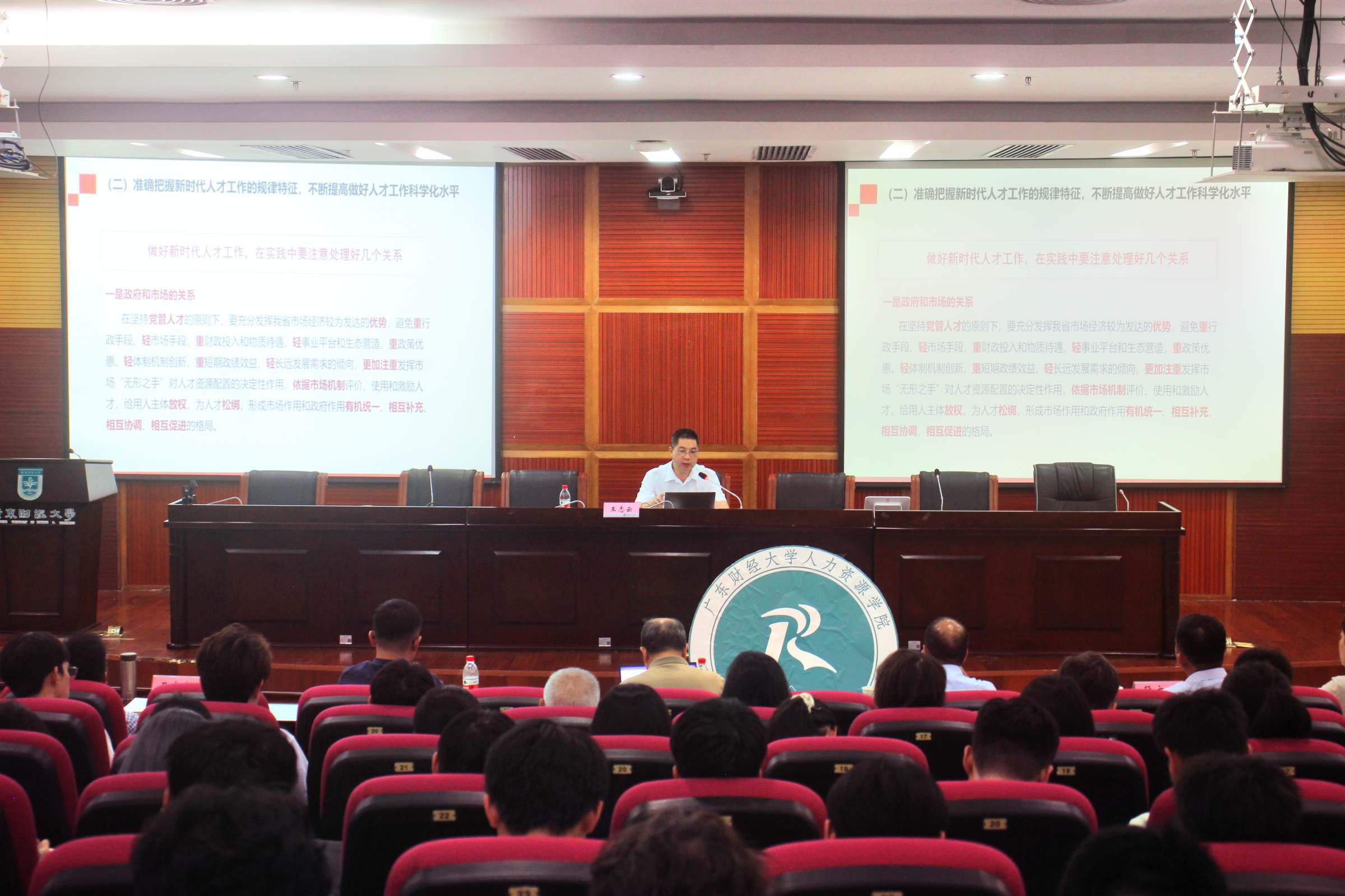6月11日下午,学校纪委书记王志云在佛山校区图书馆学术报告厅,为人力资源学院师生上了一堂难忘的专题思政课,学院领导班子及师生共300余人到场聆听。本次专题思政课由院长萧鸣政主持。