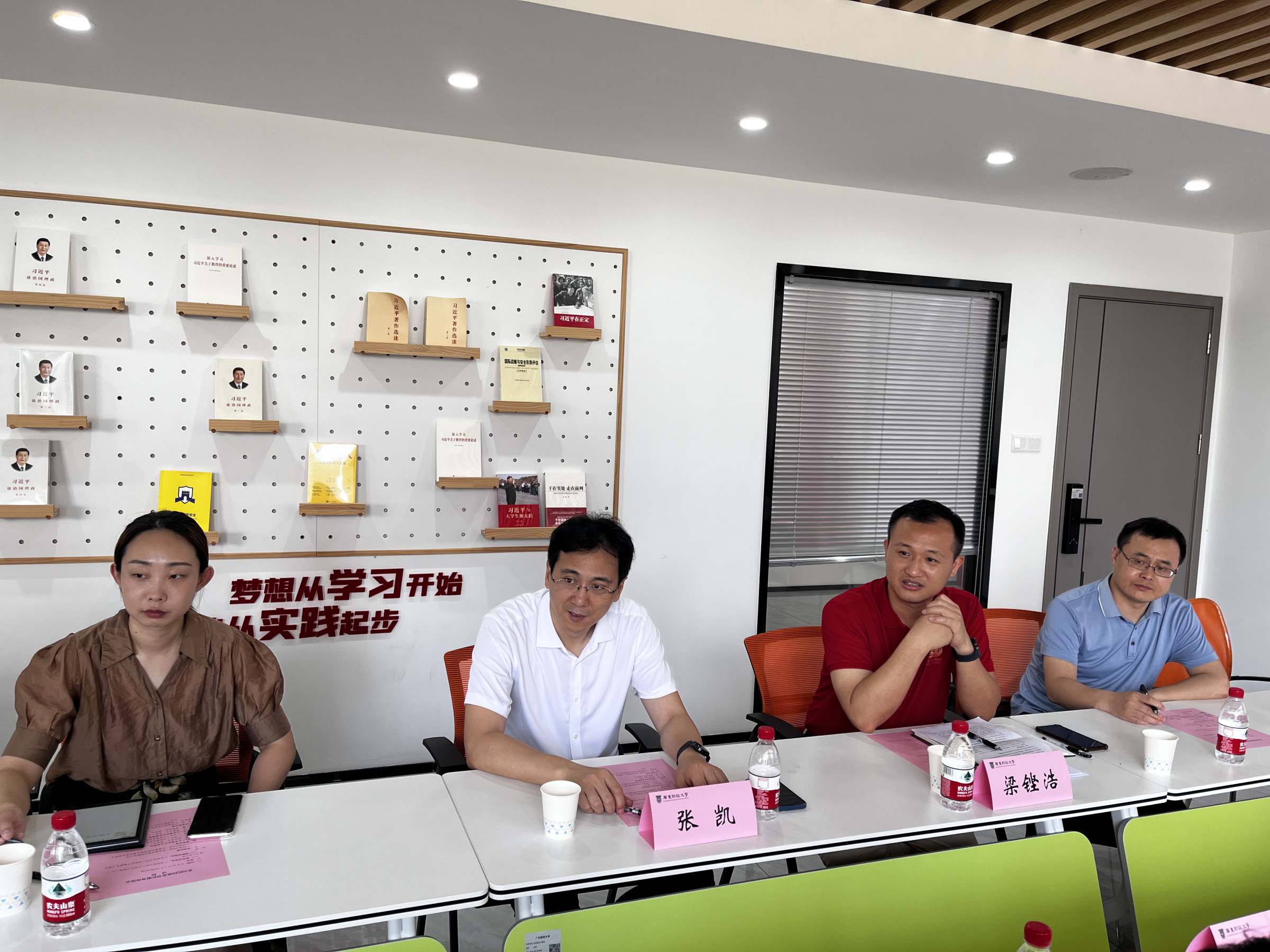 在举办招聘活动的同时,广州市人社局与我校举行座谈交流。在座谈会上,张凯介绍了我校专业设置、现阶段就业进展和学校就业举措等情况。他表示,学校高度重视毕业生就业工作,推出就业百日冲刺计划。校领导和各位学院领导带头访企拓岗,搭建专场招聘平台,引进优质岗位资源,千方百计推动毕业生高质量就业。梁铿浩进一步汇报了我校毕业生优势以及面临的就业困难,希望通过本次座谈交流,与广州市人社局和海珠区人社局加强合作,拓宽我校毕业生就业渠道,提高我校毕业生求职成功率。李明华肯定了我校就业工作,表示要进一步加强沟通联系,加大宣传力度,针对学校专业优势和学生就业意向,开展校园招聘等校政企深度合作。双方围绕校园招聘会举办的具体组织方式、就业e站等问题进行了深入交流。