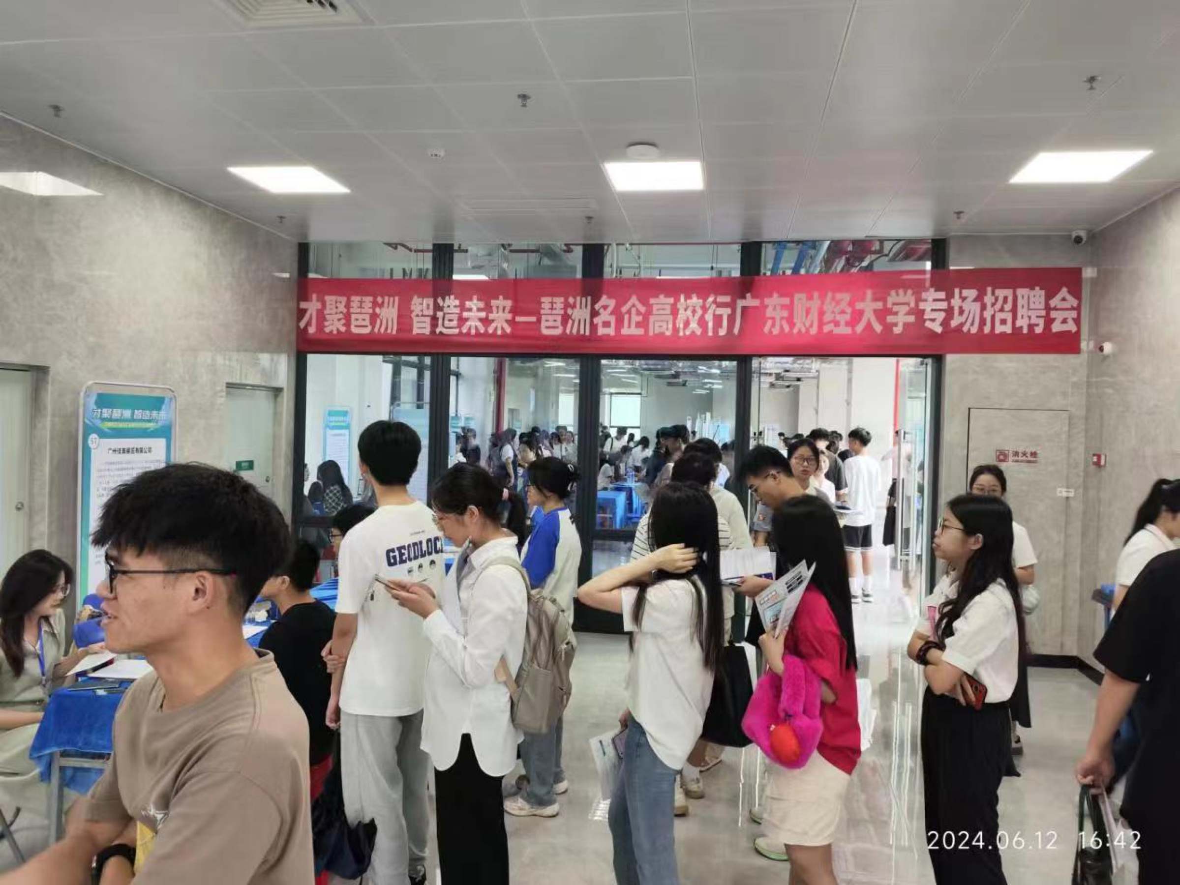 6月12日,“琶洲名企高校行”广东财经大学专场招聘会在我校广州校区产教融合大楼B座一楼成功举办。广州市人力资源和社会保障局副局长李明华,海珠区委常委、组织部部长刘剑峰,海珠区人力资源和社会保障局局长王伟等相关领导,我校党委书记郑贤操、校长于海峰、副校长张凯出席活动,学生就业指导中心副主任梁铿浩及相关工作人员、各学院领导老师参加活动。