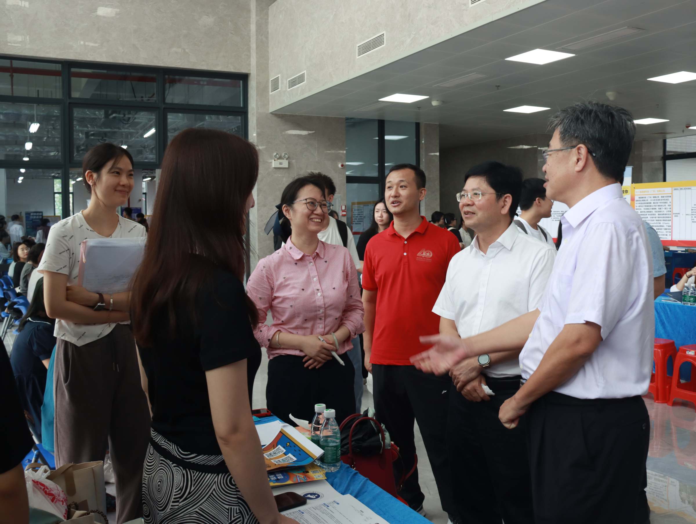会议结束后,参会领导亲临跨境电商专场招聘会现场指导工作,并与用人单位和求职学生进行互动和交流。本次招聘会共吸引93家知名企业和用人单位的积极参与,提供岗位总数741个。