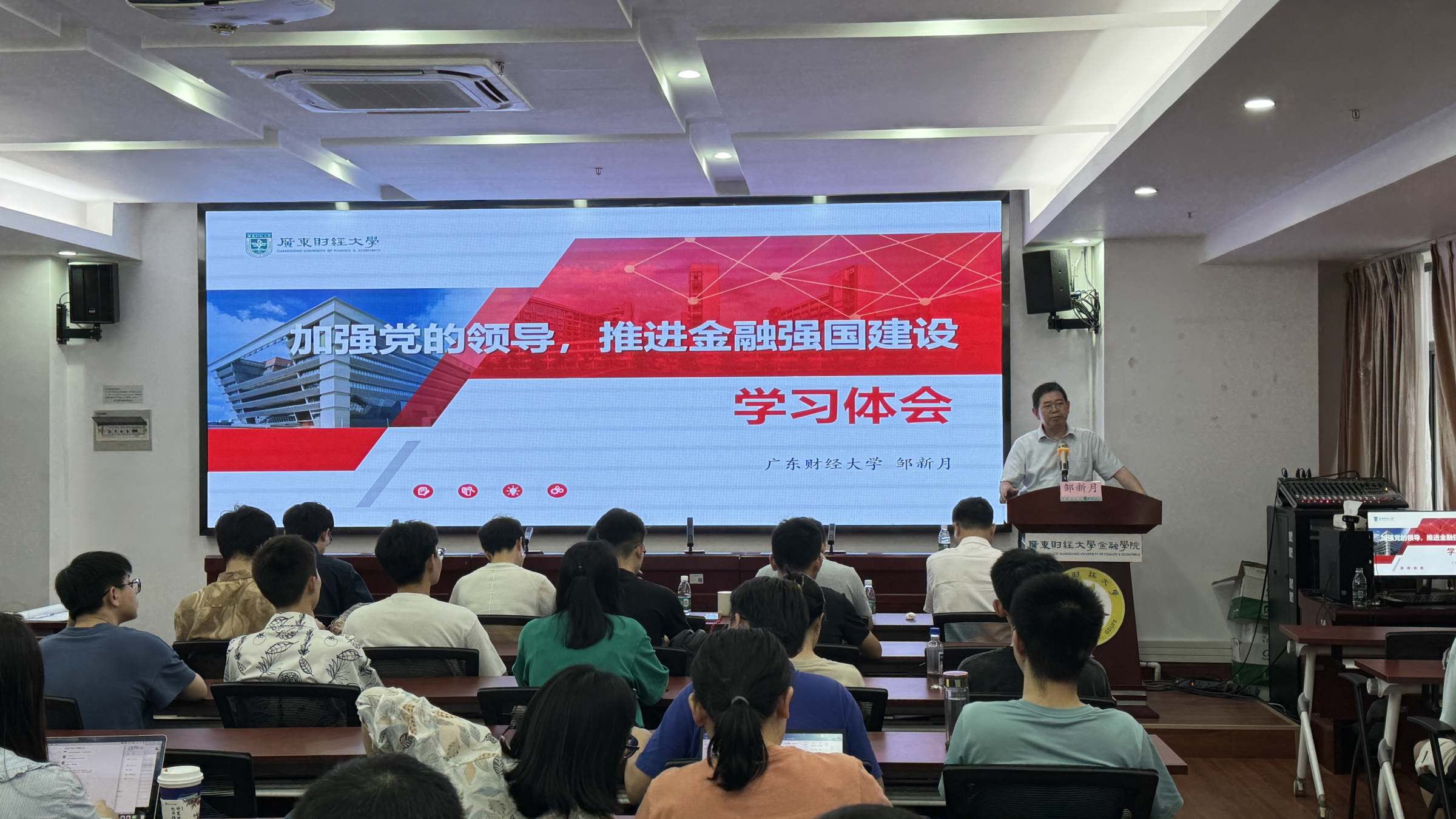 为深入学习贯彻习近平总书记关于金融工作的重要论述,贯彻落实中央金融工作会议精神和省委金融工作会议精神。6月18日下午,副校长邹新月在立德楼339以“加强党的领导,推进金融强国建设”为主题讲授思政课。活动由金融学院院长蔡卫星主持,学院全体教职工、研究生党员代表参加。