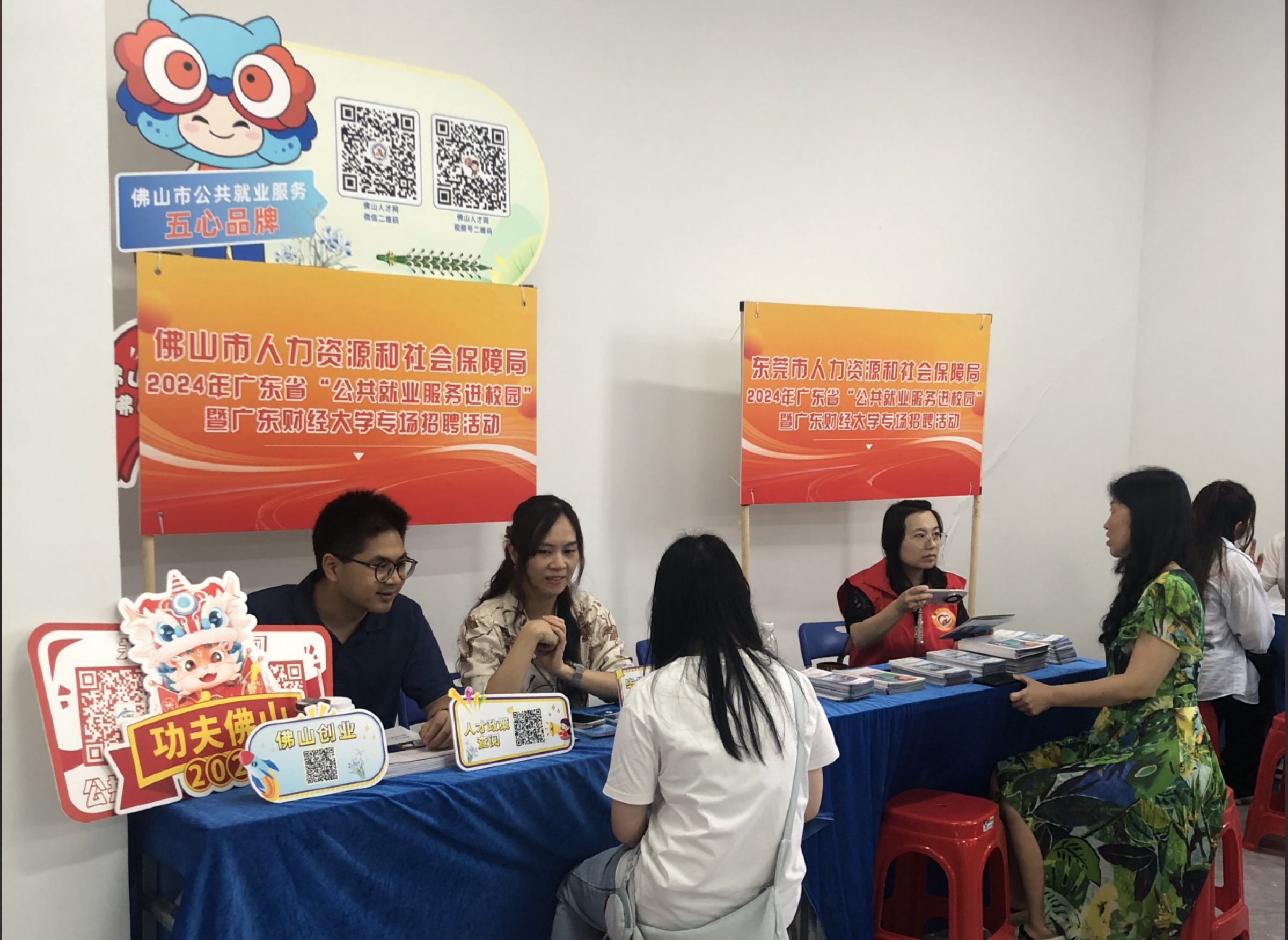 现场设有佛山市人社局和东莞市人社局2024年广东省“公共就业服务进校园”政策咨询点,是我校落实“2024年高校毕业生就业创业政策宣传月系列活动”重要举措之一,毕业生可现场就人才引进政策、档案转递、落户等相关政策进行咨询。