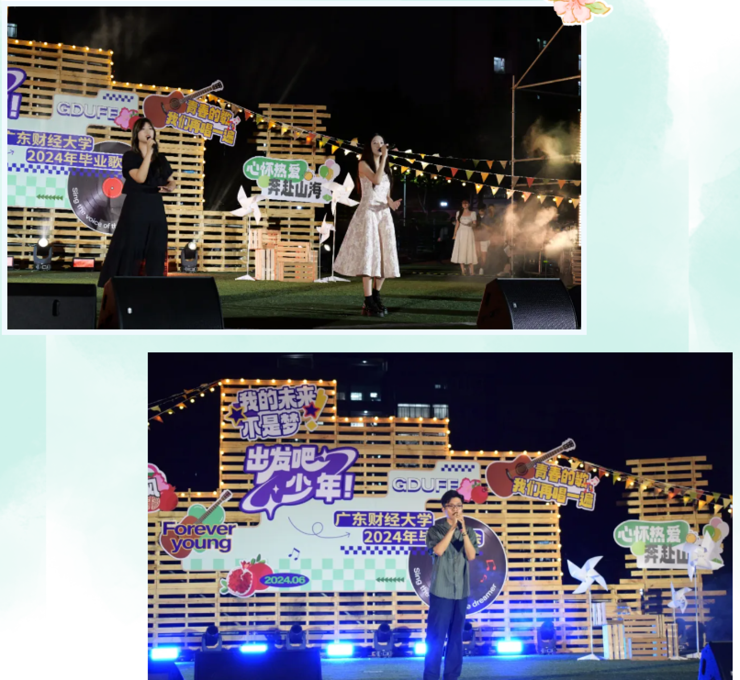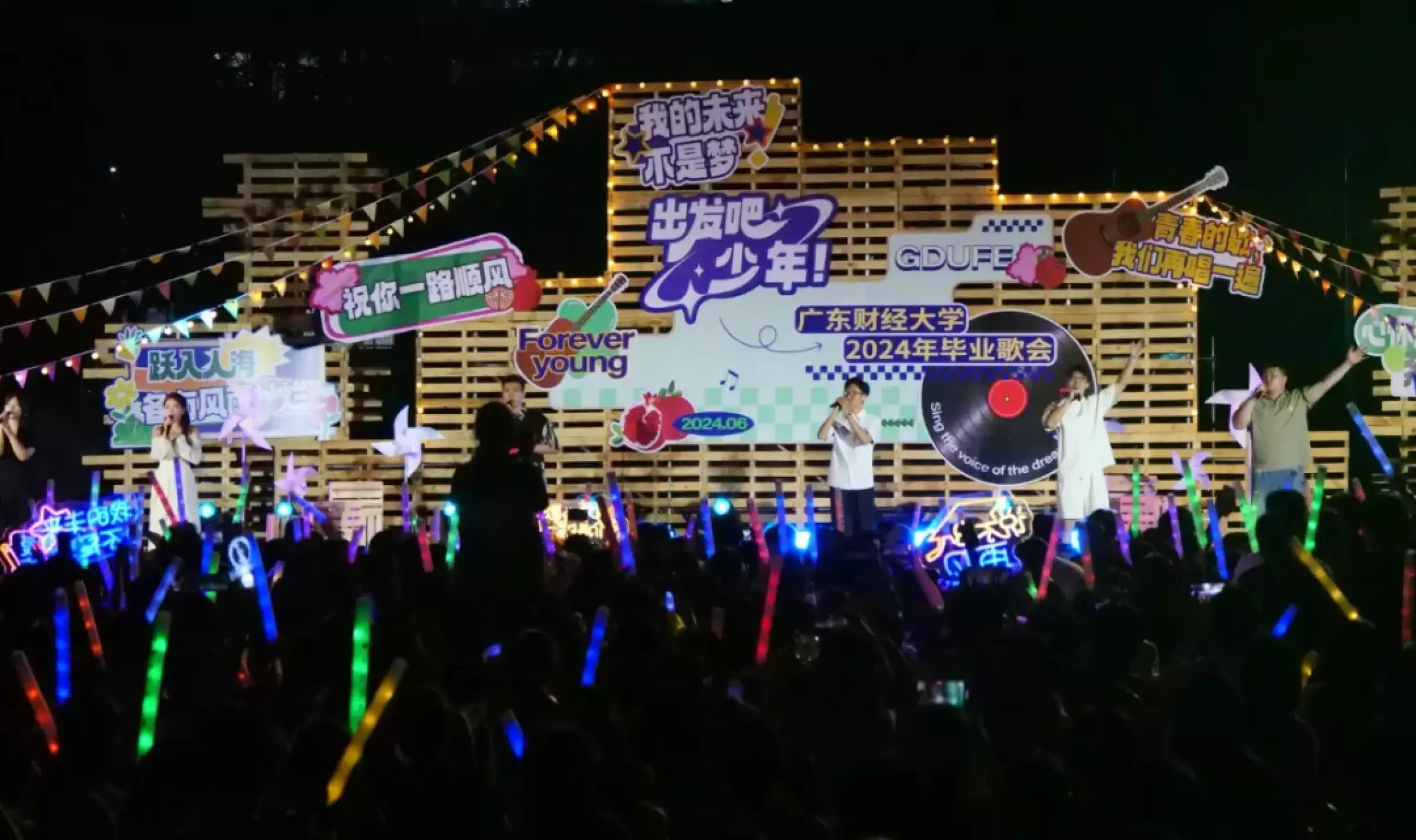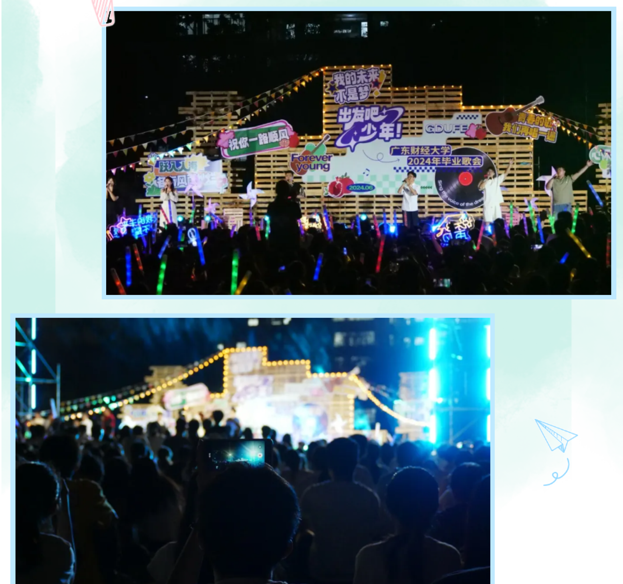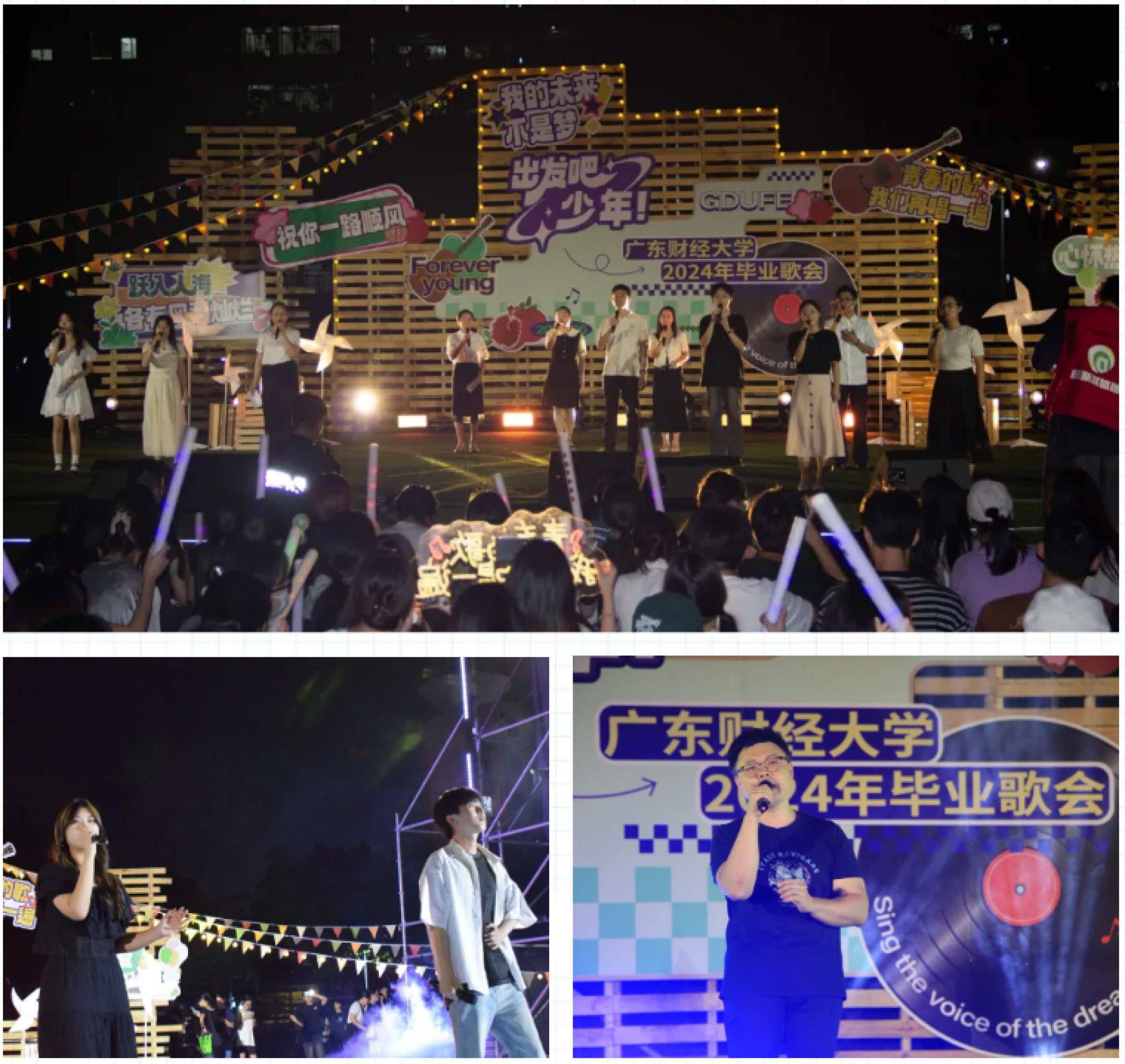 凤凰花开,骊歌声起。毕业前夜“出发吧,少年”广东财经大学2024年毕业歌会在两校区同时上演,3000余名师生齐聚,将满满的回忆与浓浓的祝福融入青春的歌声里。