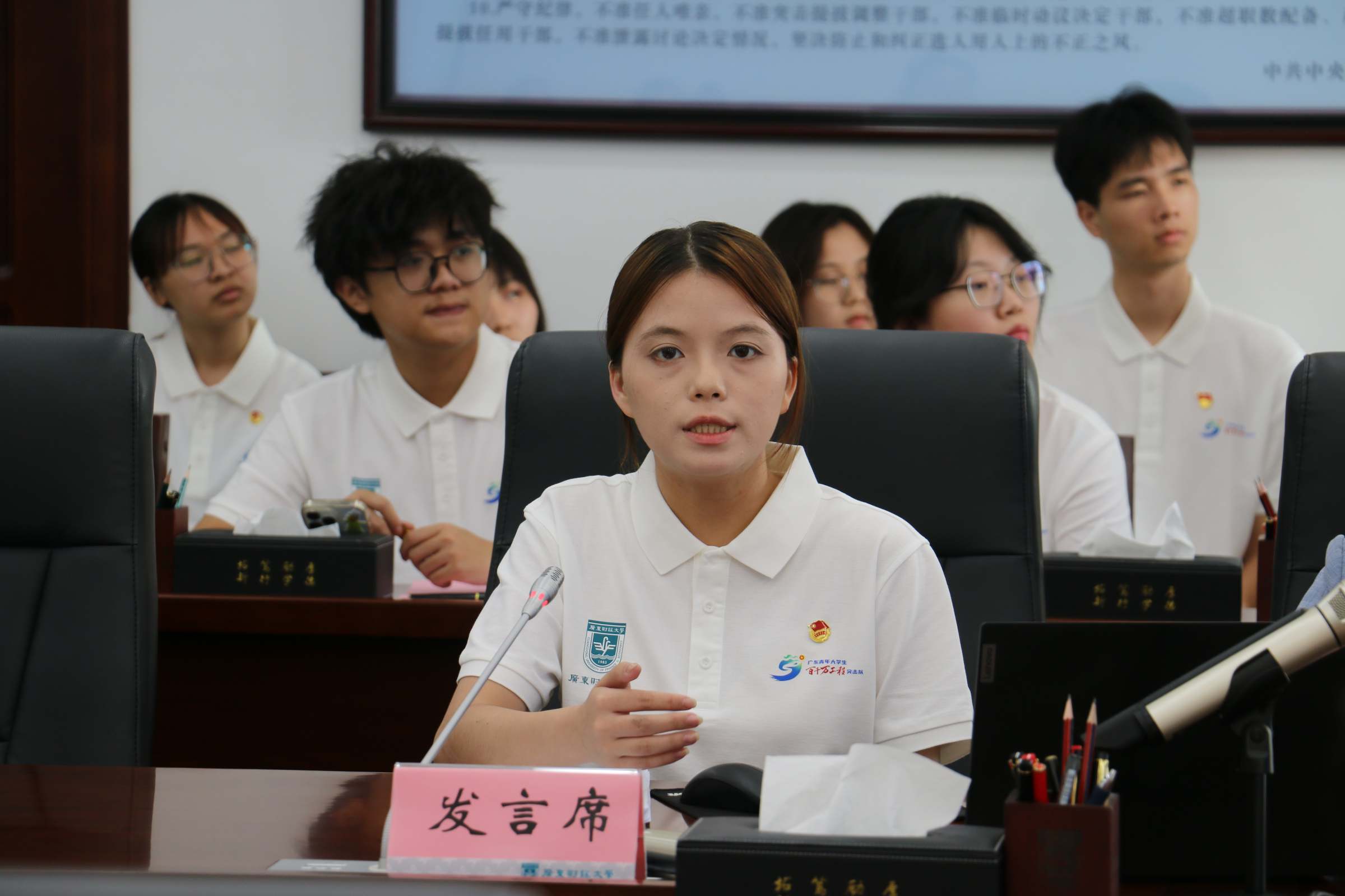 实践组织单位代表数字经济学院党委书记李恩华、艺术与设计学院党委副书记林强、公共管理学院党委副书记李天德、湾区影视产业学院党委副书记路军奉以及法学院团委书记李培亮、人文与传播学院、网络传播学院(合署)团委书记杜智远、工商管理学院/粤商学院/创新创业学院佛山校区团委书记赵瑞玲、金融学院团委书记宋佳琪作交流发言。
