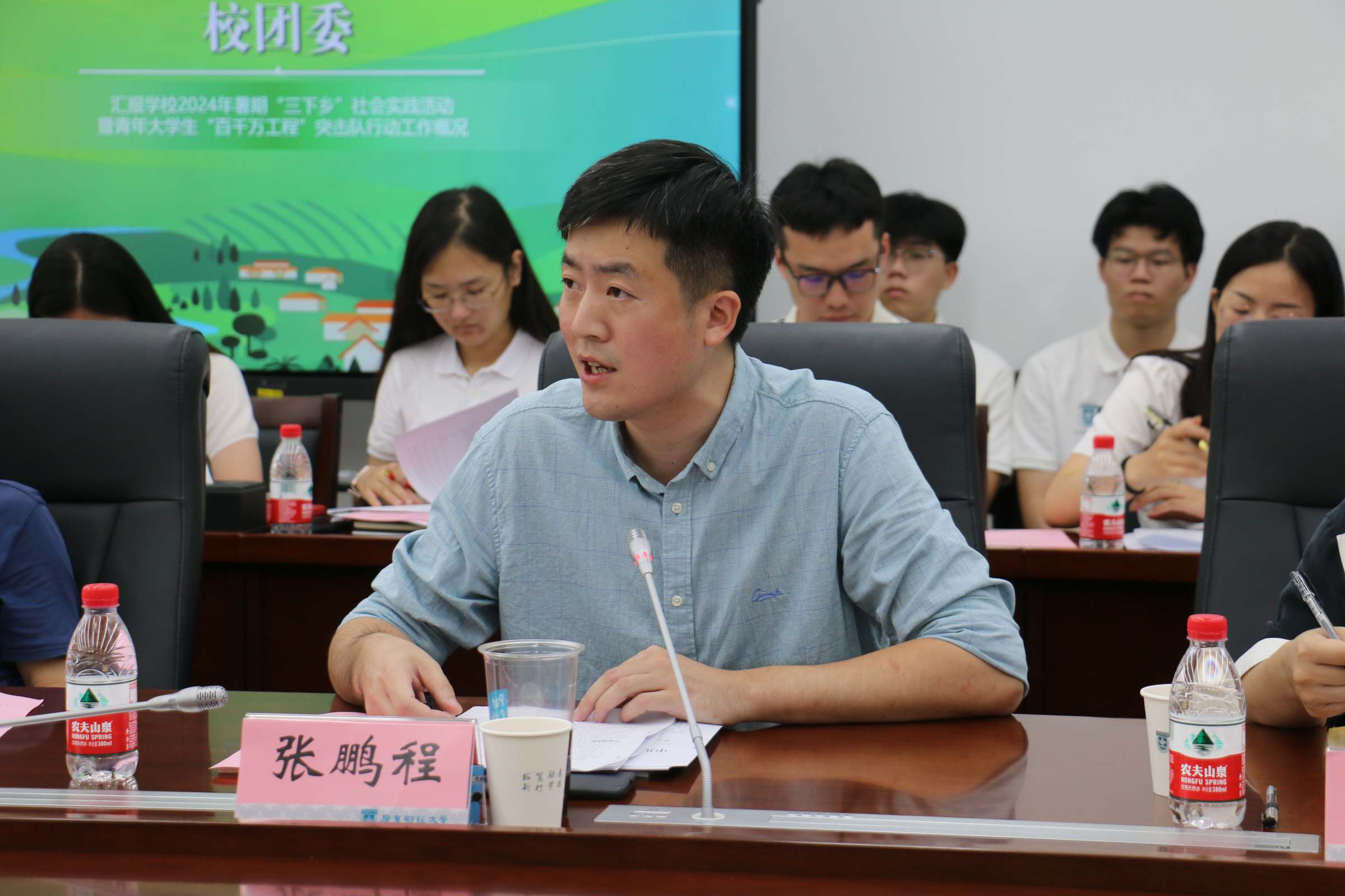 会上,校团委书记张鹏程汇报了学校2024年暑期“三下乡”社会实践活动暨青年大学生“百千万工程”突击队行动基本情况及工作思路。