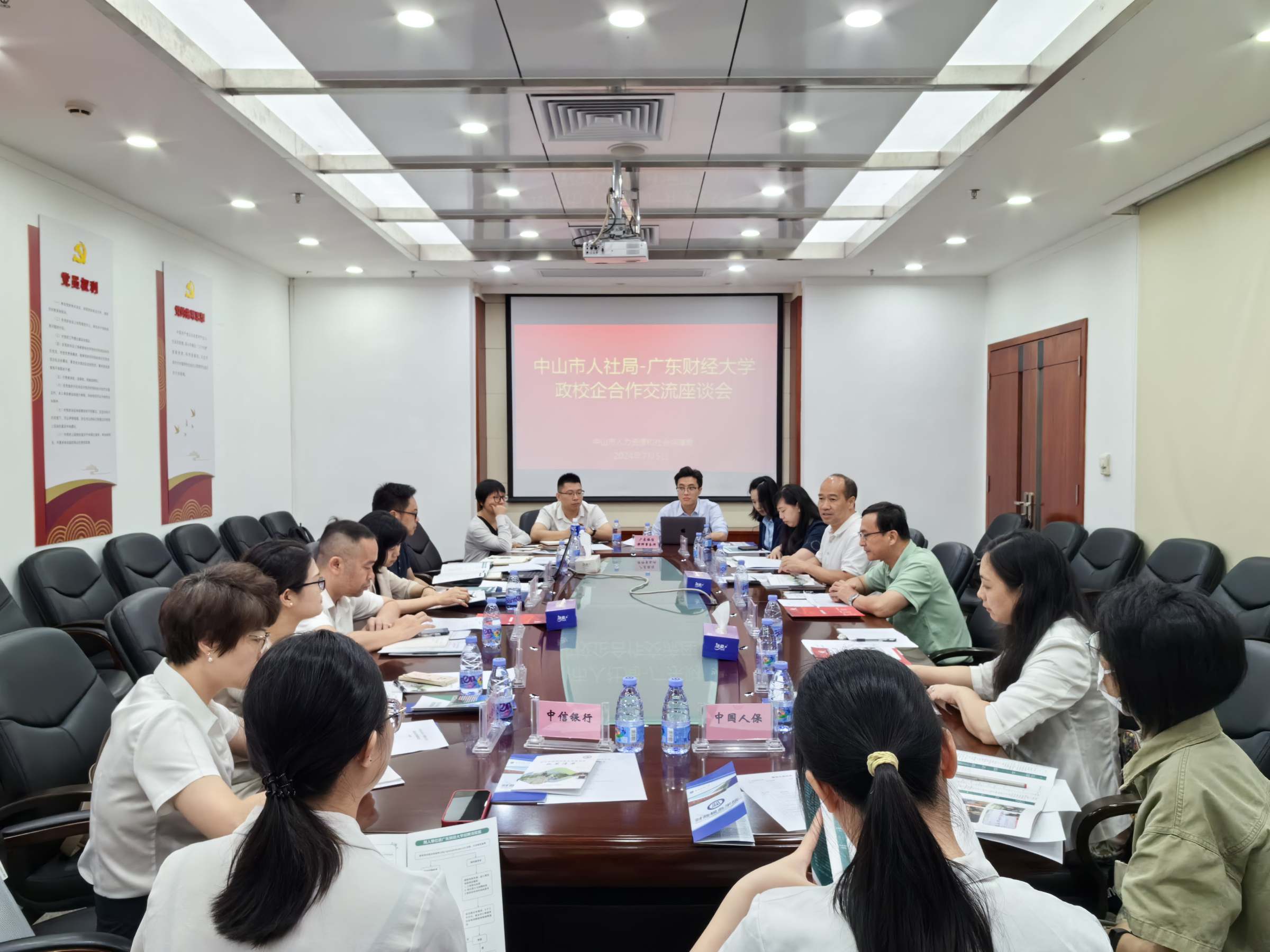 7月5日,我校党委学工部部长、学生就业指导中心主任苏明华一行赴中山市人力资源和社会保障局调研交流,深入开展“夏日送清风,协同促就业”专项行动,切实推动我校2024届离校未就业毕业生和2025届毕业生高质量充分就业。中山市人力资源和社会保障局的党组成员、副局长苏丹,人才资源管理办公室副主任钟旭明、科长梁厚华,毕业生就业服务科科长郭金环;我校人力资源学院党委书记黄东阳、财政税务学院党委副书记崔晓莹、学生就业指导中心王孝生老师,以及中国农业银行中山分行等8家企业代表参加。