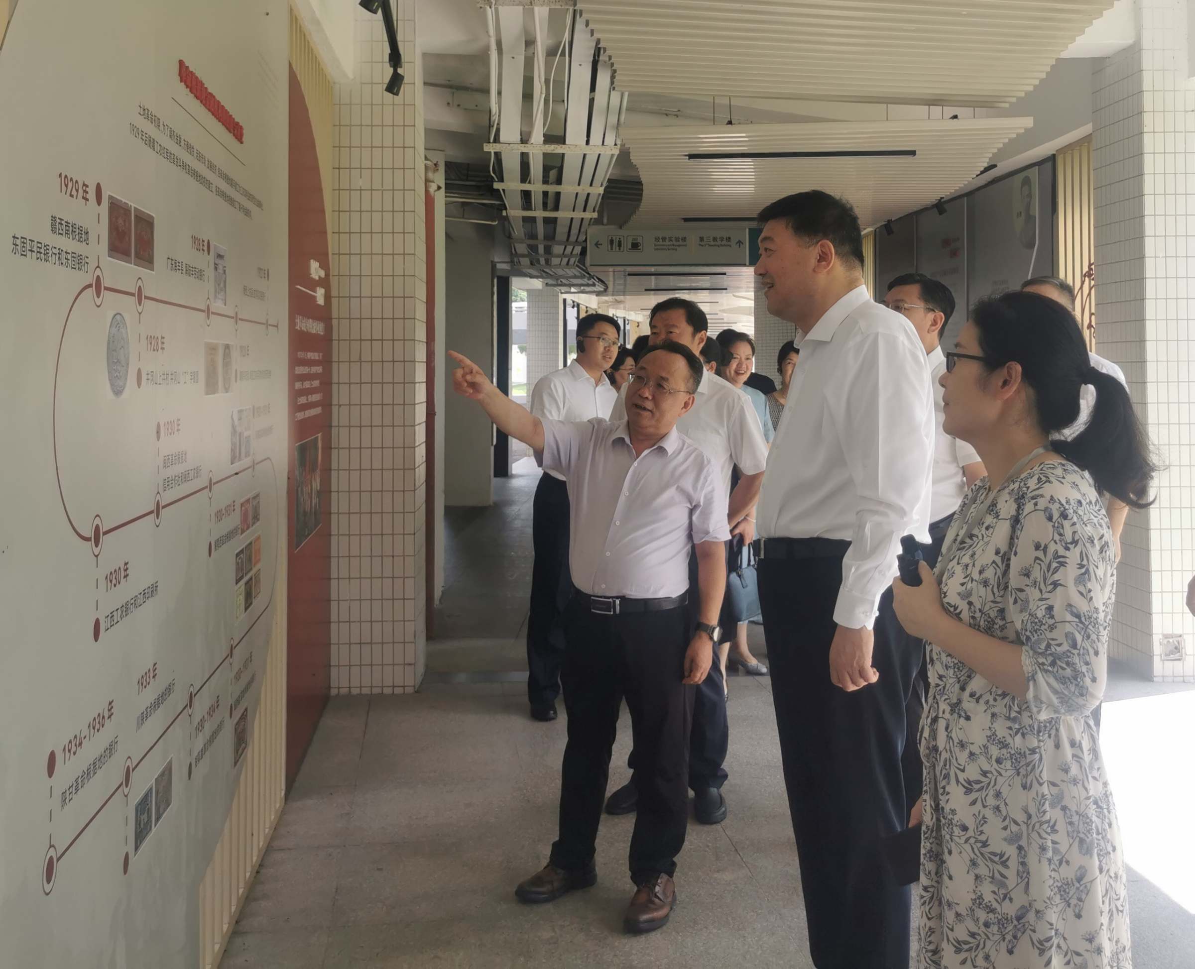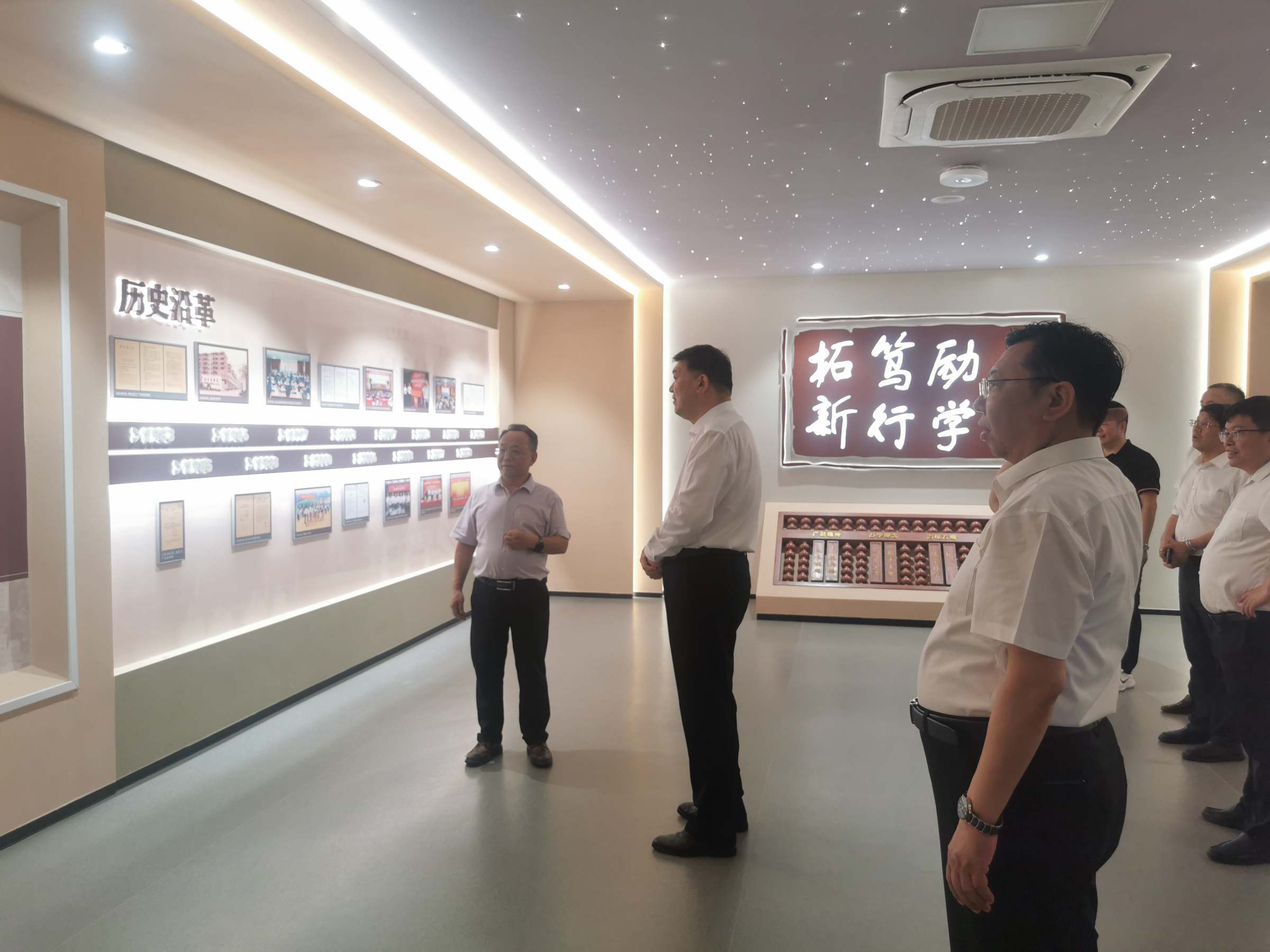 7月5日下午,内蒙古民族大学党委书记赵东海、副校长王百涛、教育基金会理事长白跃华等一行13人到访我校,在校长于海峰的陪同下,先后参观了马克思主义学院智慧思政教育共创中心、图书馆和校史馆。