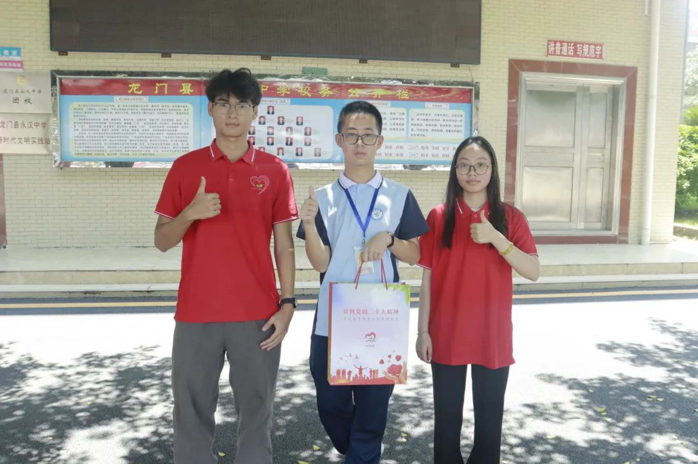 7月8日,省“国家资助和助学贷款政策下乡行“的重点团队之一,“育龙跃门”团队师生一行前往龙门中学和永汉中学,深入开展国家资助和助学贷款政策宣讲活动,帮助当地学生更好地了解国家助学政策内容。学生处处长苏明华、学生资助管理中心主任何燕、龙门县教育局副局长林昱靖、资助中心温然铃主任、龙门中学副校长曾志明、副校长林颖科、副校长廖建平、永汉中学党总支书记陆均田、副校长钟志雄等领导老师以及近六百名学生一同参加了活动。