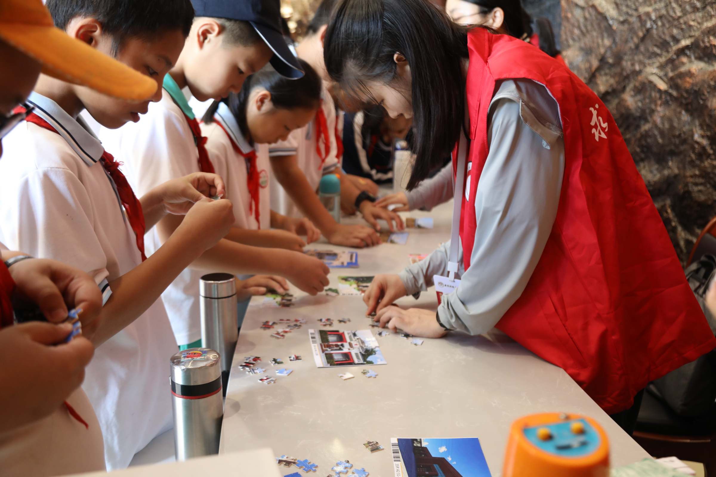 随后,团队成员在党史教育馆内以兴宁地方党史为线索开展了生动有趣的主题游戏活动。本次活动巧妙结合了兴宁当地的红色景点、英雄烈士事迹等内容,精心设计了一系列寓教于乐的特色游戏,如兴宁红色地点拼图、兴宁英雄故事传声筒等等。通过游戏中的逻辑线索串联,同学们得以亲身体验兴宁党史的发展历程,感受到革命先烈英勇奋斗的伟大精神。团队成员指出,这种方式让红色文化的传播更加生动有趣,使得参与者在轻松愉快的互动氛围中感悟深厚的党史文化内涵,更容易被参与者接受和记住。活动获得了同学们的热烈反响,不少同学表示都玩入迷了:“我觉得这个活动的游戏非常有趣,让我们在互动游戏中学习和传承红色文化,同时其中一些需要组队完成任务的游戏也可以锻炼我们的团队合作能力。”