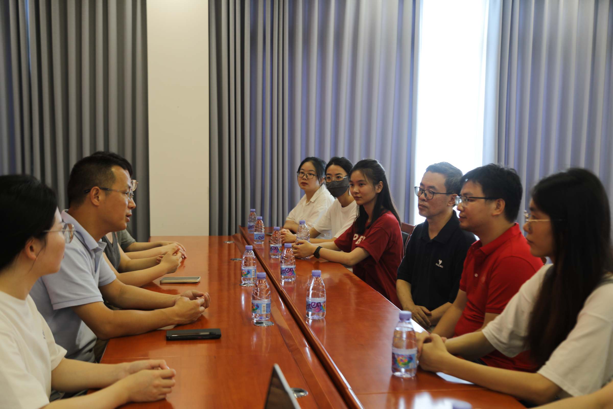 活动结束后,团队成员与兴宁市水口镇党委书记许杰浩、水口镇副镇长、团委书记邬思美、水口镇团委副书记陈宇秋在党史教育馆进行了深入交流。会上许书记介绍水口镇的经济社会基本情况及在生态农业发展方面的创新举措,他表示水口镇有丰富的文化资源,希望有更多的广财师生力量走进兴宁助力乡村振兴。双方一致同意要以此次活动为契机,进一步加强沟通交流,提升“百千万工程”的针对性和实效性,推动双方合作不断深化。