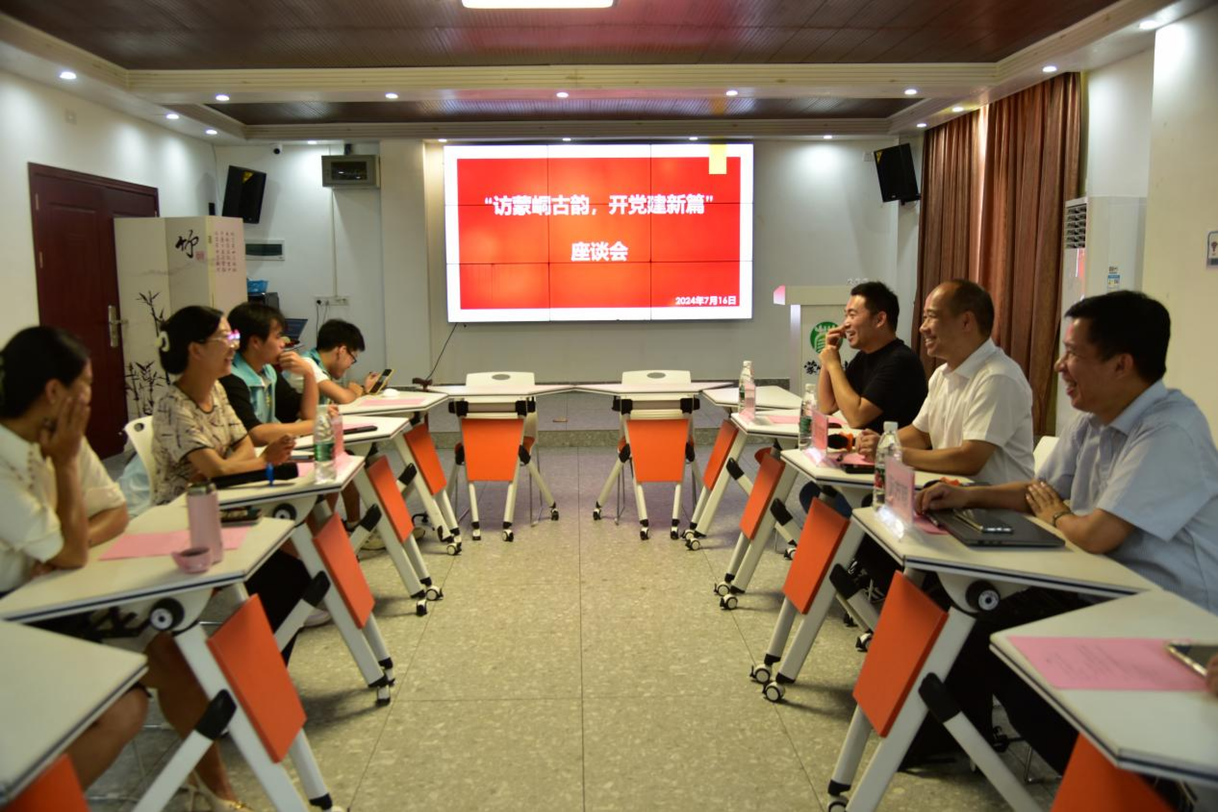 随后,双方就乡村振兴、大学生社会实际开展情况召开座谈会。座谈会上,智富蒙峒实践团队长刘滢详细介绍团队基本情况及项目初步成果,分享了同学们在古村中开展摄影宣传、走访调研、新媒体运营、电商直播以及文创等方面的经历,同时也代表团队对学院领导、实践地的关心关爱表达感激之情。