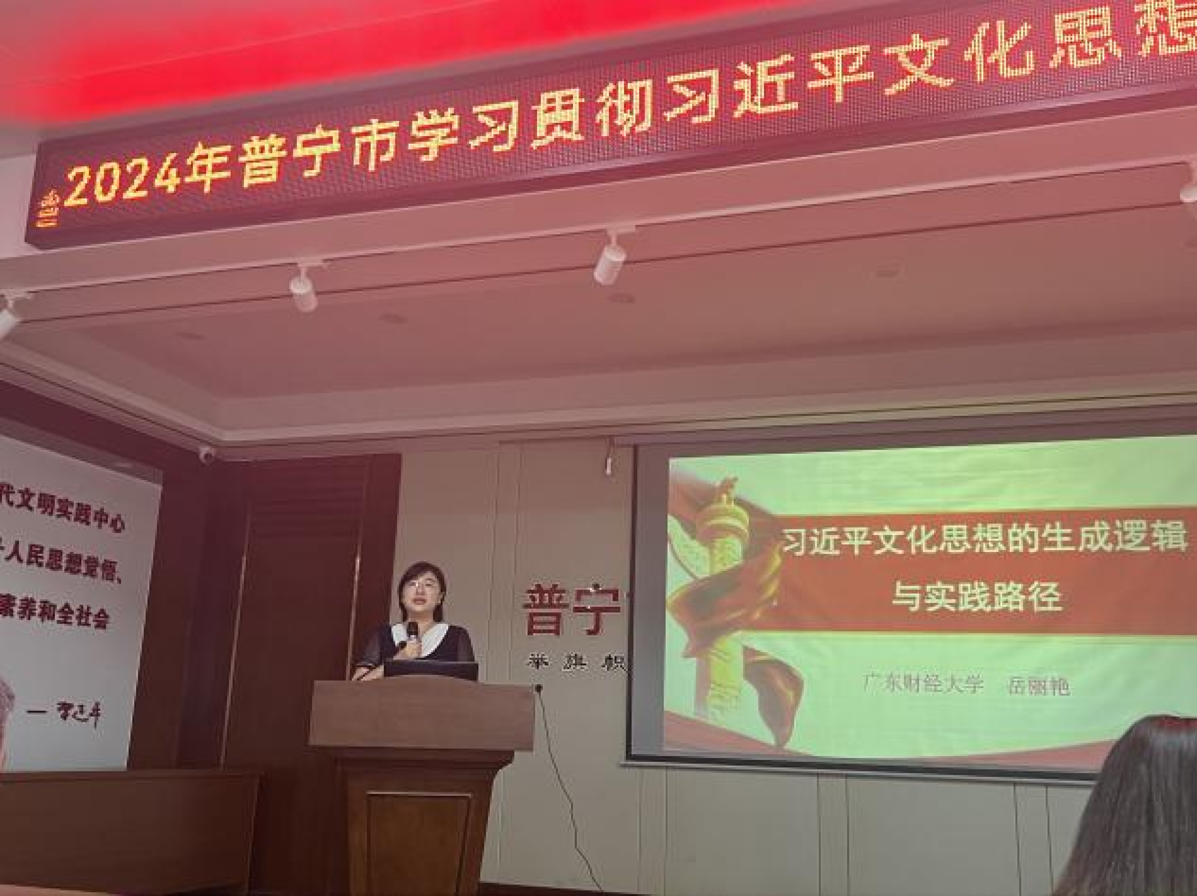 7月17日,宣讲团抵达普宁市,并在当地多个新时代文明实践中心、妇女儿童活动中心和图书馆等地进行了6场主题宣讲活动。宣讲内容涵盖习近平文化思想、家风家训与乡风文明建设、百年党史与红色基因传承、新质生产力以及中国式现代化与百千万工程等多个方面。岳丽艳教授、孙云山博士、黄荟教授和陈汉来教授等专家通过生动的讲解和案例分析,使基层党员干部和群众深刻理解党的创新理论,增强了对地方发展的信心和动力。另外,宣讲团队还参观了普宁市八一纪念馆,深入了解革命历史,感受革命先烈的英勇事迹和革命精神。17日上午,宣讲团完成了四场精彩纷呈的宣讲活动,内容涉及习近平文化思想、家风家训与乡风文明建设、百年党史与红色基因传承以及新质生产力与中国式现代化等多个方面。