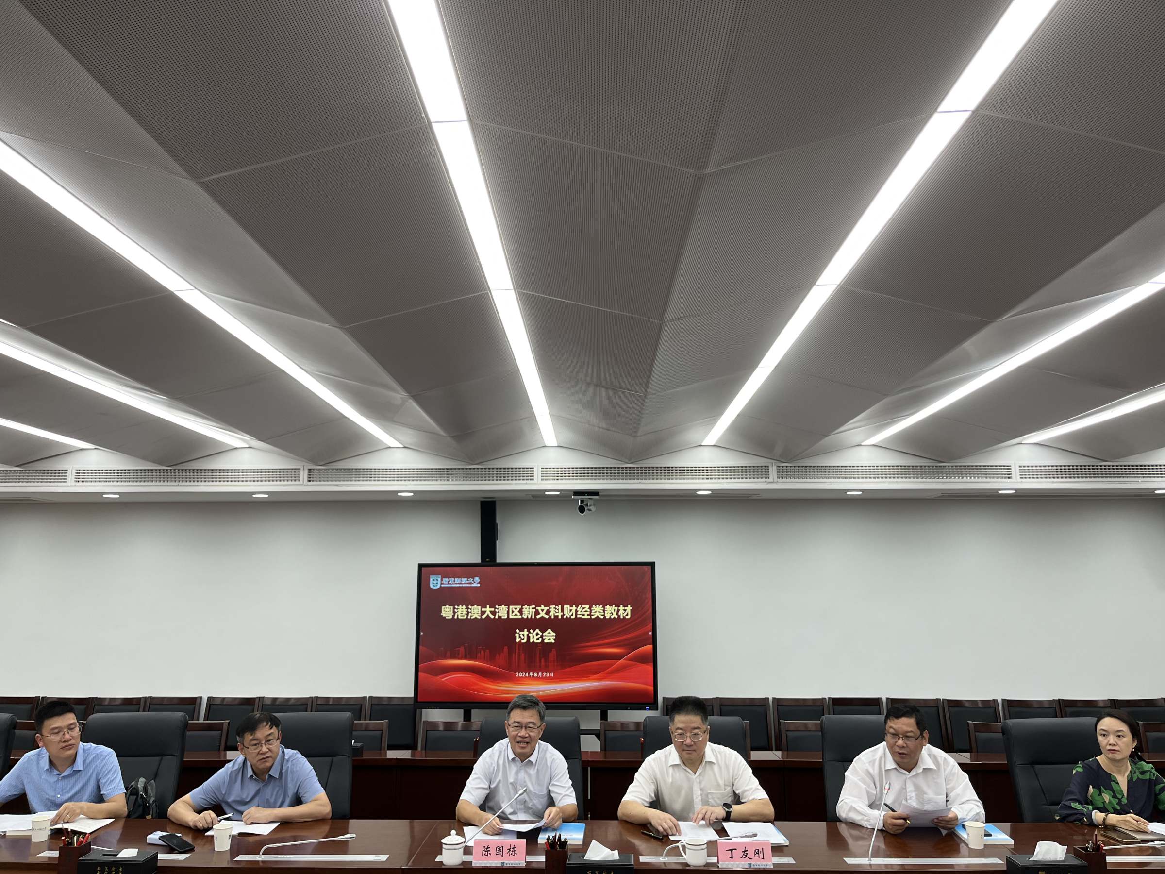丁友刚介绍了我校《湾区财经概论》教材的编写意义与过程。他提到,面对大湾区经济一体化的加速发展,以及国际金融、贸易、科技等领域的深度融合,学校敏锐地捕捉到了这一时代脉搏,迅速响应,成立了《湾区财经概论》教学研究中心,组成了一支跨学科、高水平的编写团队,打造了“湾区财经概论”课程。接下来,学校将全面推进“1+1+N”湾区特色课程系列教材编写和出版。