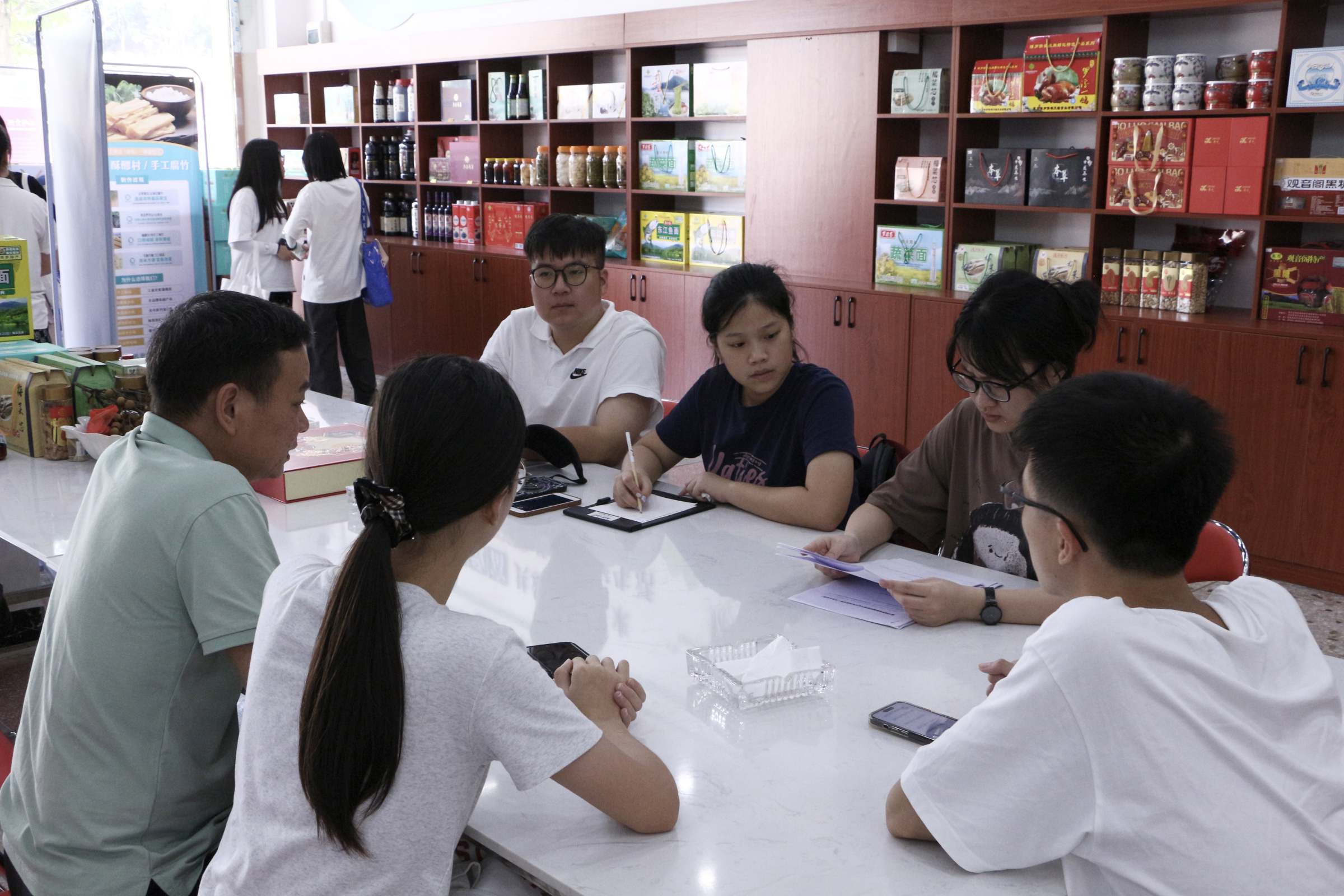 “我们是博罗第一家供销社土特产超市,目前售卖的产品都是来自博罗本地的土特产品,比如罗浮山腐竹、观音阁黑糖、东江菜心面……”来自中国供销合作社土特产超市销售部的经理关桂坚自豪地向实践团成员们介绍起博罗县的土特产。据关贵坚介绍,该土特产超市长期与粤港澳大湾区(广东•惠州)绿色农产品生产供应基地紧密合作,共同推进优质项目的实施,通过打造可直接连接田头到餐桌、全程标准化可溯源的农副产品直供配送网络,进一步推进农副产品供应的多元化发展。