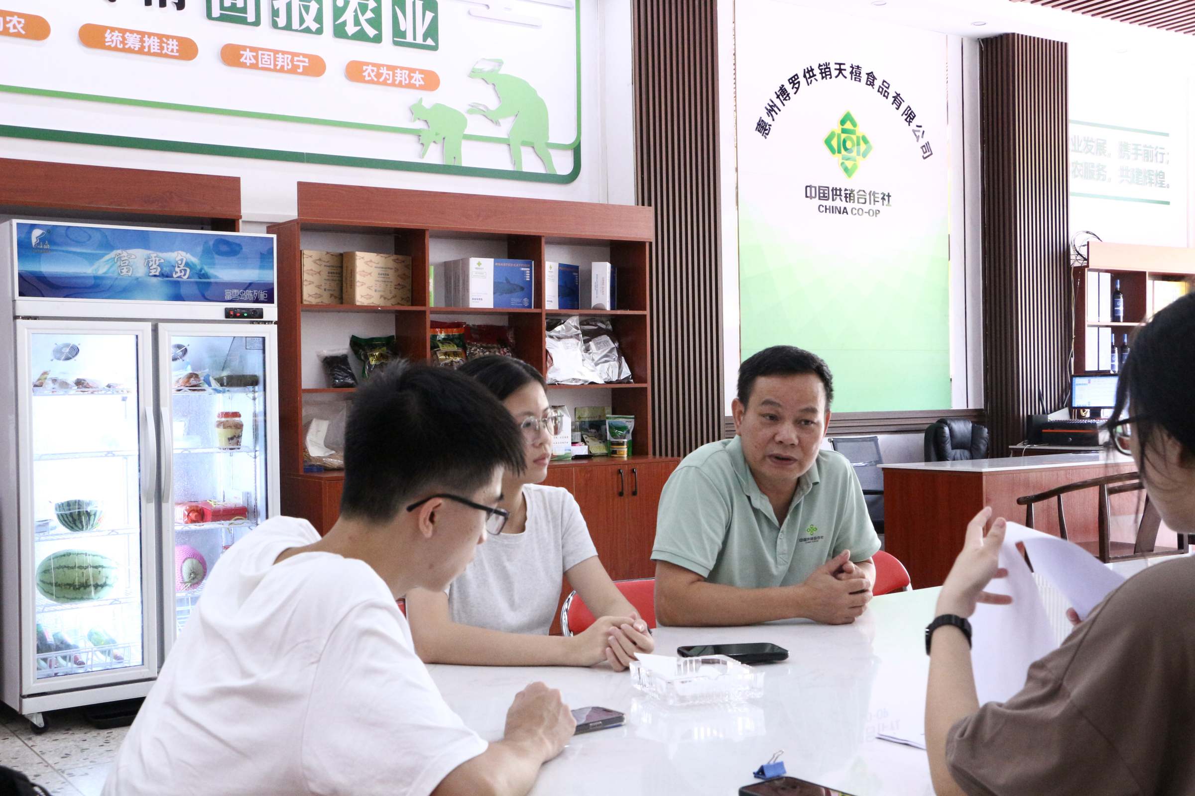 除此之外,实践团还访谈了来自津秀助农科技产业有限公司的执行董事邓景辉与策划师徐奇。据了解,该公司组建了粤港澳大湾区消费帮扶直播间,这一创新举措为博罗县的农产品开辟了一条全新的销售渠道,不但有效拓宽了农产品的市场边界,而且还助力了农业品牌的推广,为博罗县农产品的蓬勃发展注入了新鲜活力。