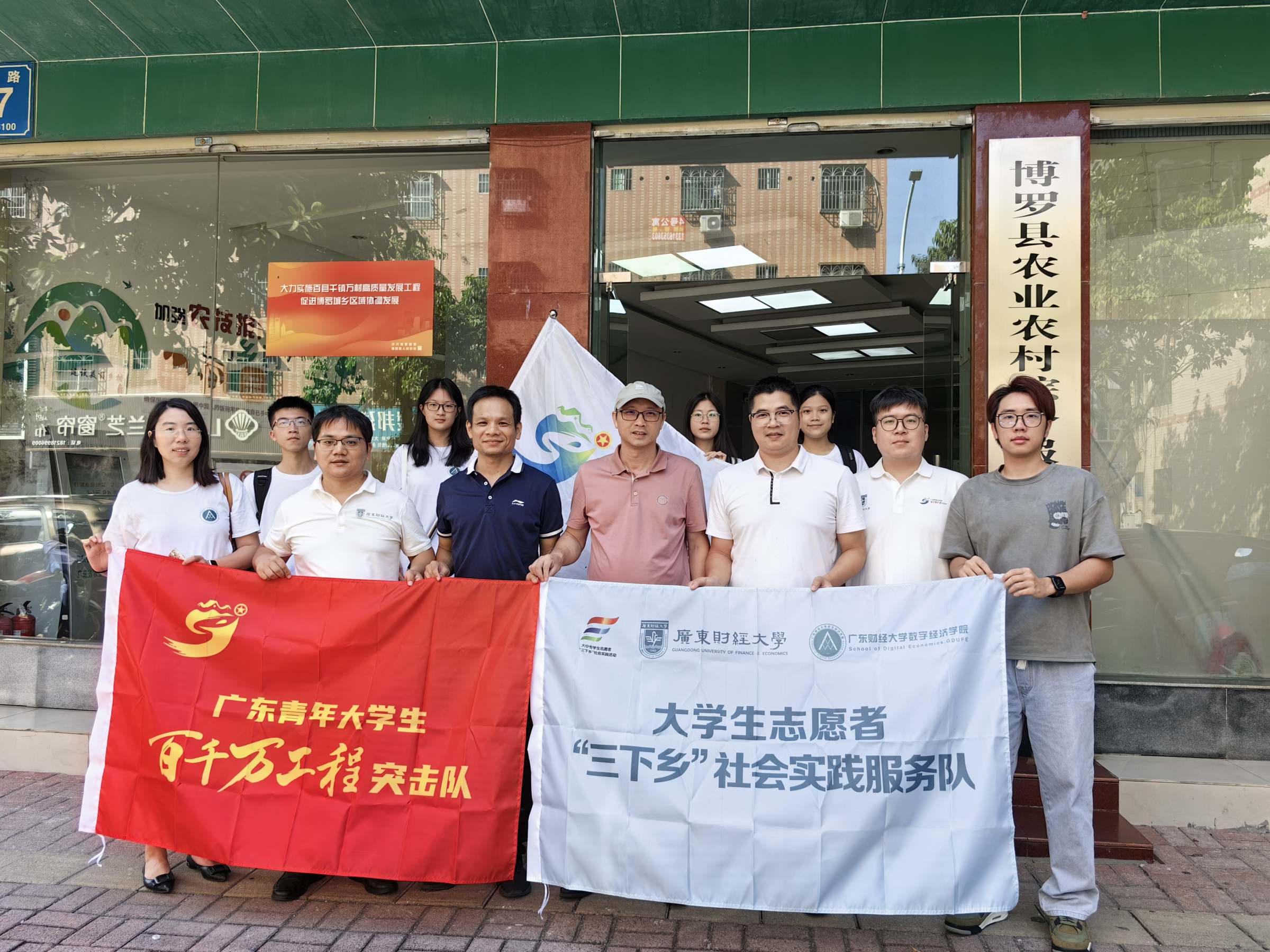 7月22日,为响应省委、省政府关于开展“百县千镇万村高质量发展工程”的号召,我校“寓数于农”实践团在学院党委书记李恩华、教工第一党支部书记阮传扬带领下深入博罗县开展专题调研,感受博罗县数字赋能的勃勃生机。