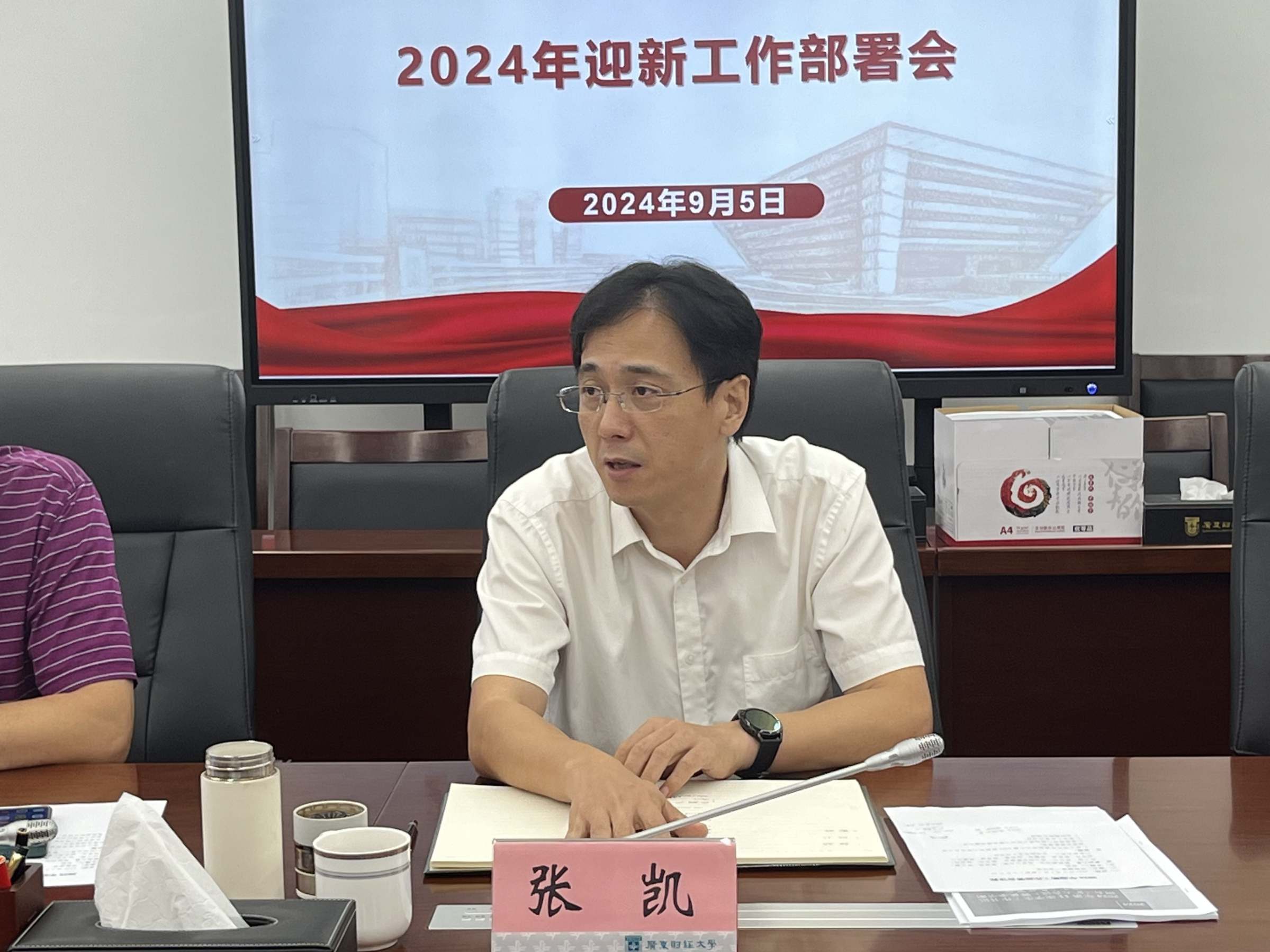 9月5日下午,学校在同德楼第一会议室组织召开2024年迎新工作部署会,副校长张凯、各相关职能部门负责人及各学院学生工作书记与会,会议由学工部部长苏明华主持。