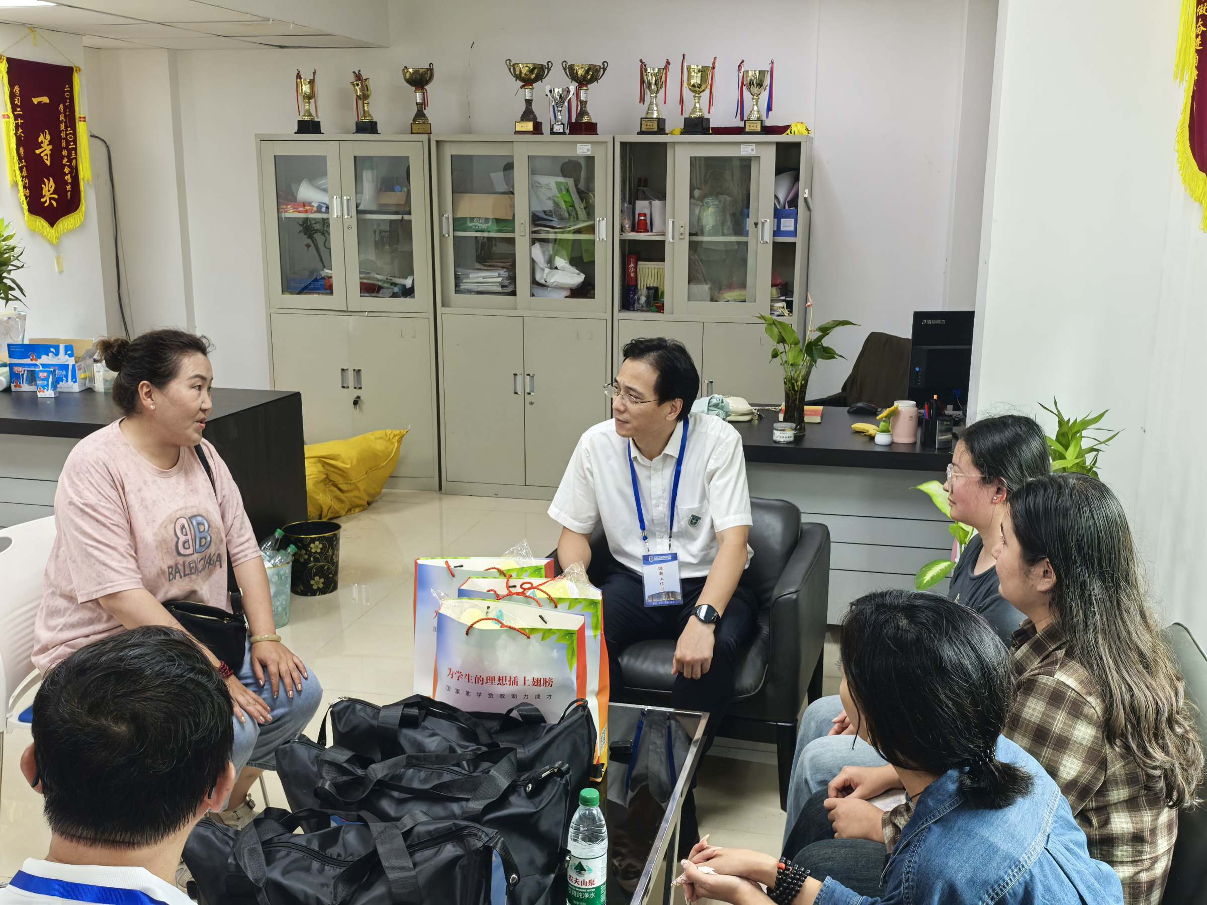 9月7日,随着第一批新生的到来,我校2024年迎新工作的大幕正式拉开,来自五湖四海的2024级新生们齐聚广东财经大学,开启一段崭新的大学新生活。今天是2024级本科生报到的第一天,副校长张凯来到佛山校区迎新现场,亲切看望报到入学的新生,慰问参与迎新工作的师生。学工部、佛山校区管委会负责人和相关学院学生工作书记陪同参加。