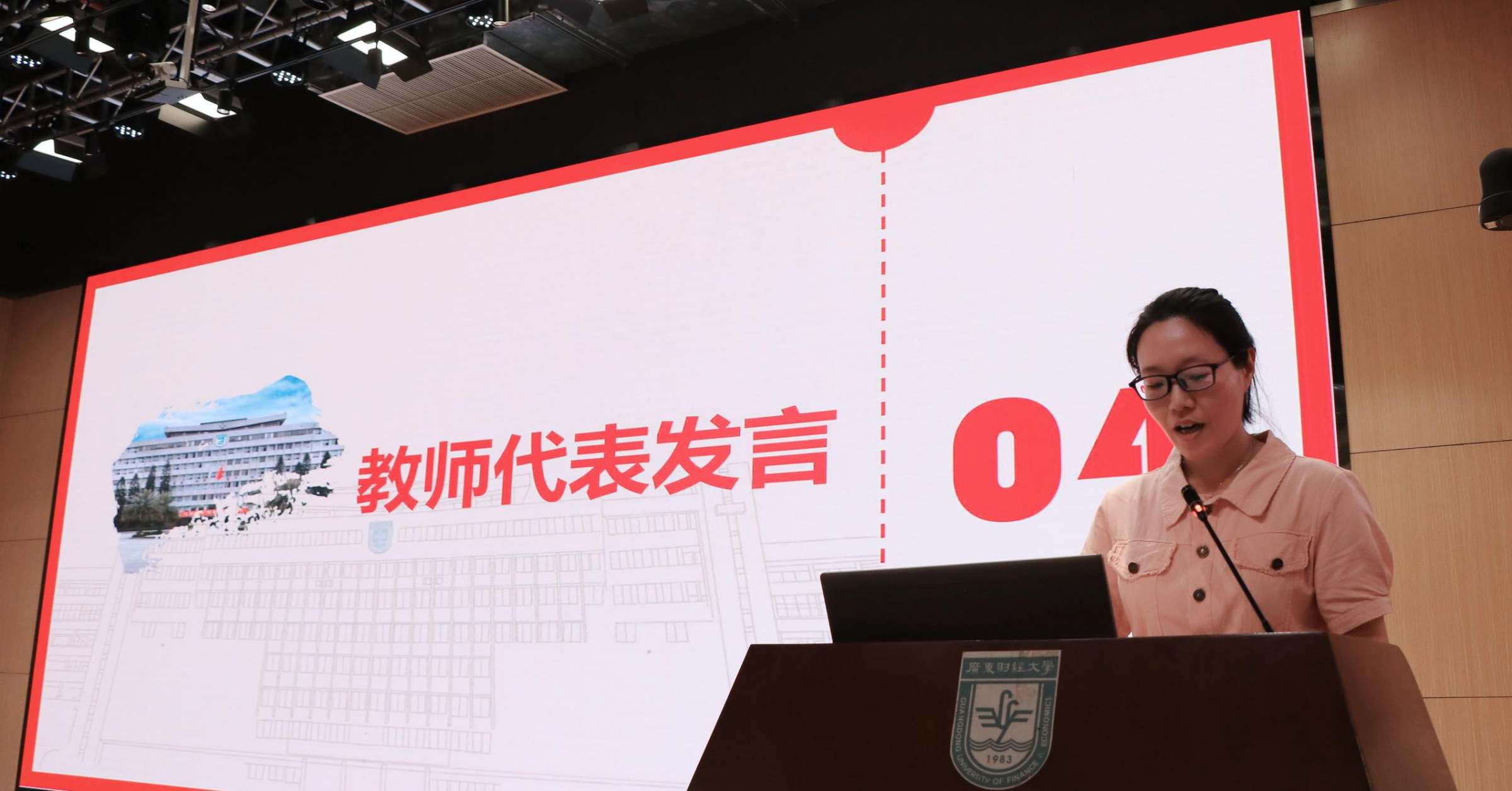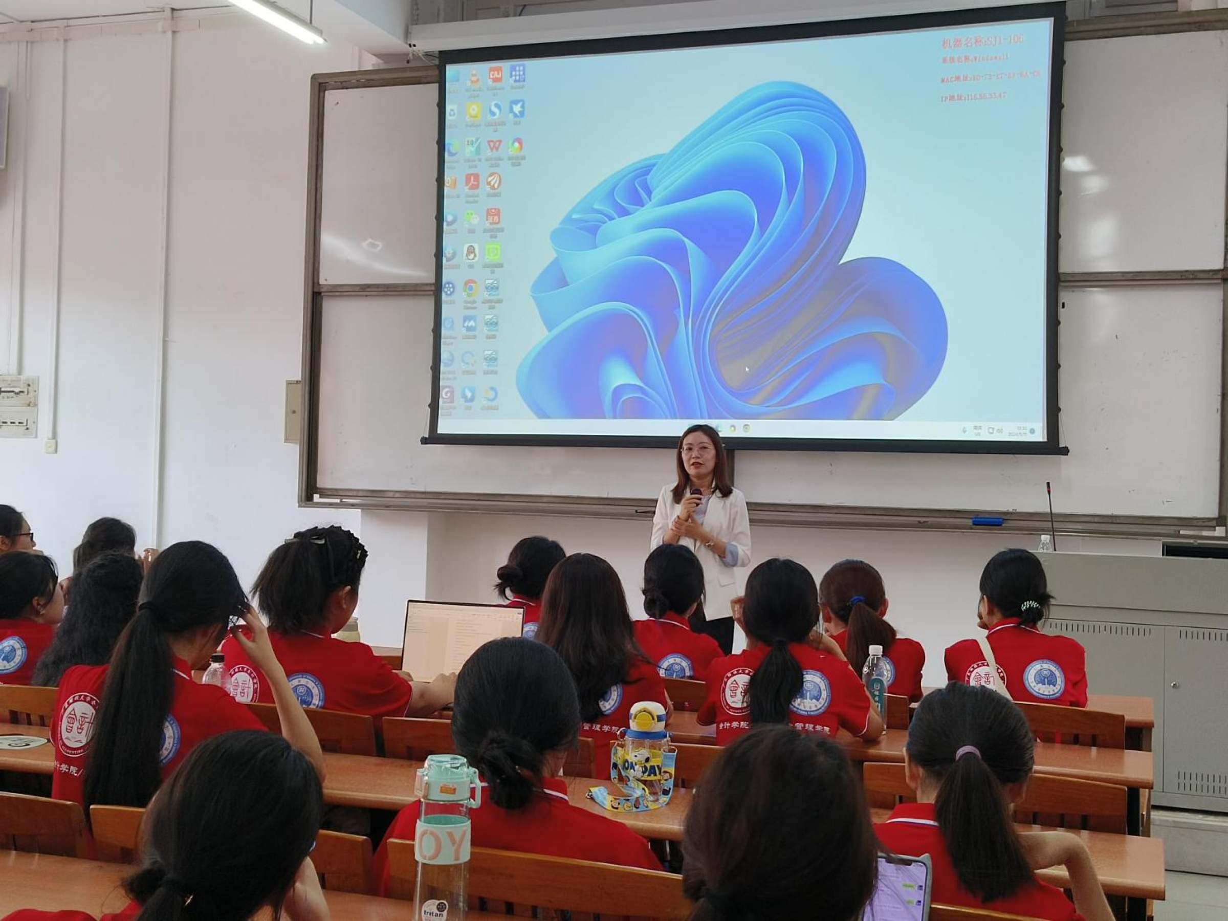 教师代表陈晓珊发言,她鼓励新生树立奋斗目标,培养自主学习能力,并强调大学需增强学习主动性和创造性。同时,她倡导同学们学会宽容、沟通与交流,以积极适应新环境,并表达了对同学们未来大学学习生活的美好祝愿和殷切期望。