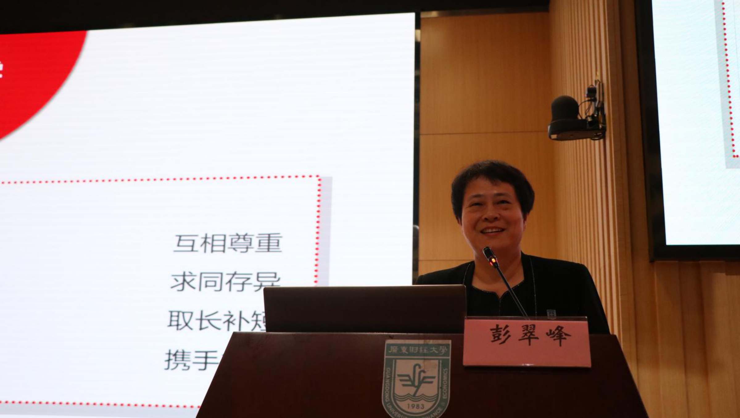 在“思政第一课”上,彭翠峰热烈祝贺新生入学,激励新生自信面对未来。她回顾学院发展历程,展示学院卓越成就,勉励新生树立高远志向,践行“明德、求是、务实、创新”的院训。鼓励新生做到以下三点:一要志存高远,做心怀“国之大者”的新时代好青年;二要奋发进取,做具有创新能力和科学精神的新时代好青年;三要严于律己,做一个诚实守信的新时代好青年。她寄语新生珍惜时光,勤学不辍,既修业亦厚德,为成为新时代好青年和财经领域栋梁之才而努力奋斗。