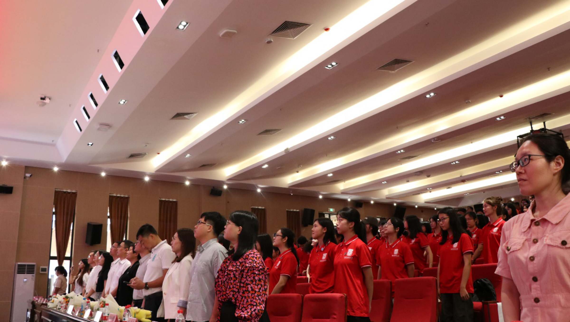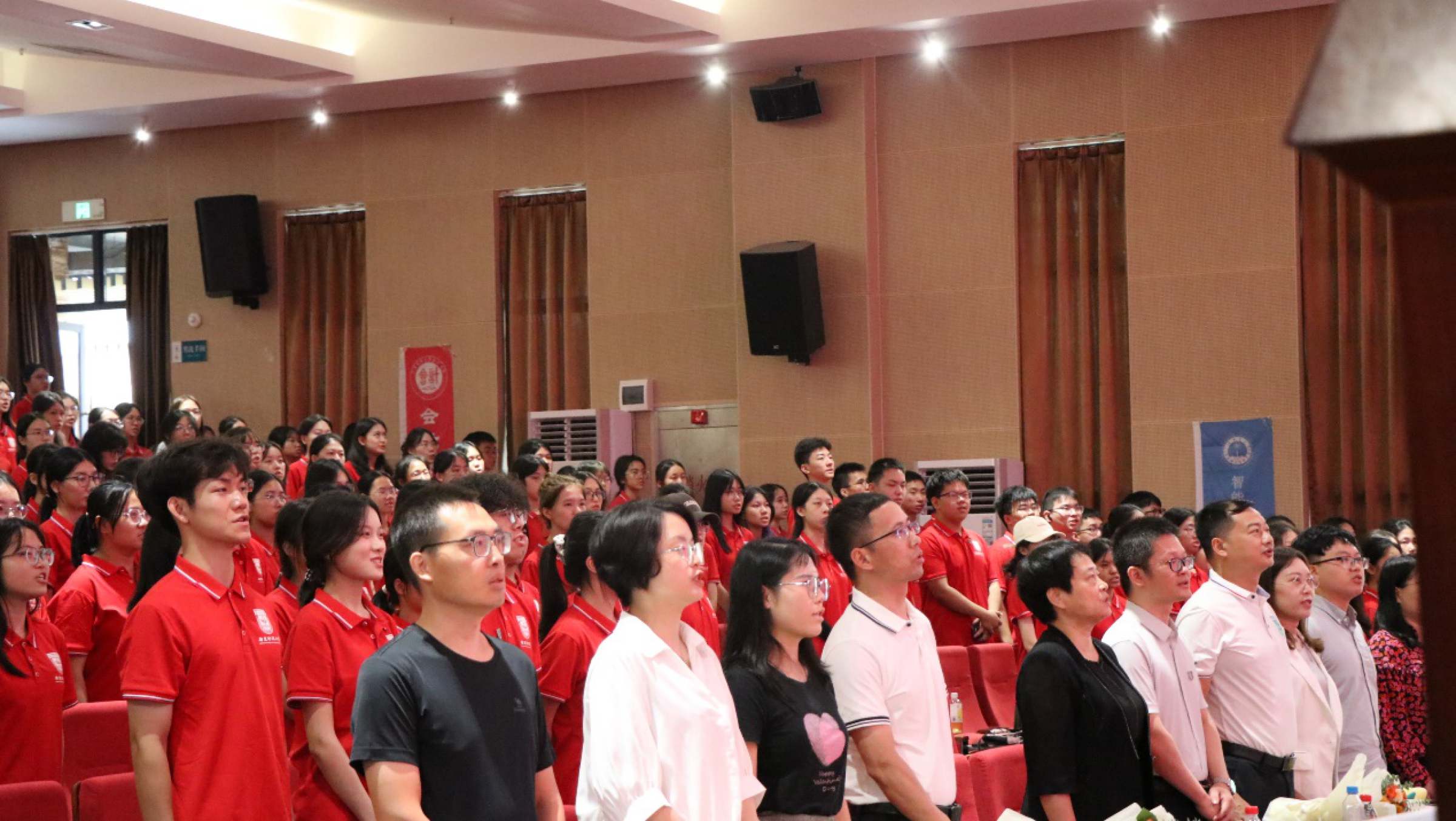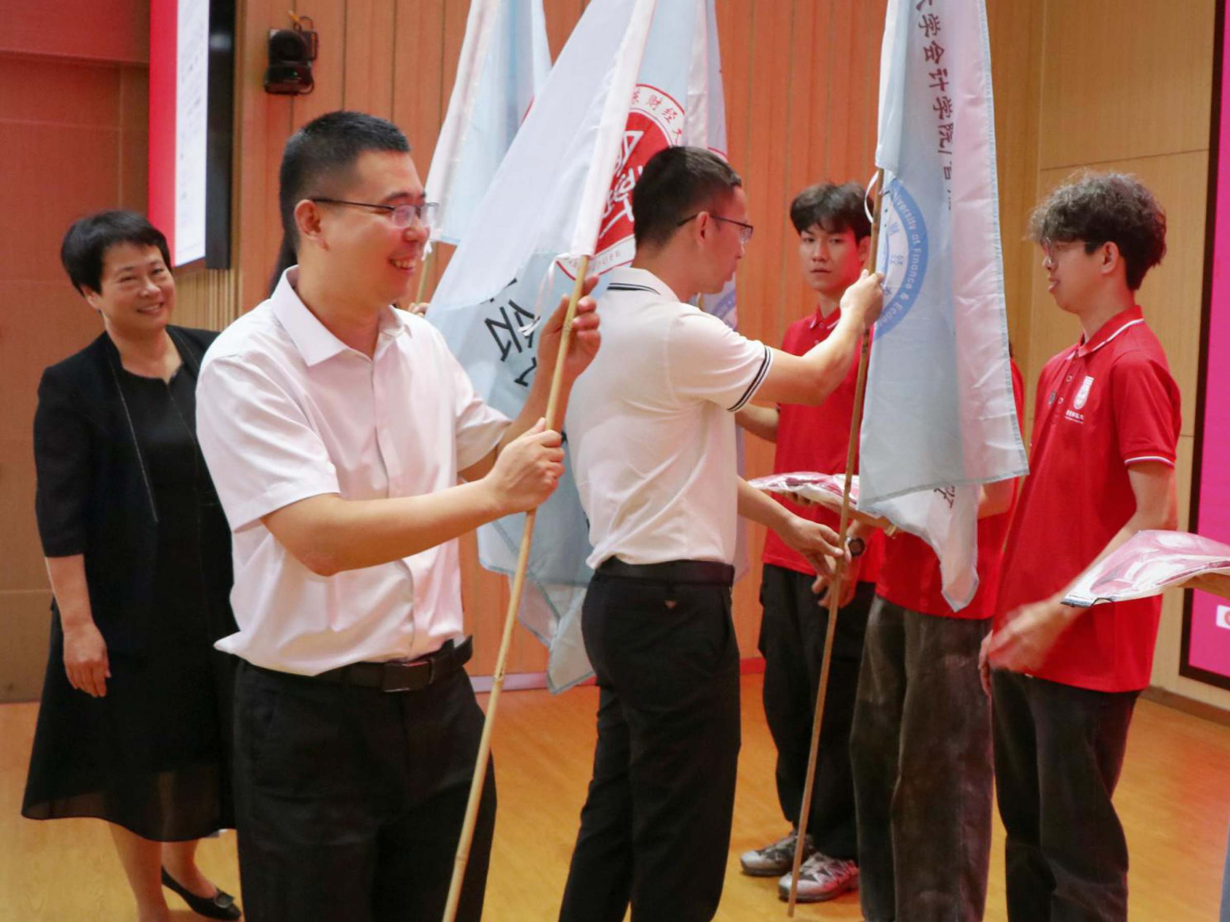 为加强新生的归属感和集体荣誉感,学院领导班子和校友导师向新生班级代表授予班旗和赠送院服,新生们纷纷表示将倍加珍惜这份荣誉和责任,努力为学院和学校的发展添砖加瓦、增光添彩。班旗和院服增强了新生对学院的认同感和归属感。会议最后,全体师生共同奏唱校歌。