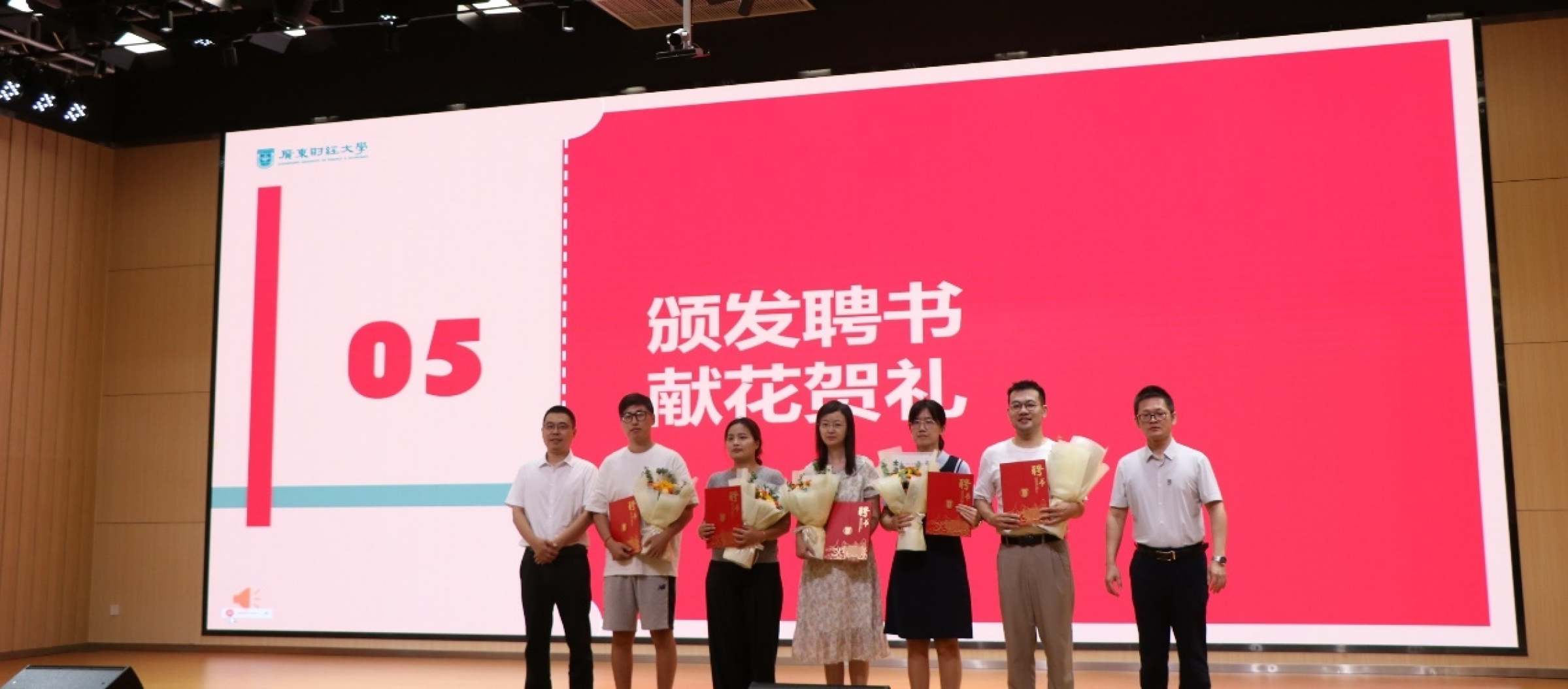 学院领导班子为校友导师和新生班主任颁发聘书,新生代表为他们献上了鲜花。此次聘请的校友导师均是来自各行各业的杰出代表,他们为新生提供生涯发展规划、专业能力提升、社会实践实习等多方面的指导和服务。