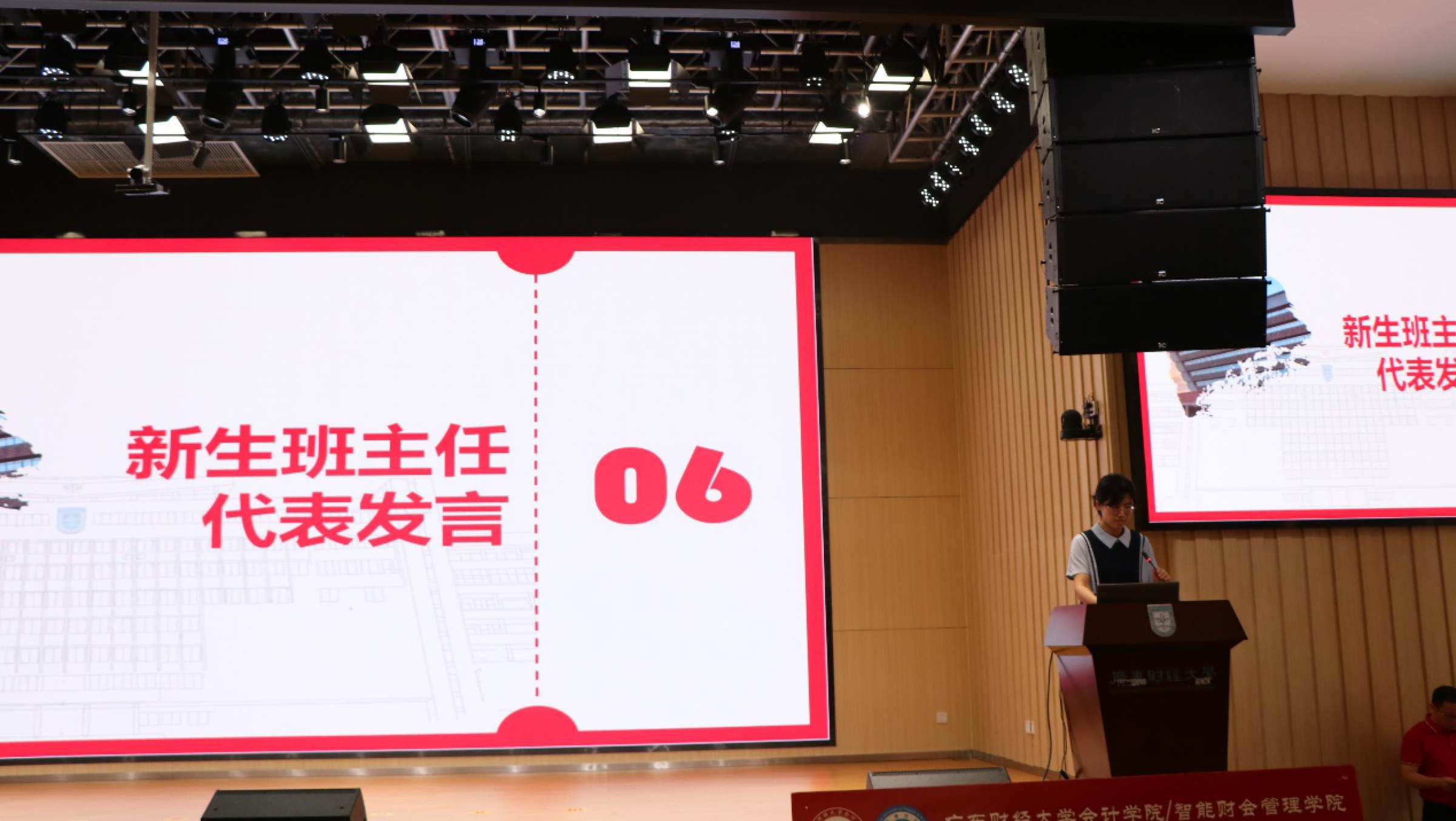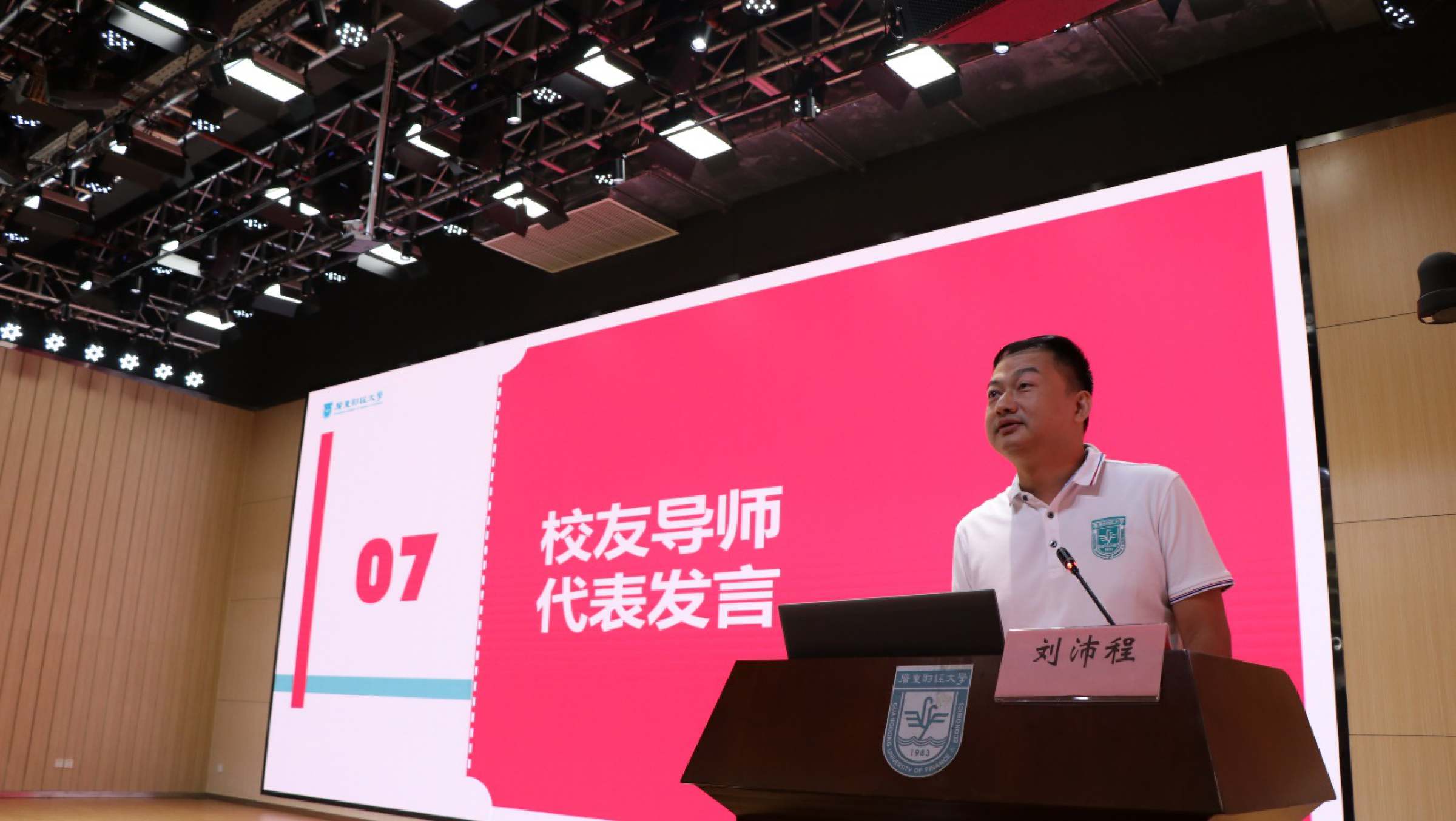 新生班主任代表郭剑花和校友导师代表刘沛程分别上台发言,分享了他们的成长故事与宝贵经验,愿为新生们的成长和发展保驾护航。刘沛程首先对学院的信任表示诚挚感谢,并深感责任在肩。他结合自身经历,提出“感恩、自信、实干”三大心得,即感恩母校与师长培育之恩,自信应对职场挑战,实干铸就辉煌业绩。他的发言激励在座师生,共筑梦想,砥砺前行。