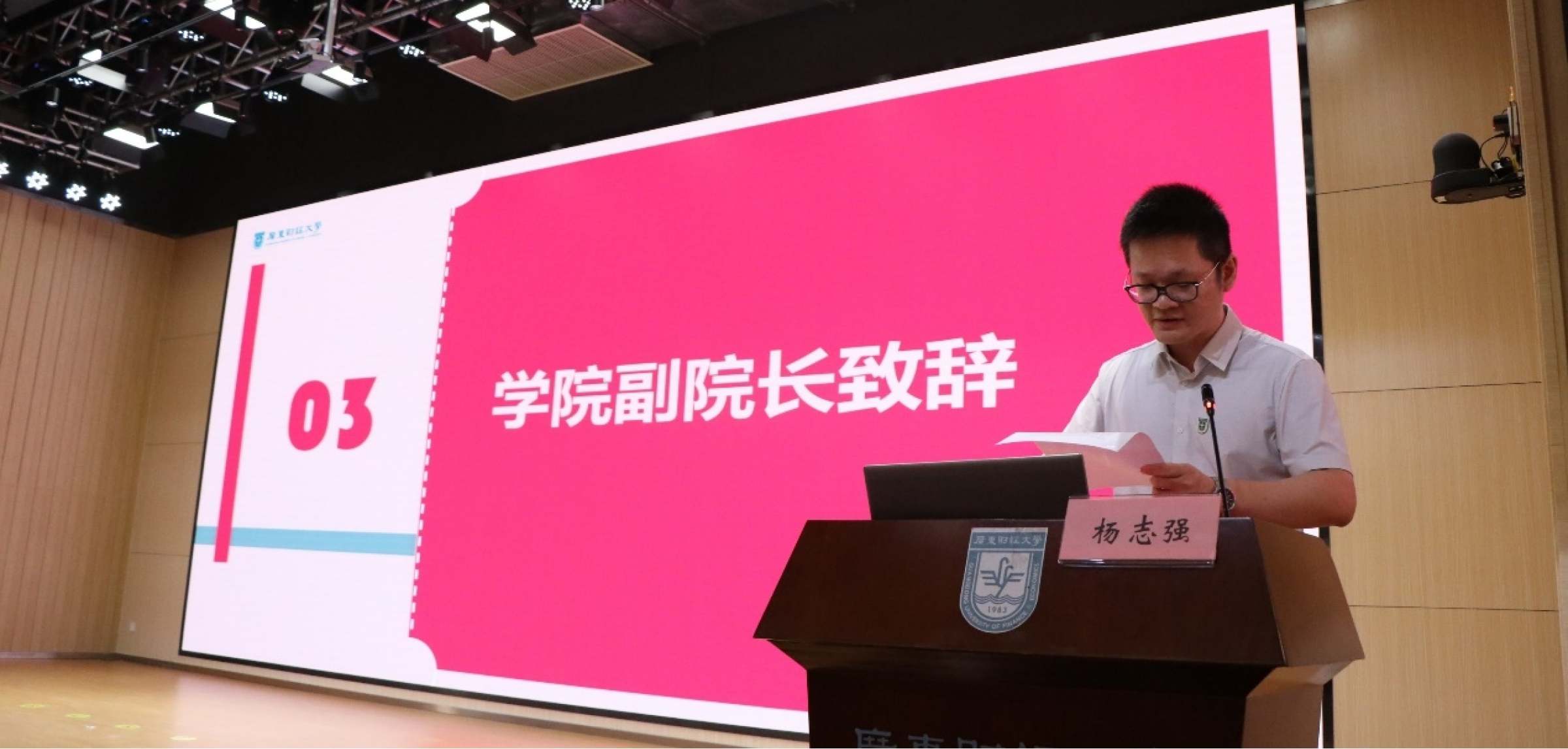 杨志强致辞,他详细介绍了学院的办学成就、发展现状和未来规划。他对新生提出“独立思考,开启智慧之门;全面发展,筑牢成长基石”的寄语,鼓励同学们勇于探索、积极实践,以全面发展的姿态迎接未来挑战。
