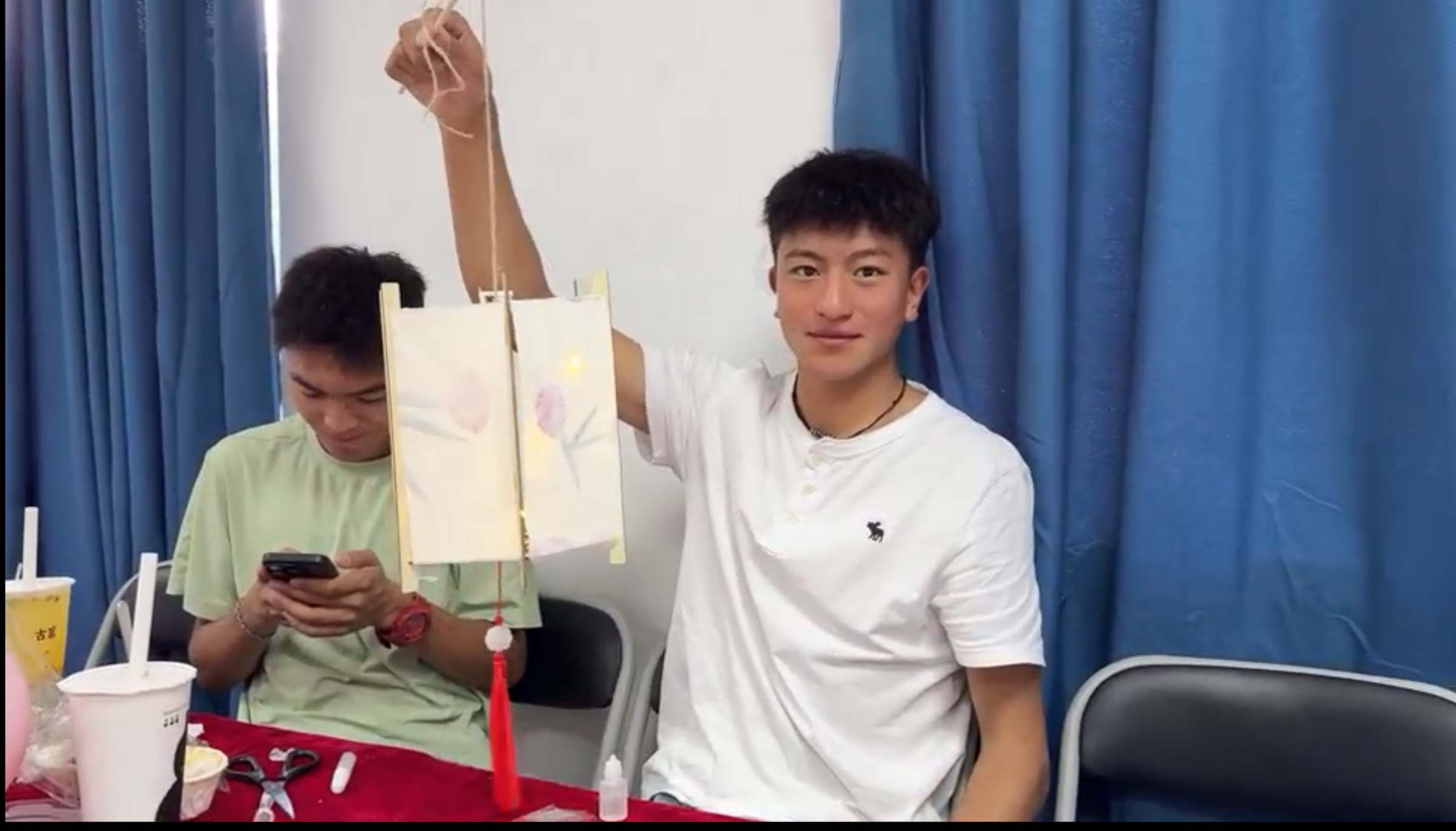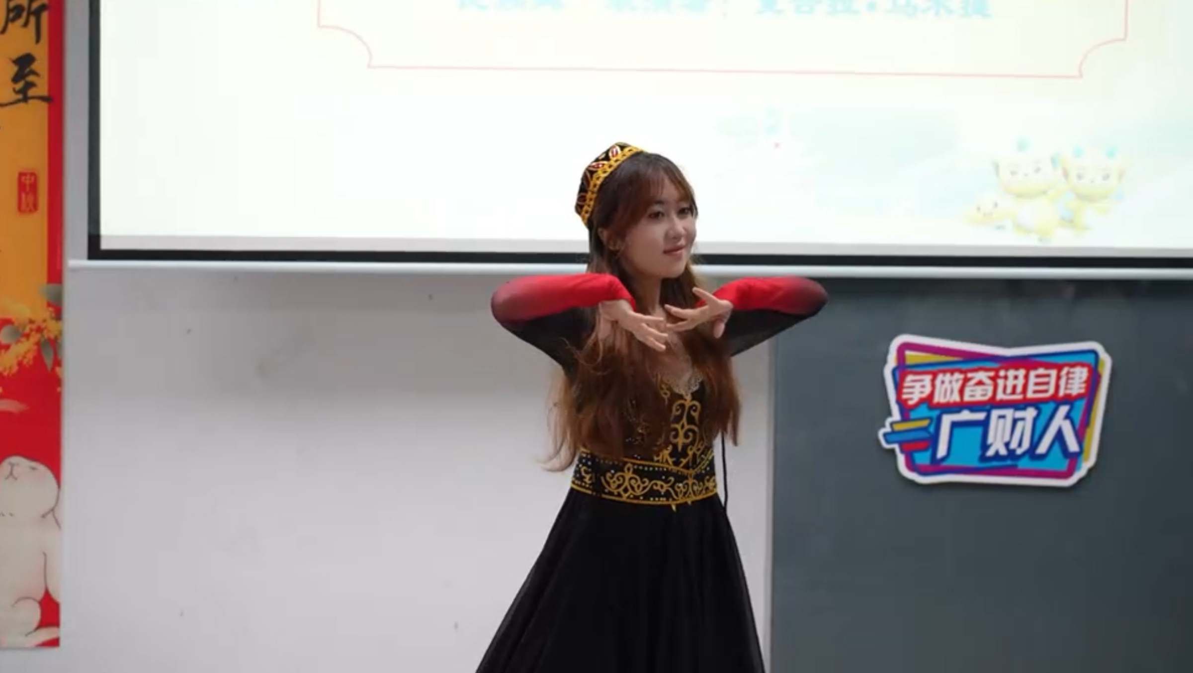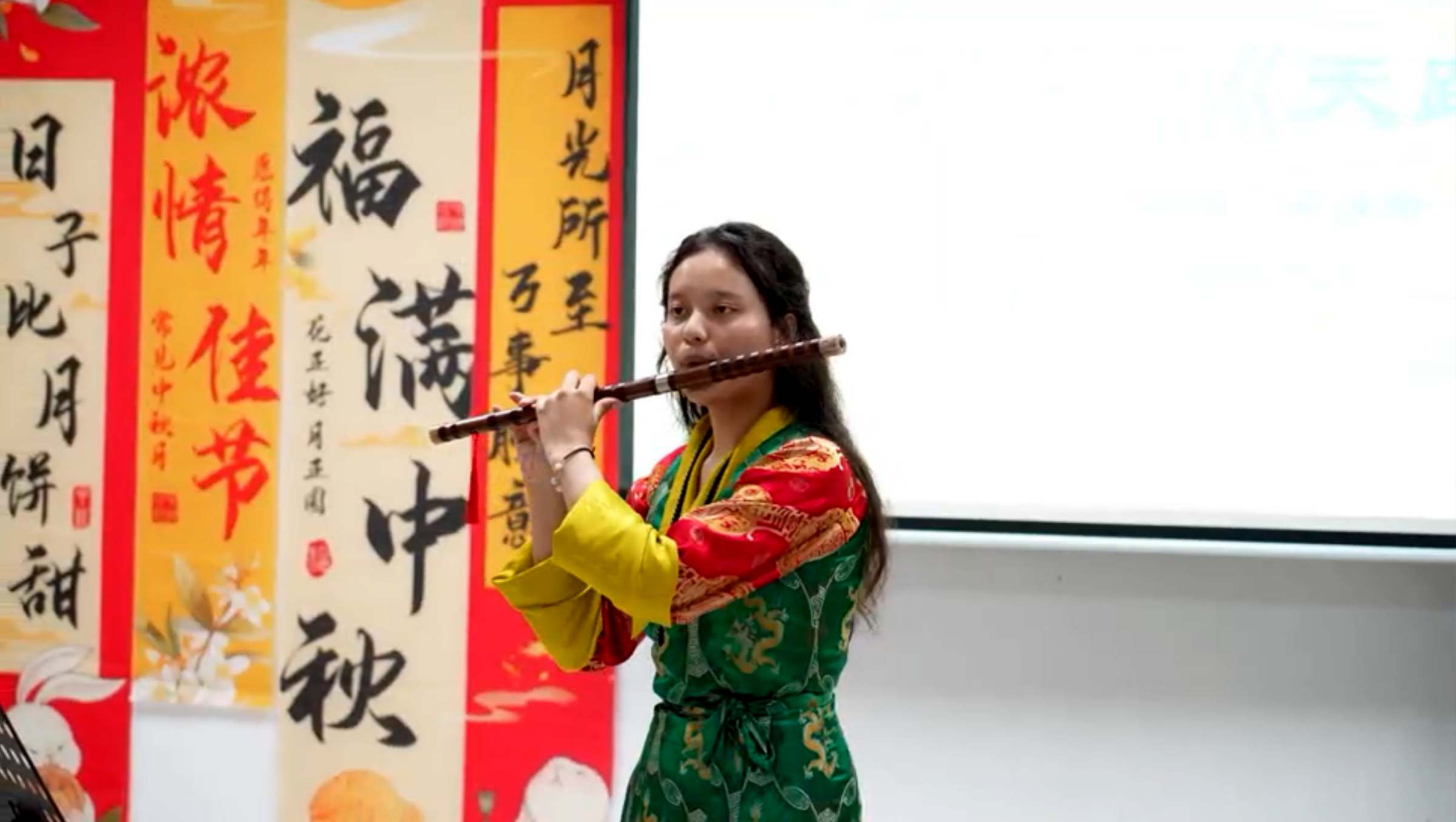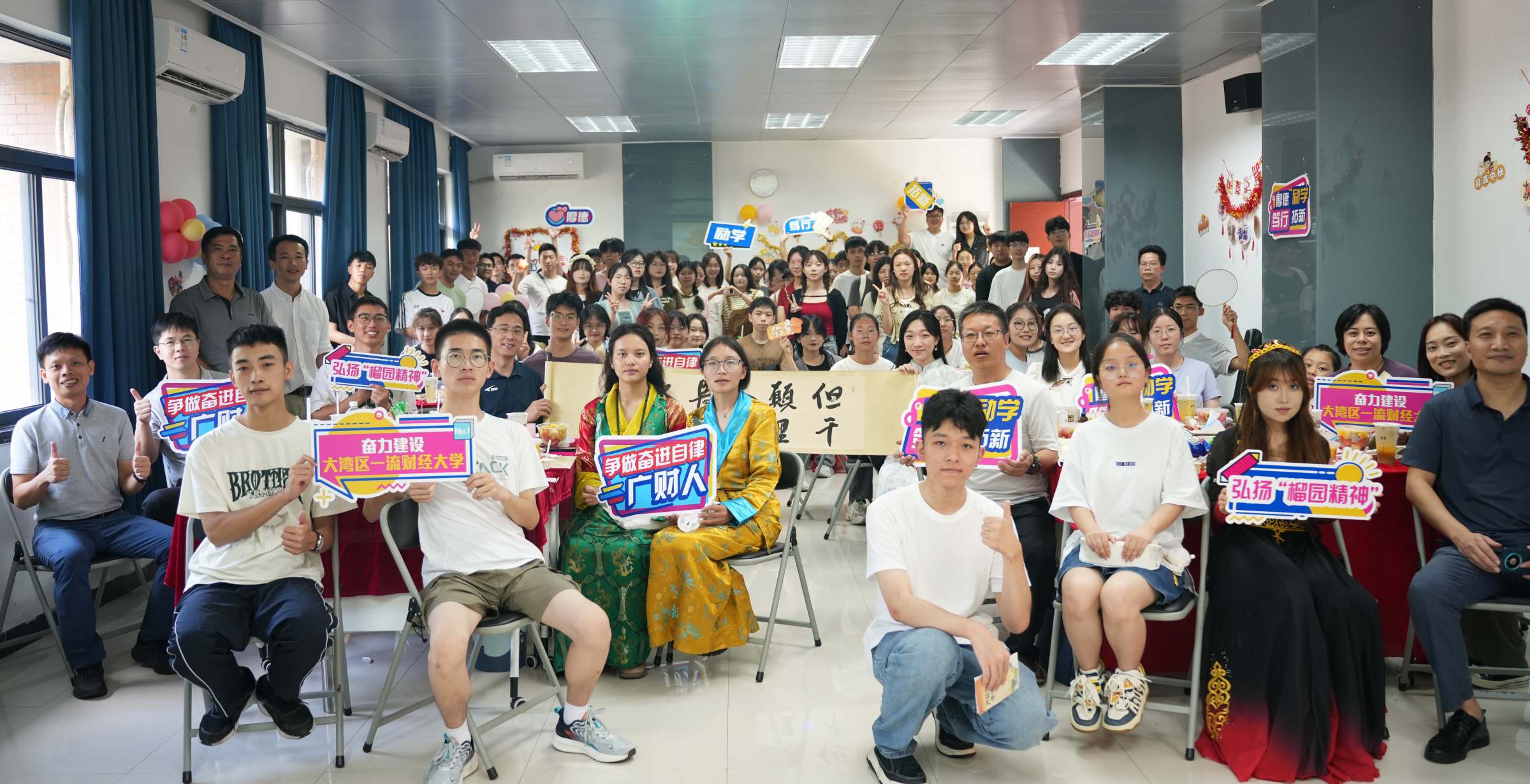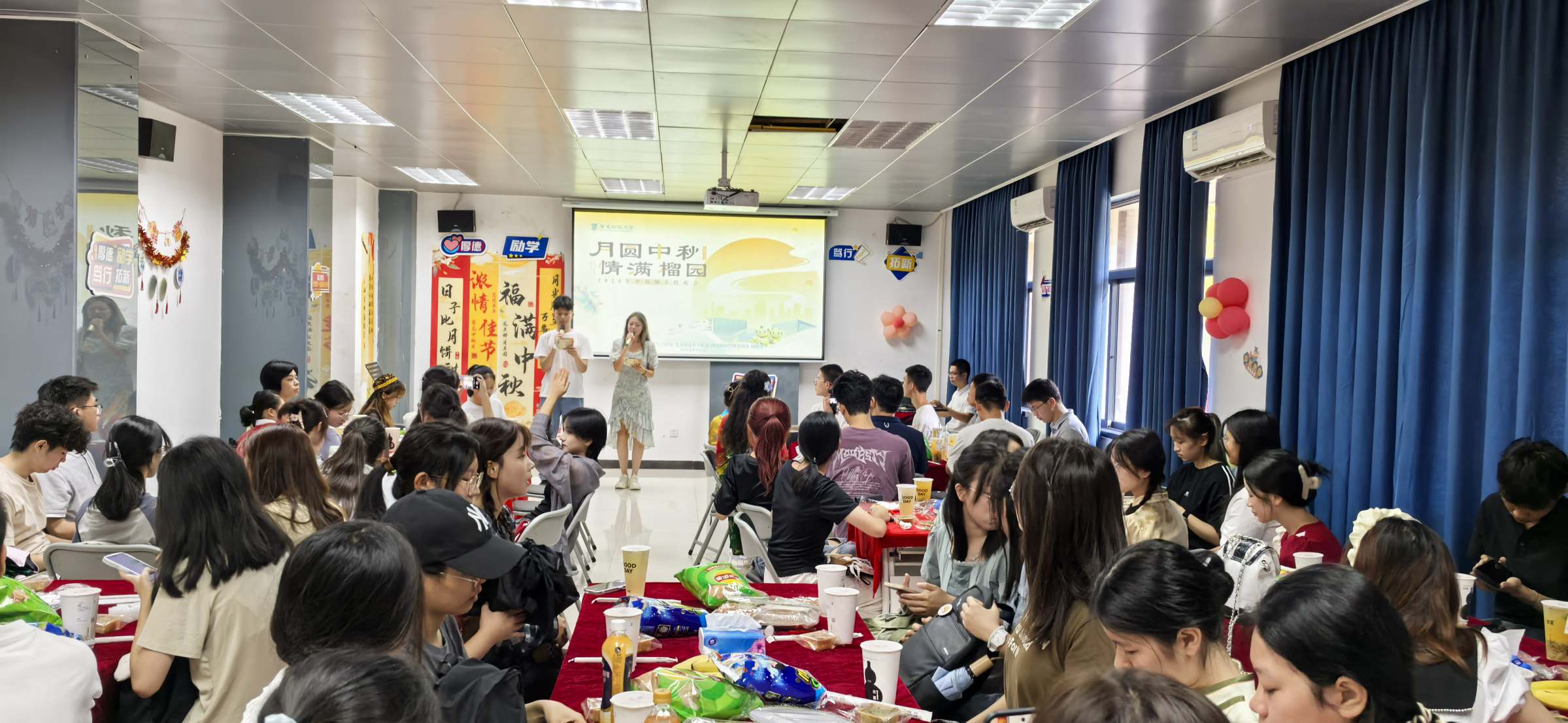 联欢会上,师生们一起尝月饼、做灯笼、画团扇、赏节目,欢声笑语间,共叙佳话。同学们踊跃交流,介绍了自己家乡的中秋习俗,分享了作为广财人的感受,畅谈了对大学生活的期许,呈现了古筝表演、吉他弹唱、民族舞蹈、歌曲串烧和书法展示等精彩节目,为师生送上节日祝福,并为9月出生的留校新生庆祝生日。