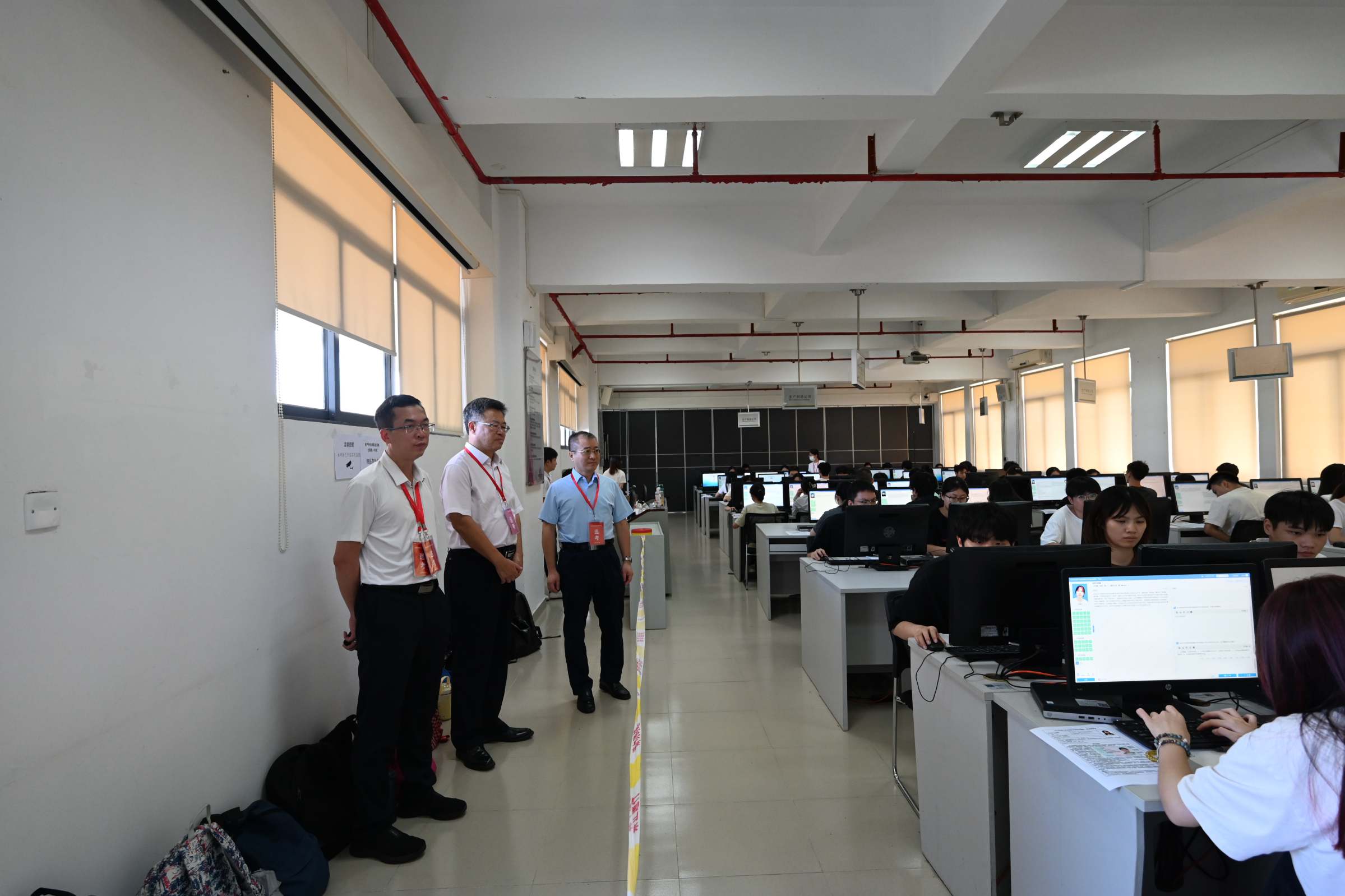 广东省财政厅二级巡视员、省资产评估协会会长戴穗生等巡考组一行通过在线视频监控查看了考务工作情况,并进行实地考场巡查。经管中心主任姚维保介绍了考务管理、考生服务、防止作弊等方面的情况。巡考组对我校此次考务组织工作给予了高度评价。