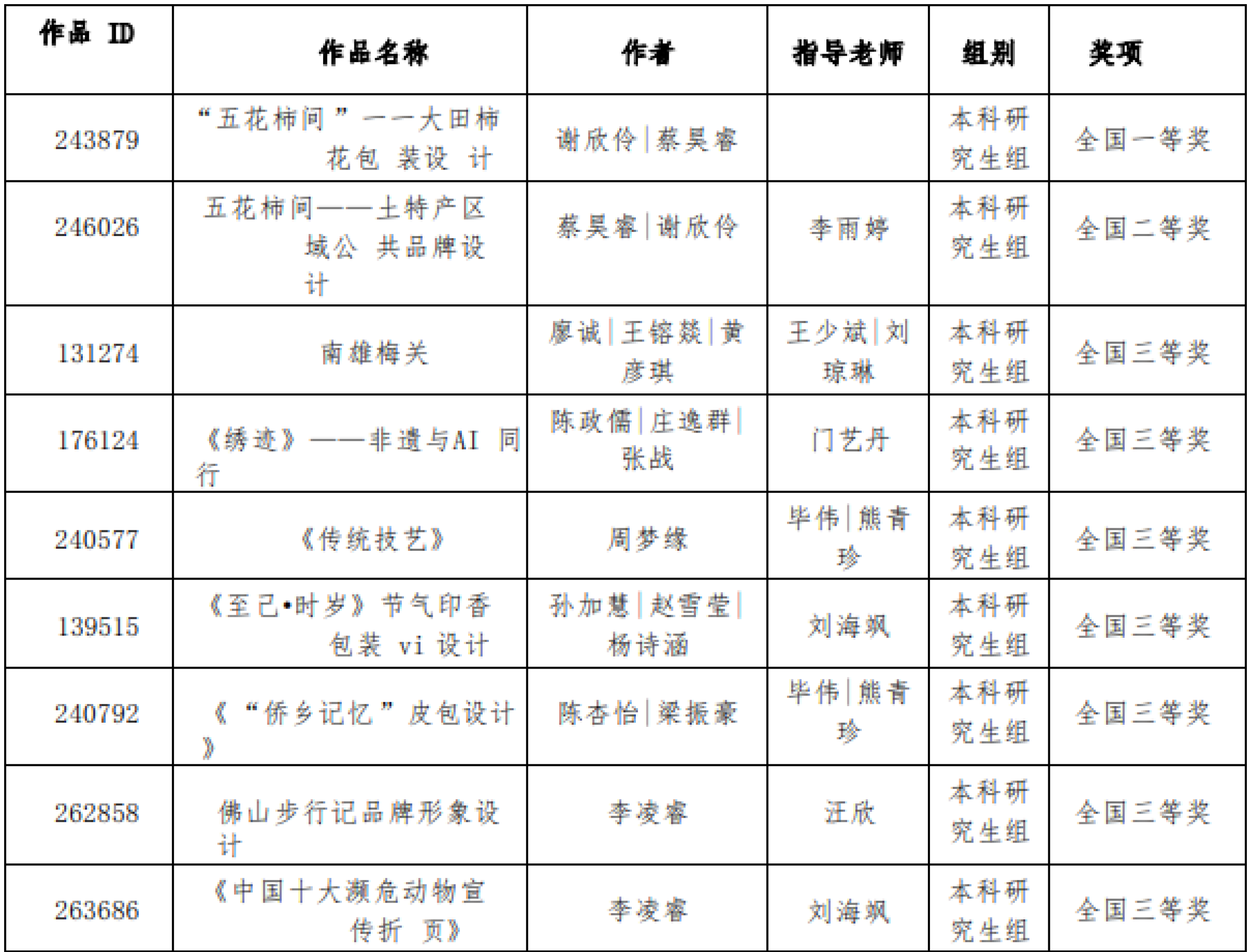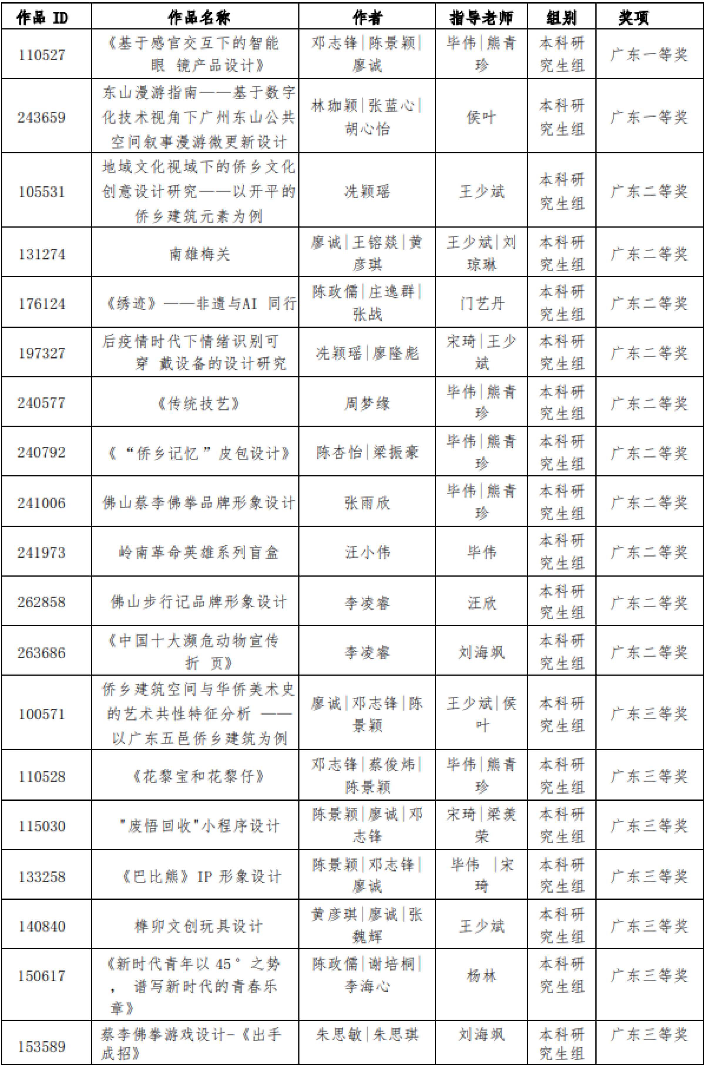 近日,由中育国际交流协会、中国高等教育学会联合主办的2024年第八届“米兰设计周——中国高校设计学科师生优秀作品展”国赛评审落下帷幕。我校艺术与设计学院积极组织师生参赛,最终在本年度比赛中荣获国家级奖项37项,其中国赛(包括命题赛项和非命题赛场)一等奖 1 项、二等奖 1 项、三等奖 7 项;非命题赛场广东分赛区一等奖 2 项、二等奖 10 项、三等奖 15 项。