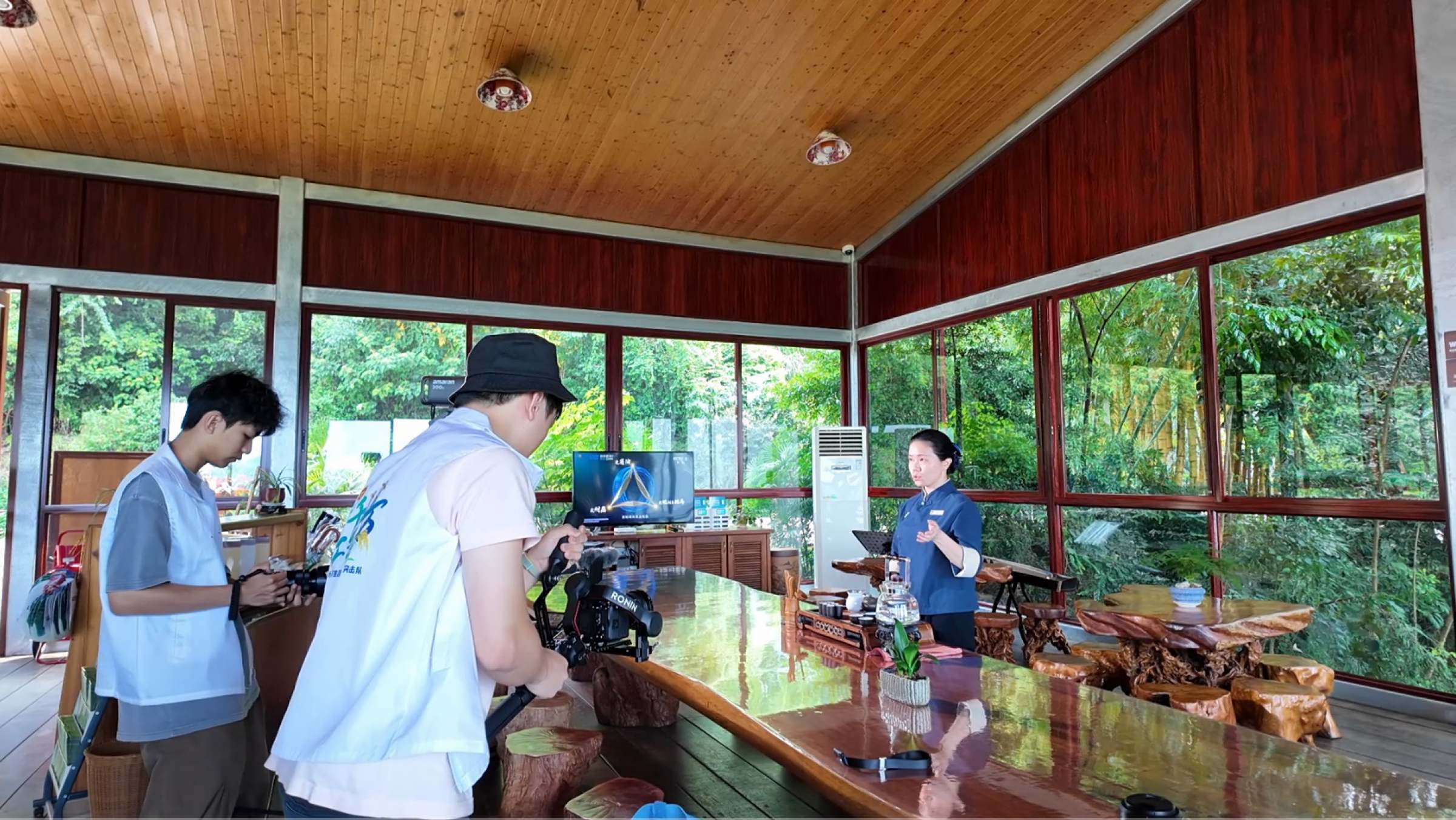 实践团用镜头记录下云雾缭绕的茶园风光,展现茶叶背后优质的种植环境,制作高质量的宣传片,助力打响阴那山茶品牌。