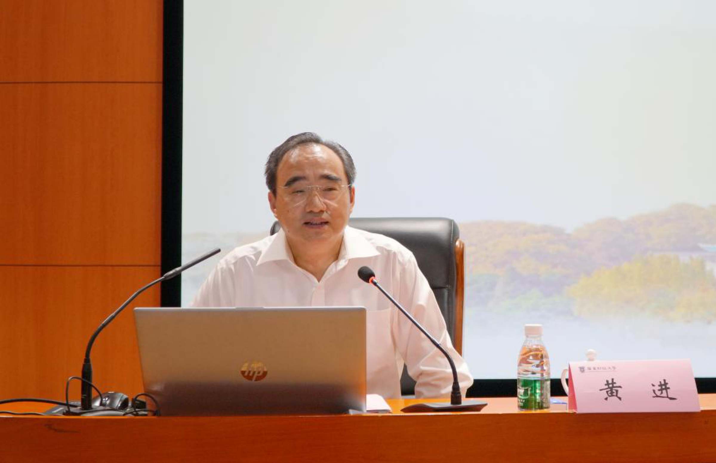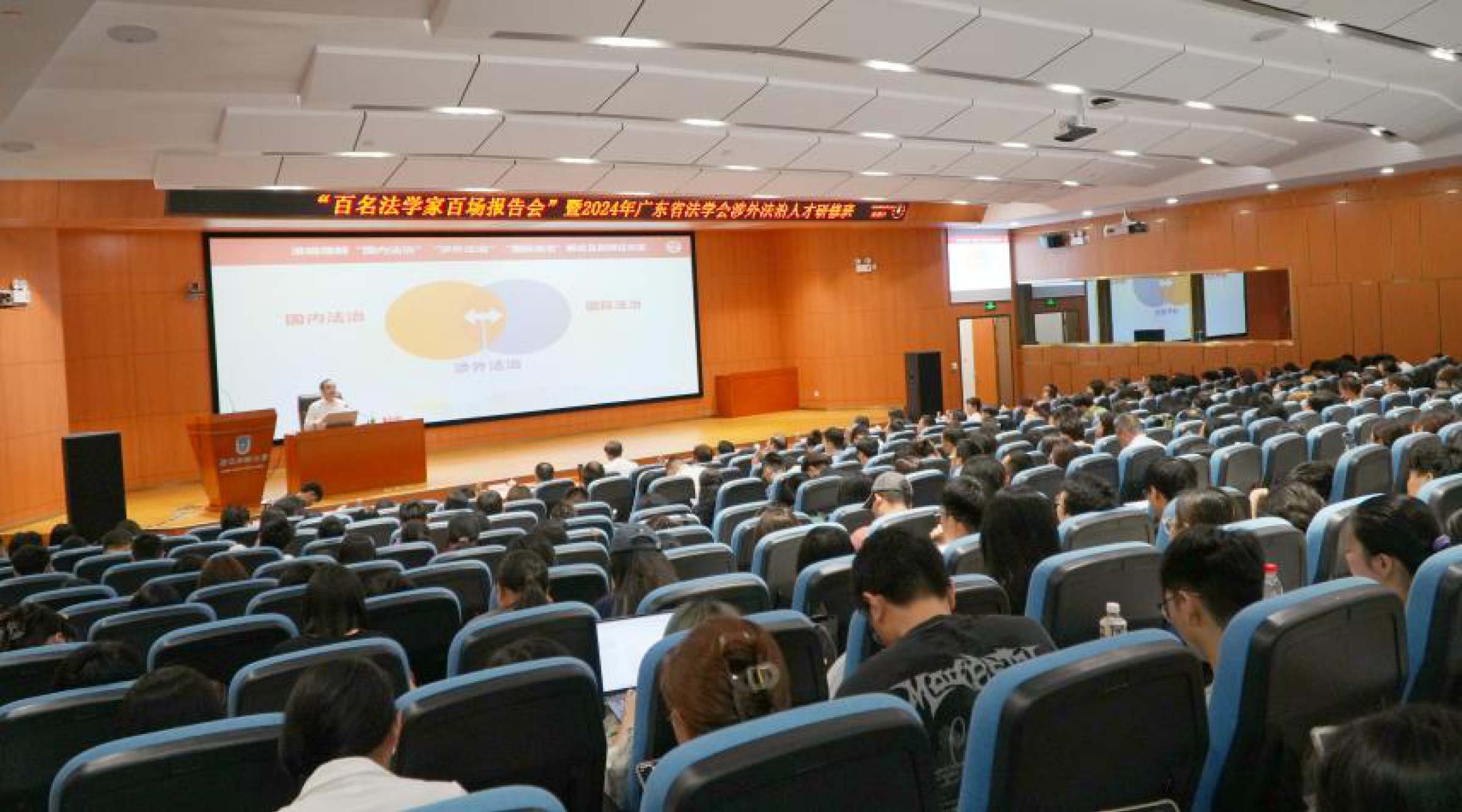 为深入学习宣传贯彻党的二十届三中全会精神和习近平总书记关于加强涉外法治建设的重要讲话精神,9月22日上午,2024年“百名法学家百场报告会”广州地区高校暨广东省法学会涉外法治人才研修班专场在我校成功举办。中国法学会副会长、中国国际法学会会长、中国政法大学原校长黄进应邀作主题为“加快推进我国涉外法治体系和能力建设的时代逻辑和实现路径”的辅导报告,广东省委政法委副书记(分管日常工作),省法学会党组书记、常务副会长叶向荣主持报告会,我校党委书记郑贤操致辞。省教育厅党组成员、副厅长邵允振,省法学会党组成员、专职副会长兼秘书长金艳,广东省涉外法治人才专题研修班(南亚东南亚方向)全体学员,我校师生共400多人参加报告会。
