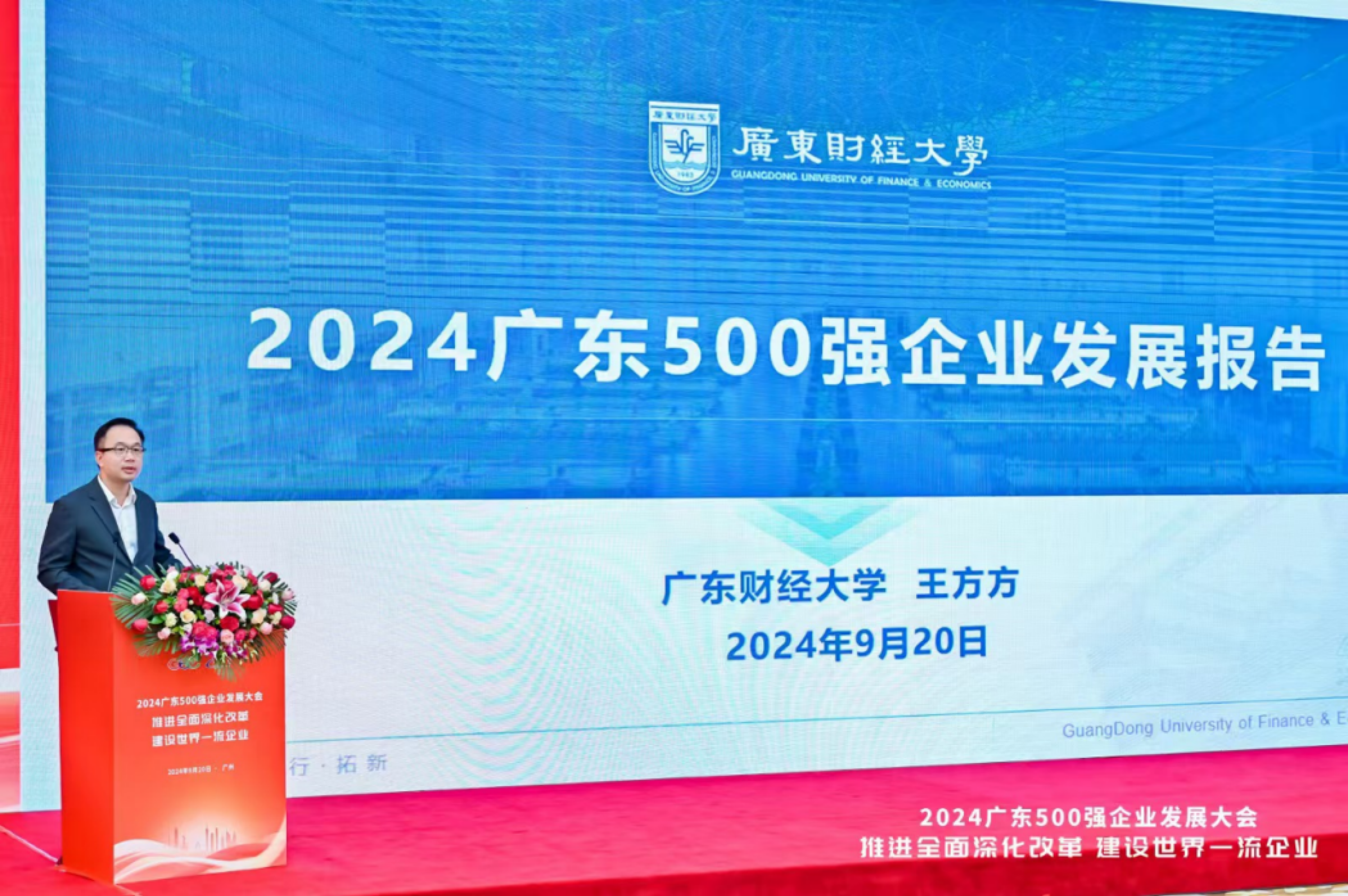 2024年9月20日,广东省企业联合会、广东省企业家协会主办的“2024广东500强企业发展大会”在广东珠岛宾馆隆重举行。省政协党组成员、副主席袁宝成,省国资委二级巡视员刘文彦,省企业联合会、企业家协会会长,广东恒健投资控股有限公司党委书记、董事长唐军、省社科院企业研究所所长李源以及我校代表、广东500强企业代表、商协会负责人、新闻媒体代表等400余人出席大会。我校数字经济学院院长王方方、副院长尹华、主任阮传扬以及中观经济学研究生应邀出席大会。