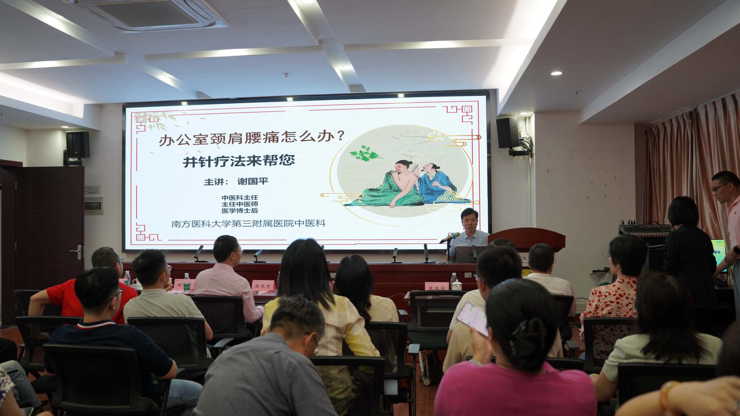 本次活动设置“健康大讲堂”“健康活力操”“健康体验馆”三个环节。在“健康大讲堂”环节,姜丽从五个方面讲解颈肩保健知识,分别是引起疼痛的疾病类别、区分颈痛和肩痛的方法、判断病情的依据、评估检查颈肩痛的方式和治疗康复的方法;谢国平从介绍其独创的“并针疗法”入手,讲解了颈肩腰疼痛的典型症状、致病原因和防治手段;尹刚辉从生物进化的角度着手,讲解了腰痛的形成原因、病情诊断依据和预防治疗方法。在“健康活力操”环节,教职工们跟着专家团队的现场示范,学习演练规范动作,亲身体验“活力操”的功效。在“健康体验馆”环节,教职工们纷纷向专家们咨询病情、请教保健方法,体验针灸按摩等理疗项目。老师们表示“既学到了健康知识,又学会了保健技能,还体验了理疗服务,这样的活动真好!”