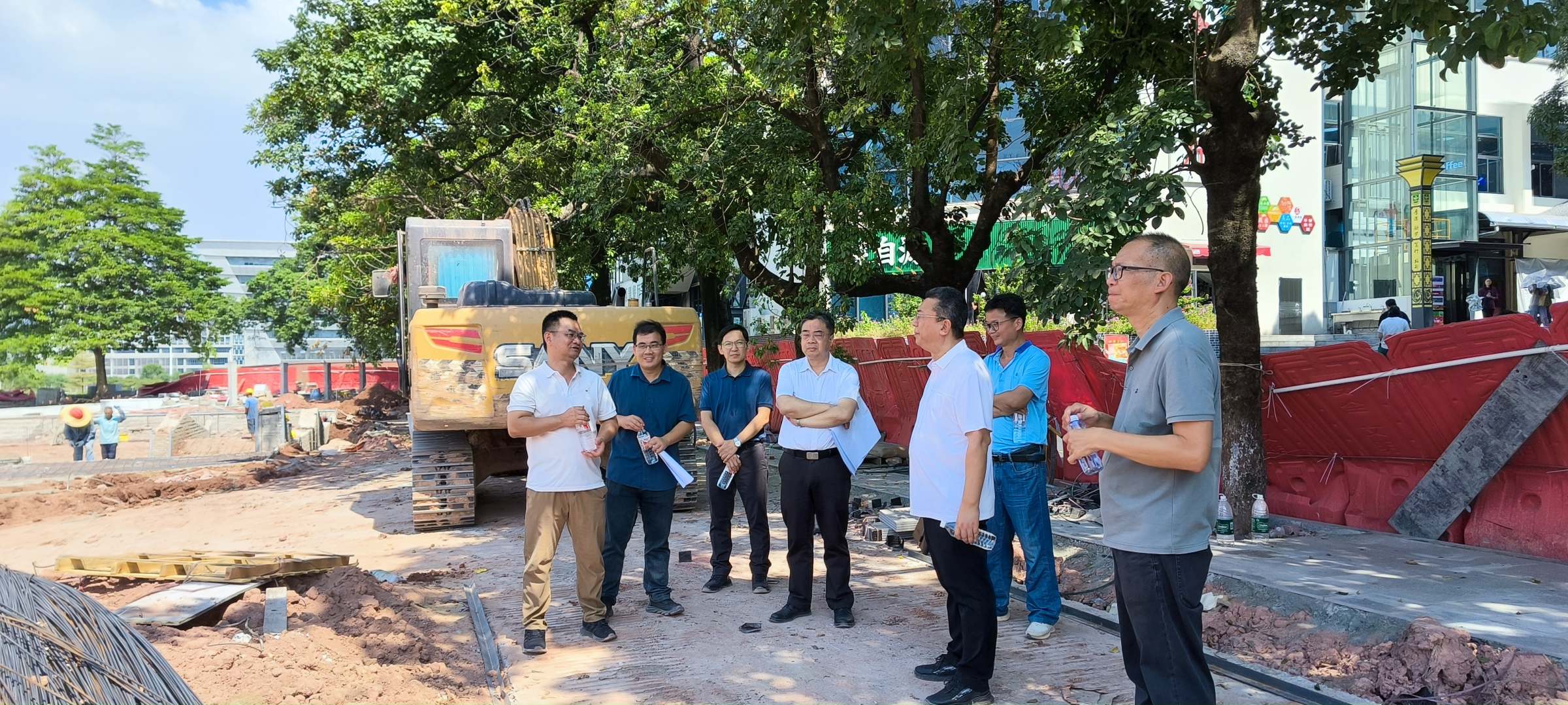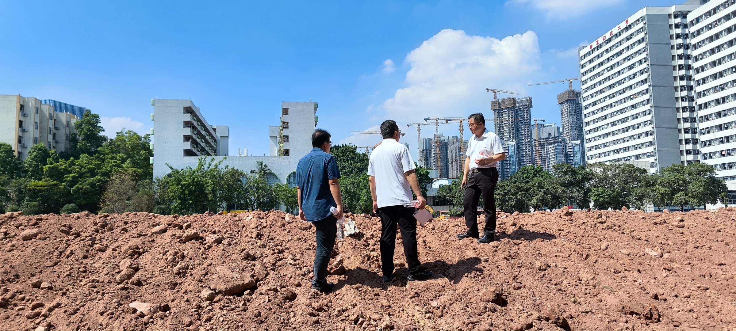 10月15日上午,校党委书记郑贤操深入广州校区体育公园项目施工现场,检查指导工程建设工作。基建处处长冯东海、副处长梁智峰、后勤处处长胡卫标及相关人员陪同参加了本次检查。