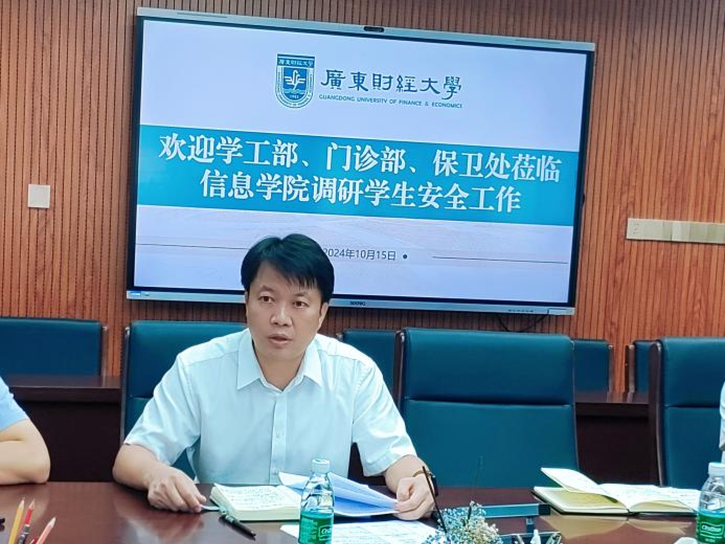 10月15日上午,学工部部长苏明华、保卫处副处长张锡周、门诊部心理中心杨翀老师以及学工部学生管理科副科长李林一行,深入信息学院调研与指导学生安全工作。信息学院党委书记邱启彬、党委副书记廖凌杰以及学院辅导员参加了调研。