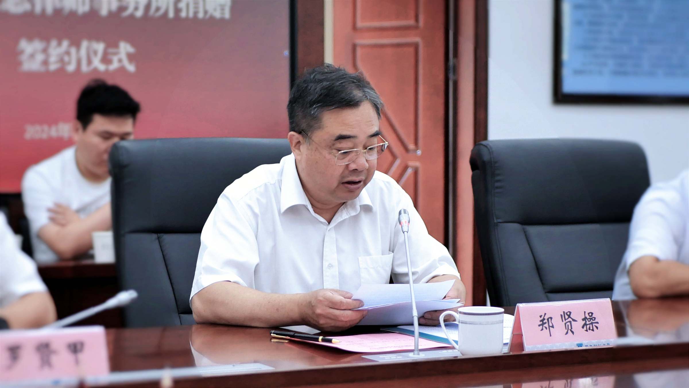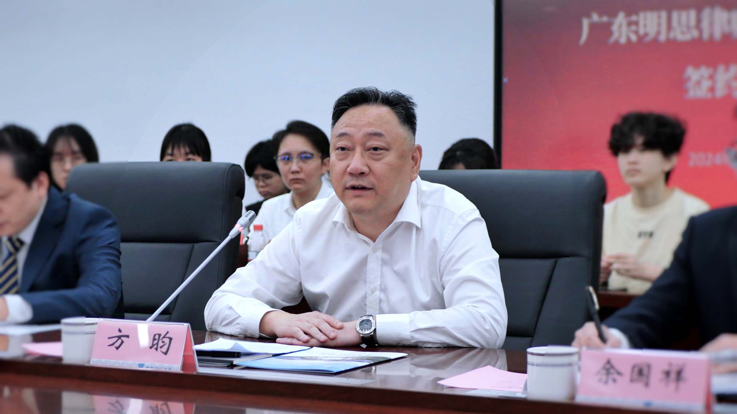 郑贤操代表学校向方昀表示感谢。他指出,广东明思律师事务所是司法部评选出的首批“全国优秀律师事务所”,长期以来积极参与捐资助学、扶贫救灾、法律援助等公益项目,得到社会各界的一致好评和肯定。我校法学学科作为省级重点学科,在全国“软科”排名的前30%以内,学院现有“国家卓越法律人才教育培养基地”“国家高等学校特色专业”“国家级一流本科专业建设点”等4个国家级及9个省部级平台,在广东省法学行业领域重要地位和享有较高美誉度。此次捐赠对于法学院建设以及法治人才的培养具有重大意义。他强调要做到专款专用,把这份捐赠用于加强法学学科建设、人才培养、科学研究等方面,进一步提升学科建设水平,增强学科核心竞争力,不断提升学生的法律素养和综合实践能力。同时,学校也将深化与明思律所的合作,共同探索校企合作新模式,为大湾区输送更多高素质法治人才,为全面推进强国建设、民族复兴伟业作出新的更大贡献。