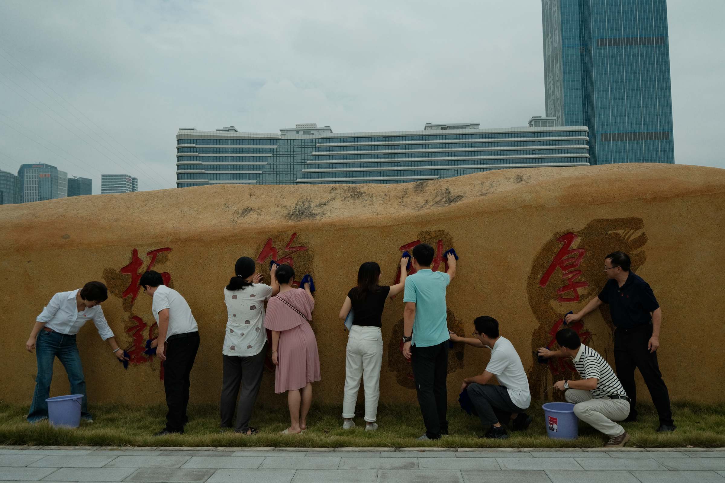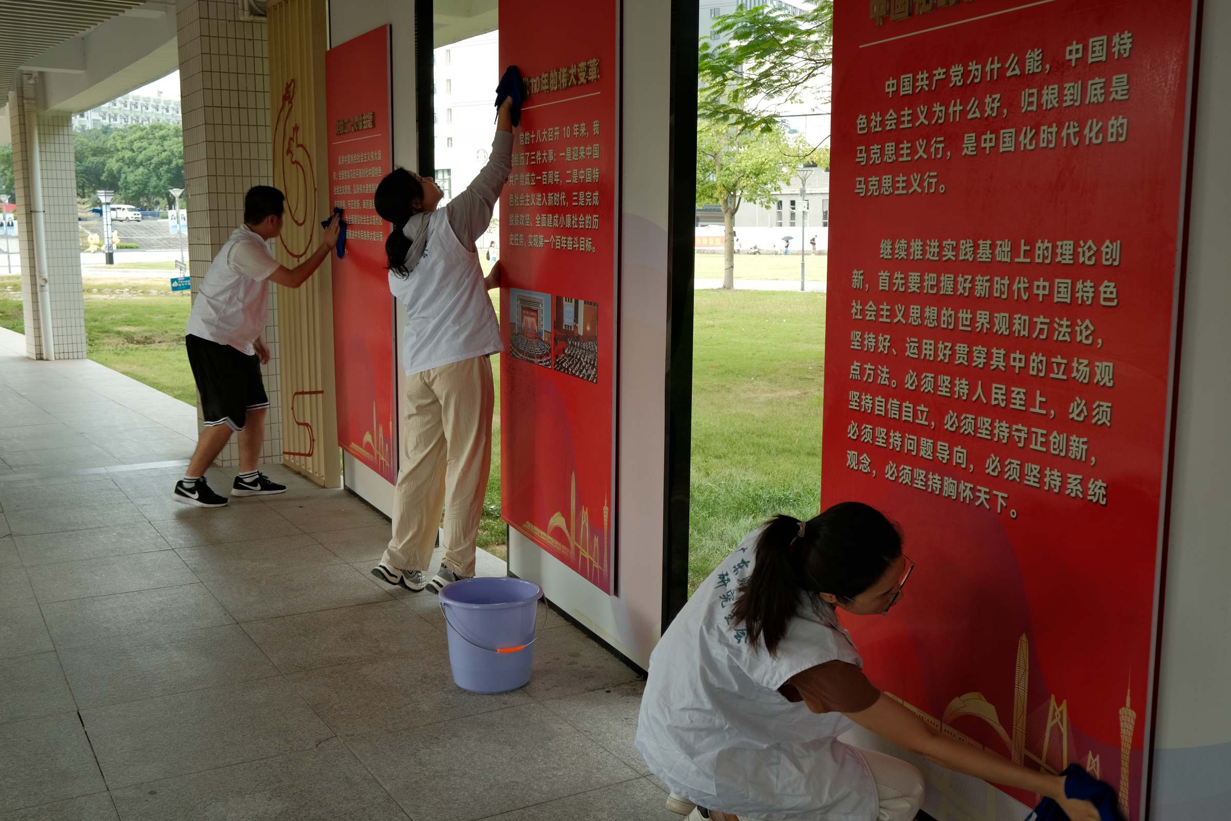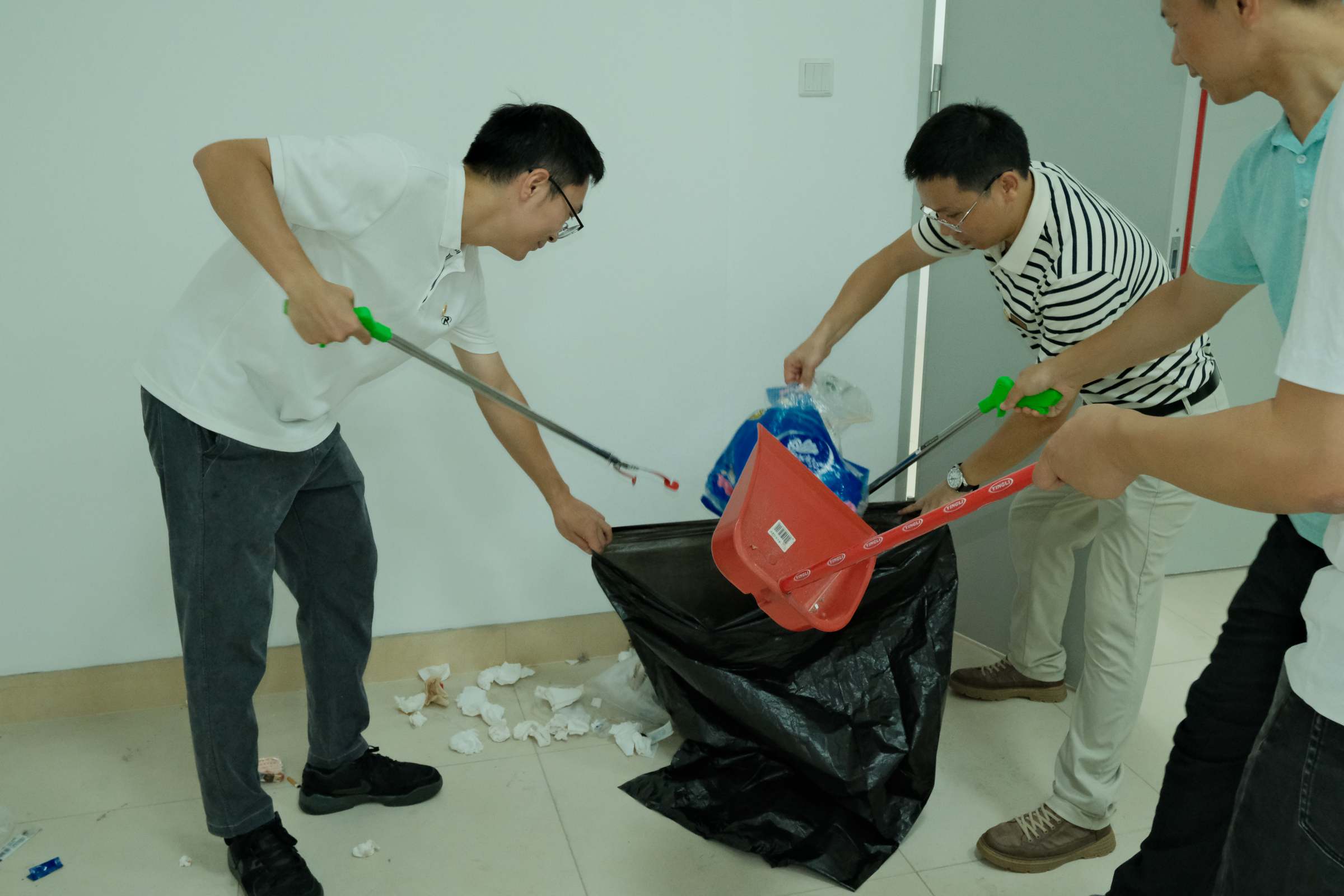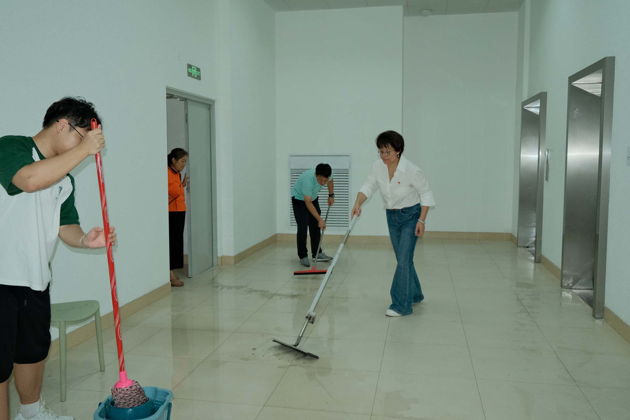 活动现场,研究生院教职工和志愿者们热情高涨,迅速投入到校园环境整治工作中。师生们认真清扫北门口草坪,擦拭“校名石”,重温校训,让代表学校标识的校名石焕然一新;仔细擦拭思政长廊,为师生营造良好的学习氛围;用心清扫校道,还校园道路一片洁净;精心清洁榴园瀑布,使瀑布景观更加亮丽。研究生院全体教职工还对33栋揽月楼和凌云楼电梯间、楼梯间等卫生死角开展专项垃圾清理。