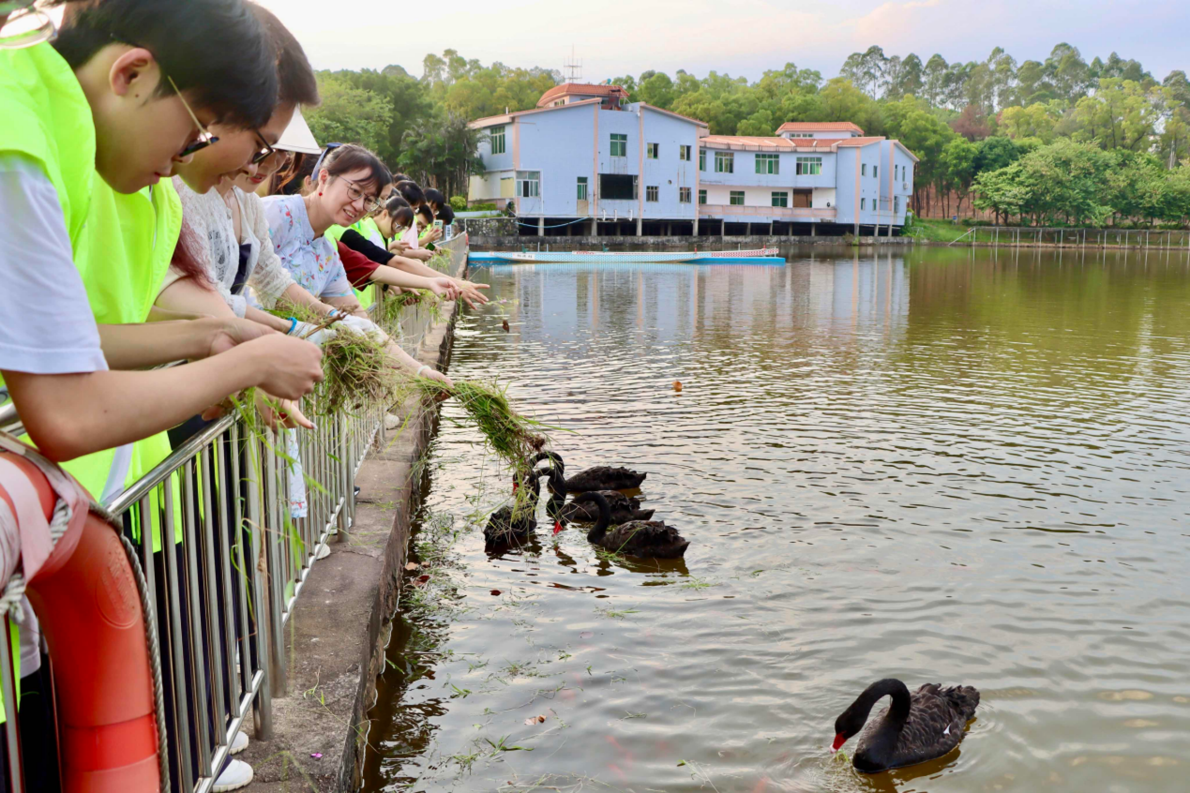 “让绿色的希望从校园萌芽!”是师生参加护绿活动的坚定信念。在老师们的指导下,统数志愿者们提前准备好护绿工具,分工合作,井井有条。他们有的手持铁铲,帮小树苗松土;有的拔去杂草,撒下肥料,助力树苗成长;有的为树木浇水,滋润树木心灵。最后,师生们还将亲手拔的草拿去喂沁湖中的黑天鹅和鱼。