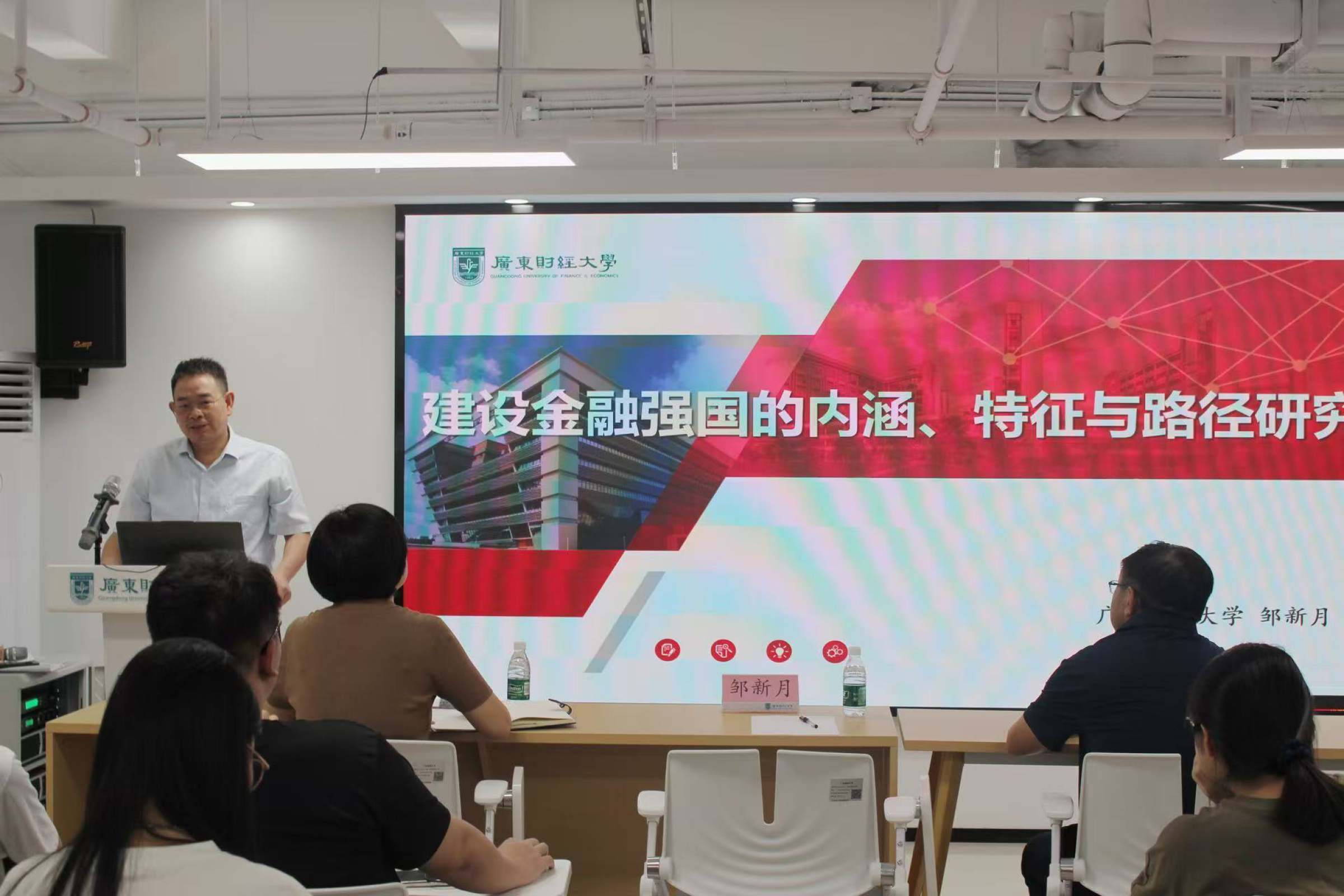 10月22日下午,副校长邹新月在广州校区33栋“一站式”研究生社区为金融学院2024级研究生新生讲授思政课,主题为《建设金融强国的内涵、特征与路径研究》。金融学院近80名师生到场聆听。