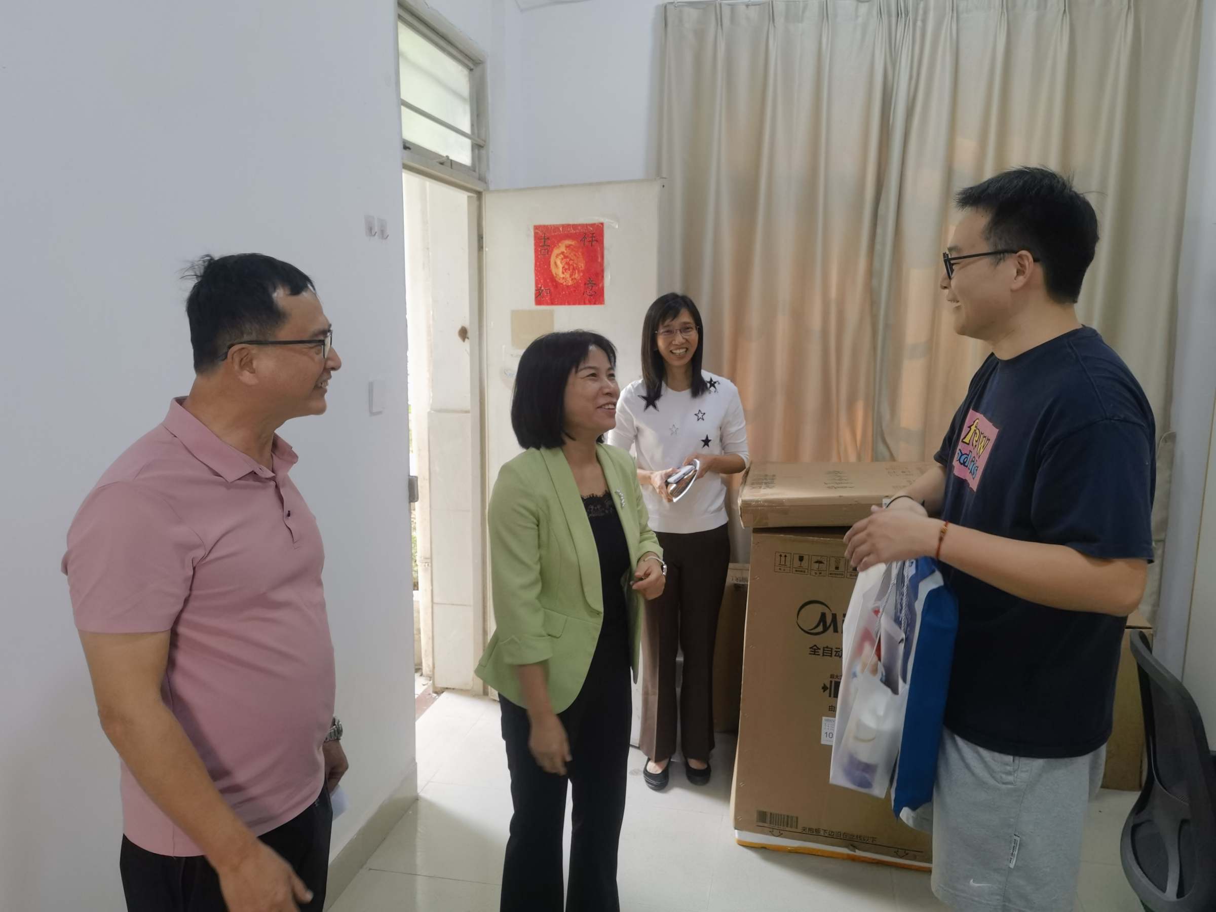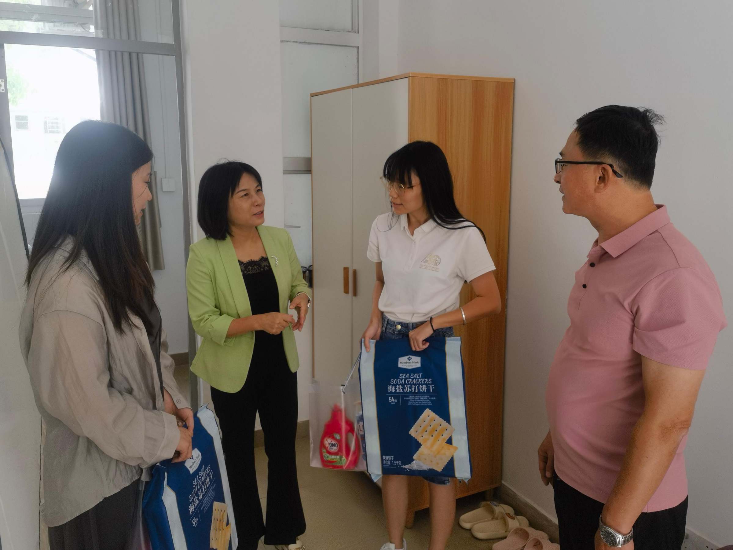 陈红丽、苏明华来到辅导员宿舍,与辅导员们逐一进行了深入交流,详细了解他们的工作和生活情况,倾听他们的意见和建议。陈红丽表示,辅导员在学校拥有学院、学工、工会三个家,希望辅导员们在繁忙的工作之余,注意身体健康,保持良好状态。苏明华表示,学工部将继续为辅导员们提供全方位的支持,确保他们能够在一个积极和谐的环境中安心工作、快乐生活。