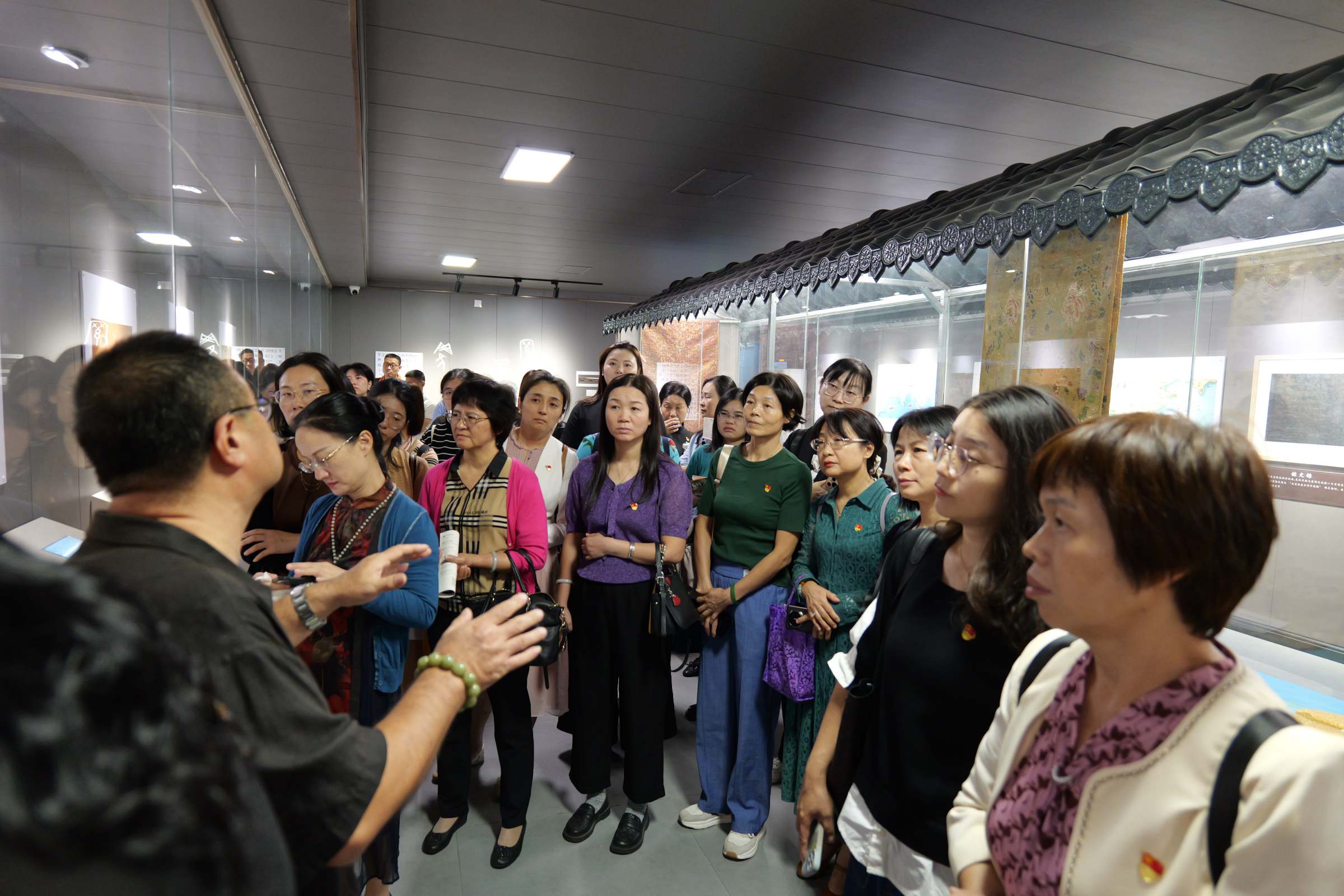10月31日,由广东省教科文卫工会主办、我校工会承办的女职委品质生活讲堂系列活动之“匠心传承·巾帼风采”非遗文化体验活动在广州南沙举行。广东省教科文卫工会主席谢岩梅、二级调研员陈平州、副主席胡建钢、三级调研员黄璇娟,我校工会常务副主席陈红丽、各直属基层工会女职委委员近60人参加活动。
