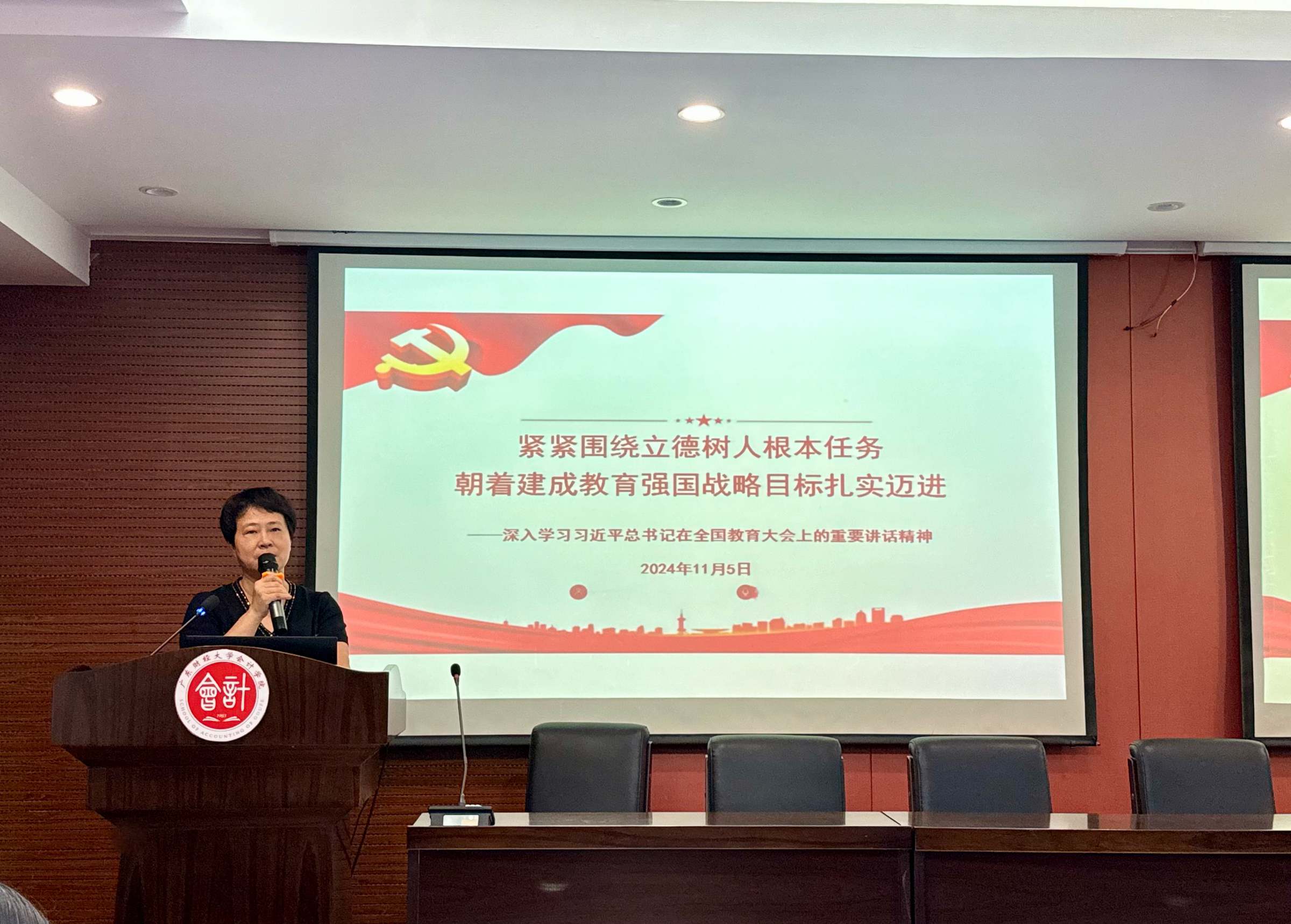 11月5日下午,会计学院党委在广州校区立德楼543会议室开展习近平总书记在全国教育大会上的重要讲话精神专题学习。学院党委书记彭翠峰以“紧紧围绕立德树人根本任务,朝着建成教育强国战略目标扎实迈进”为题作主讲,学院全体教职工参加。