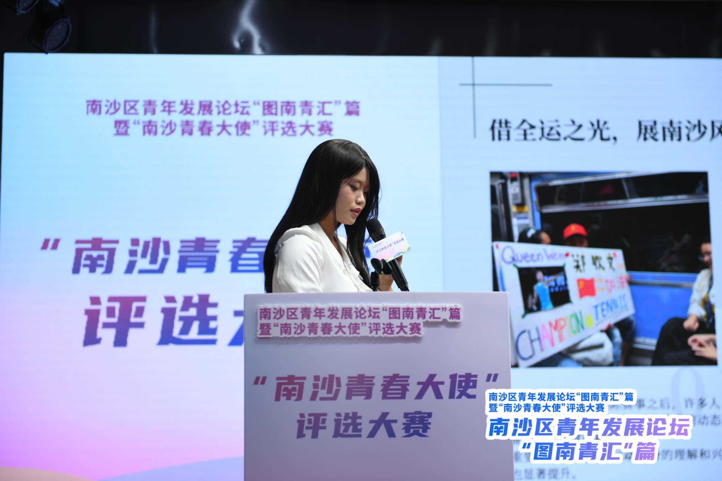“沁湖宣讲团”成员林璇和钟天皓参加“南沙青春大使”评选大赛并成功入围决赛。林璇以“以赛事为媒,展南沙风采”为题,展示了南沙山、田、江海交相辉映的自然风貌和现代化体育设施的独特魅力,希望以全运会为契机,借助赛事平台与短视频社交平台推出南沙特色文化衍生品、传播赛事与城市故事,凸显南沙作为宜居城区、活力都市的潜力与风采。钟天皓则以“青春之我,推介南沙”为题,从赛事热度和南沙文化数字化为切入点,希望利用AR、VR技术将南沙文化数字化,设计特色文创产品,并建议组织策划高校百公里南沙站活动,以提升南沙在高校中的知名度。经过激烈的角逐,钟天皓获得“南沙青春大使”荣誉称号,林璇获得比赛优秀奖。
