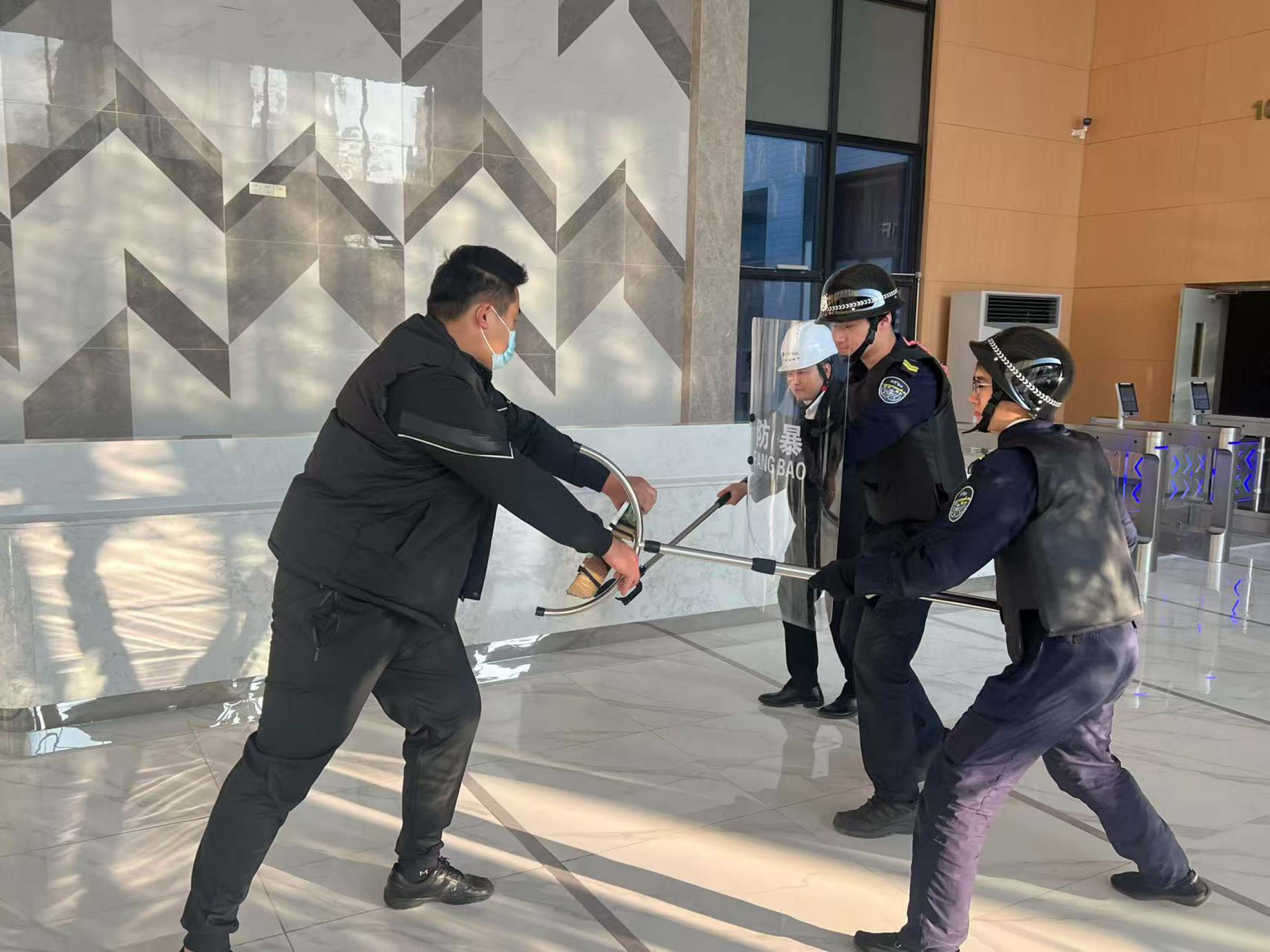 为进一步加强大学科技园产教大楼安保人员处理突发事件的应对意识,提高面对恐怖事件的有效处理能力,确保园区内人身安全和设备安全。12月13日上午,广东财大资产经营有限公司携手保利物业联合组织开展了反恐防暴专项应急演练。