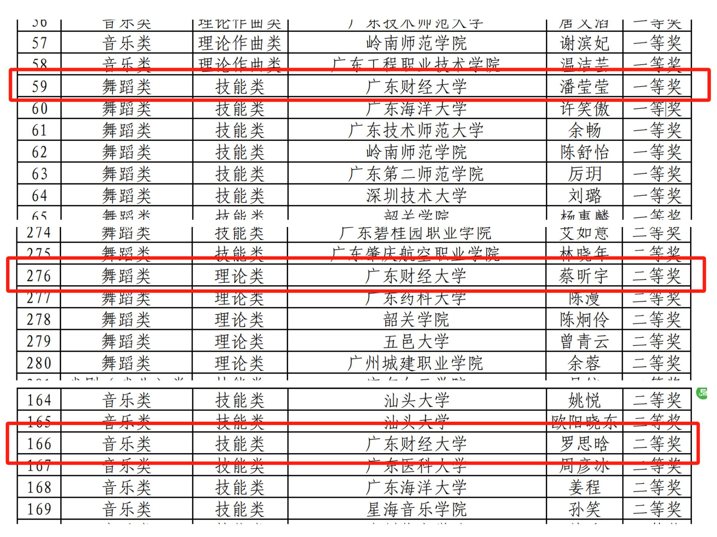 近日,我校艺术与设计学院三位教师在广东省教育厅主办的广东省第二届高校美育教师基本功比赛决赛中斩获佳绩。其中,潘莹莹老师获得舞蹈类技能组一等奖,蔡昕宇老师获得舞蹈类理论组二等奖,罗思晗老师获得音乐类技能组二等奖。