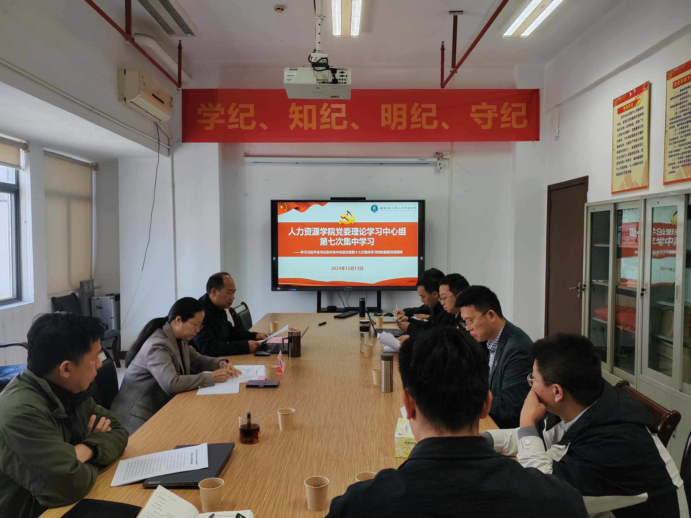 12月13日下午,人力资源学院党委理论学习中心组在广州校区立德楼801会议室召开专题学习会,深入学习习近平总书记在中共中央政治局第十七次集体学习时的重要讲话精神。学校党建工作督导组第三小组督导员谢琦同志到会指导,学院领导班子成员、党委委员、组织员参会。会议由学院党委书记黄东阳主持。