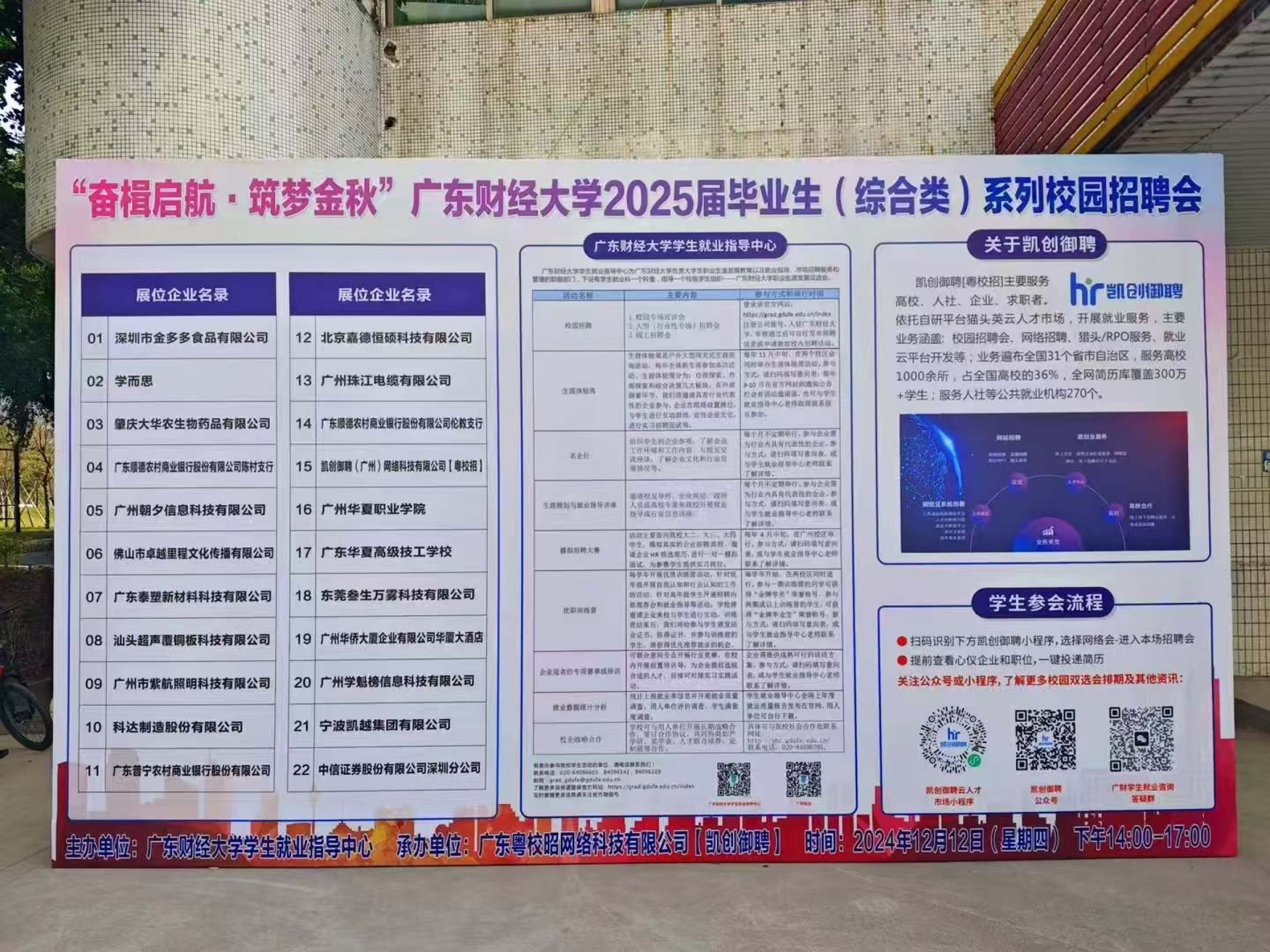 12月12日,由学生就业指导中心主办的榴园招聘汇—“奋楫启航·筑梦金秋”广东财经大学2025届毕业生(综合类)校园招聘会在我校大学生就业服务中心顺利举行。